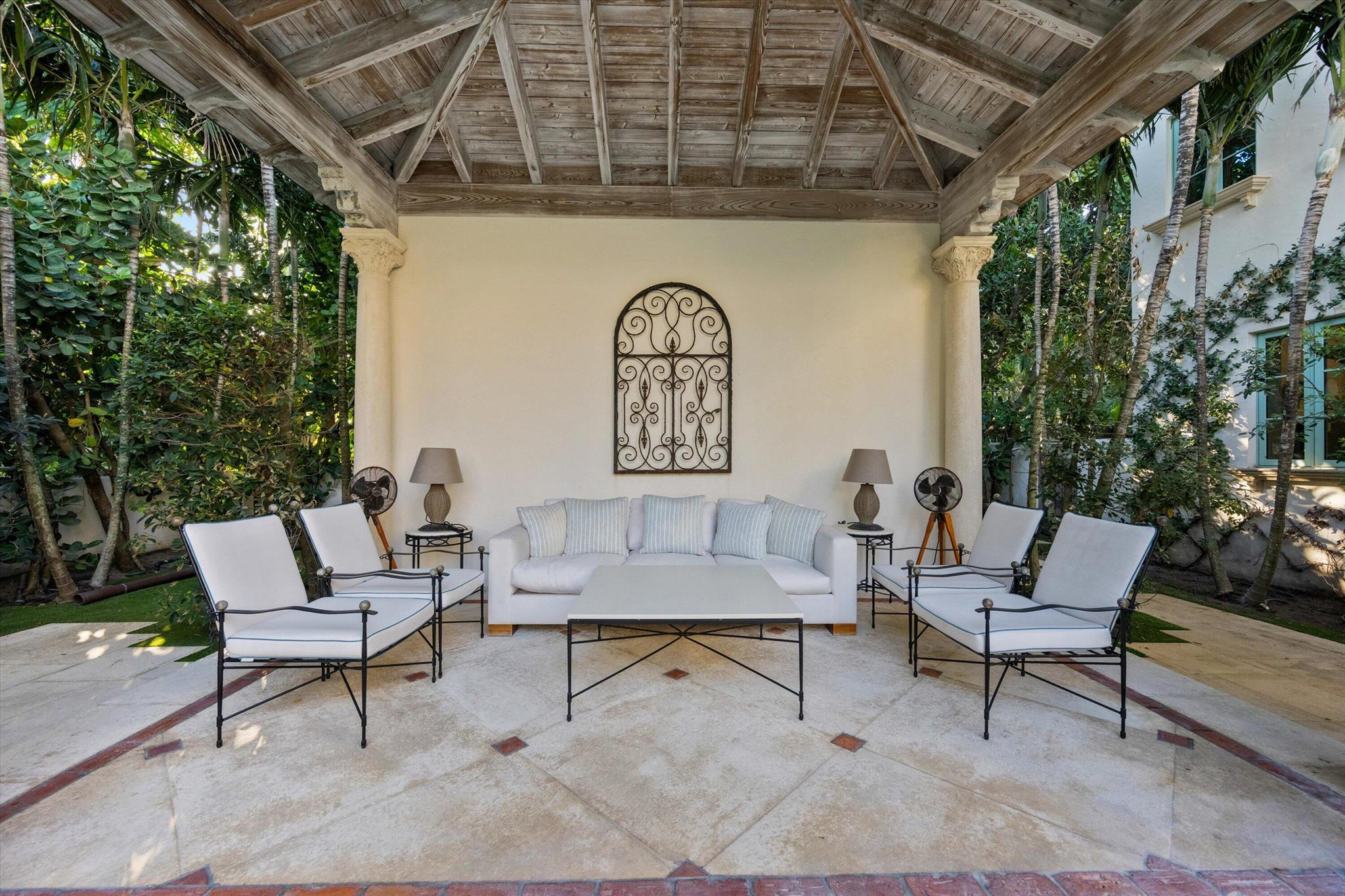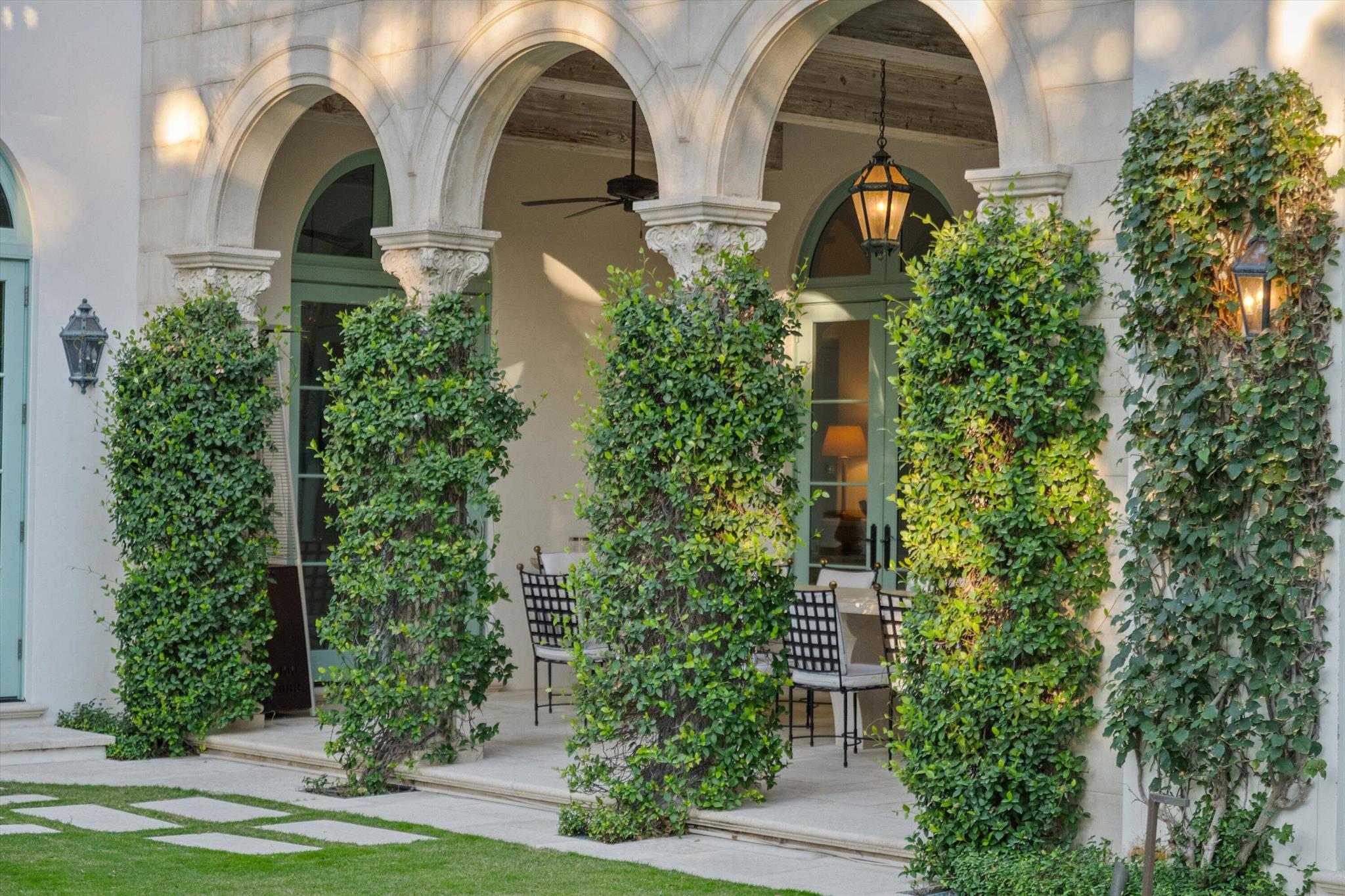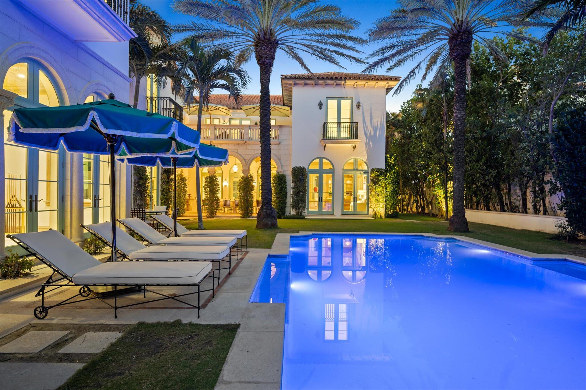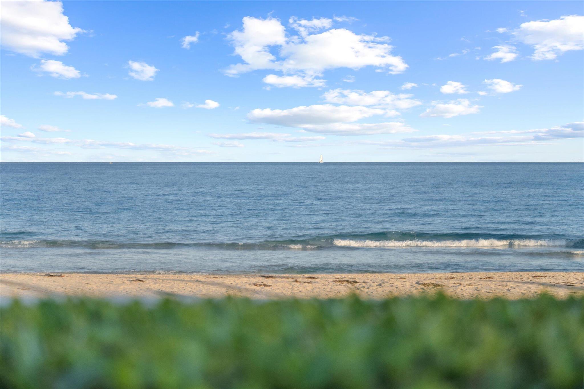 This luxurious Mediterranean oceanfront seven-bedroom estate has been beautifully renovated and is set on over half an acre offering stunning water views with a wealth of amenities for effortless coastal living. Curated by AD 100 designer Daniel Romualdez for gracious entertaining, it features an ocean-view living room with a gas fireplace, a club room with a full bar, a paneled oceanfront library, a day oceanfront living room, a formal dining room, a wood beamed entertainment room, and a gourmet chef's eat-in kitchen with a marble island, high end appliances, and a butler's pantry. Beachside enjoyment is elevated with covered loggias overlooking both the ocean and the pool, an expansive heated pool with a built-in spa, a cabana with a bath, and a shaded patio for poolside dining.