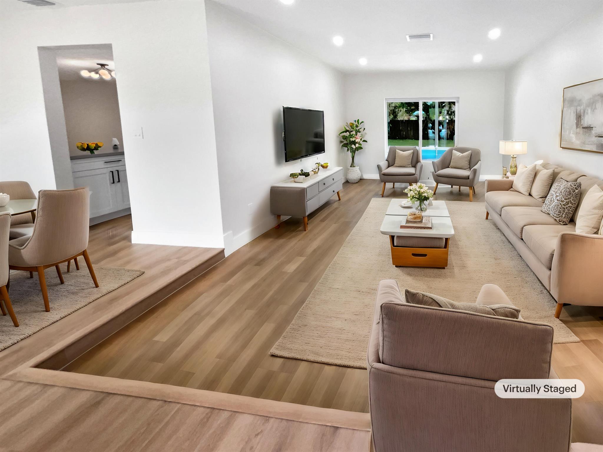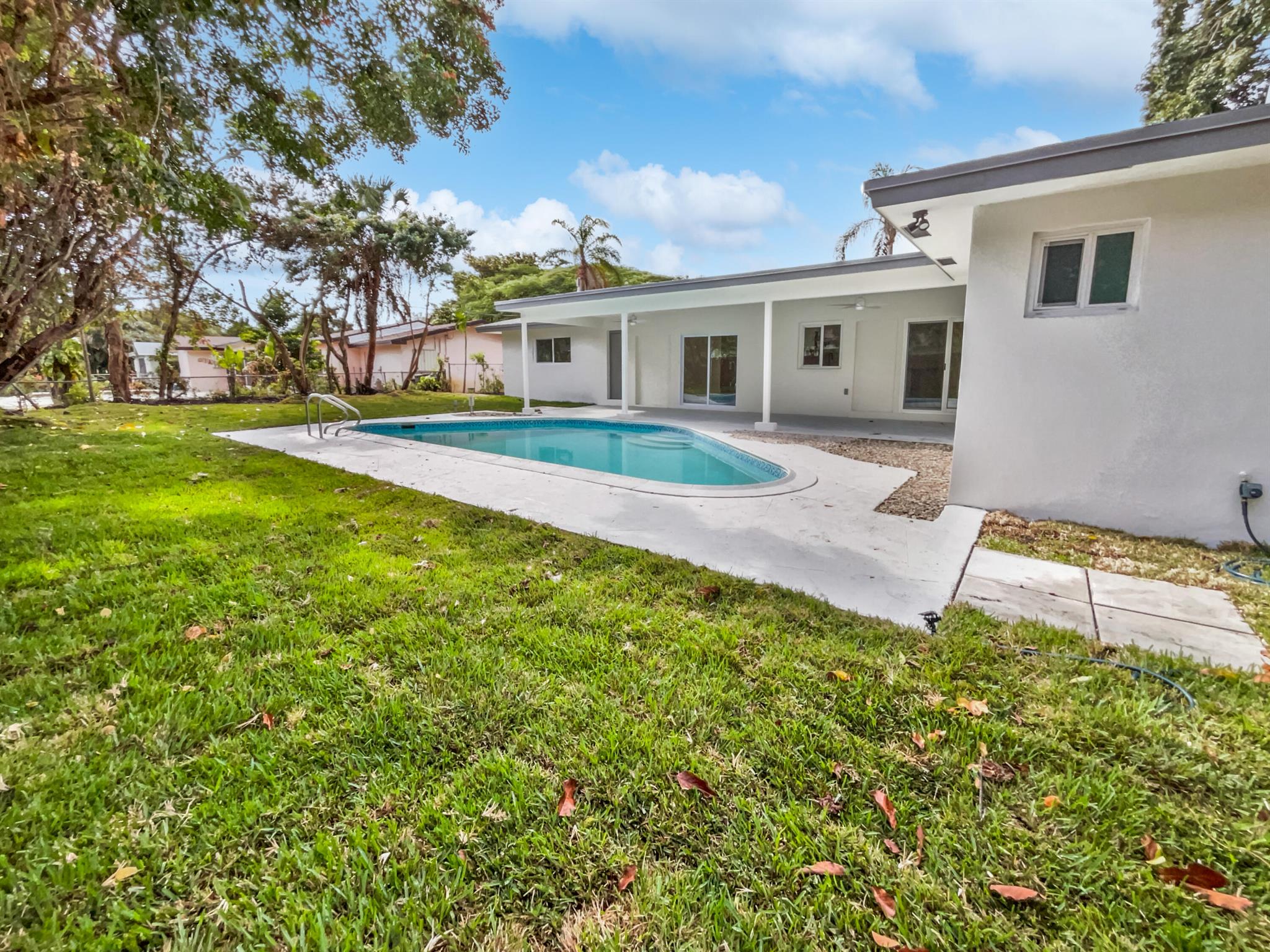 Seller may consider buyer concessions if made in an offer. Welcome to this beautifully renovated home featuring a soothing neutral color paint scheme that creates a serene atmosphere. The remodeled kitchen is adorned with an accent backsplash and comes fully equipped with all stainless steel appliances and stone counter tops. The primary bedroom offers double closets, ensuring ample storage space. Outdoors, you'll find a newly replastered in-ground pool perfect for cooling off on hot summer days. The covered patio is ideal for entertaining or simply enjoying a quiet evening. The fenced-in backyard provides added privacy and security. Don't miss out on this serene retreat.