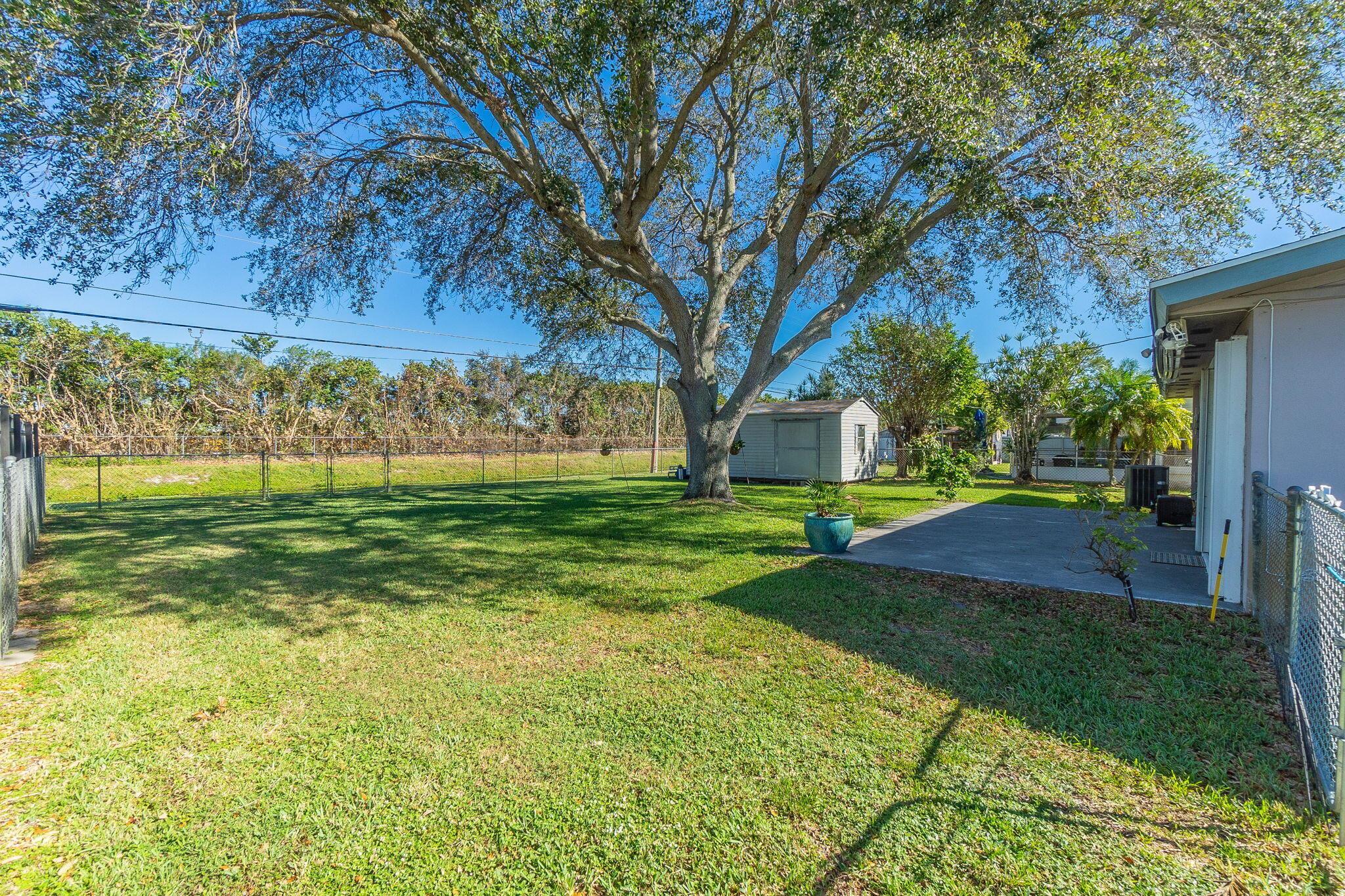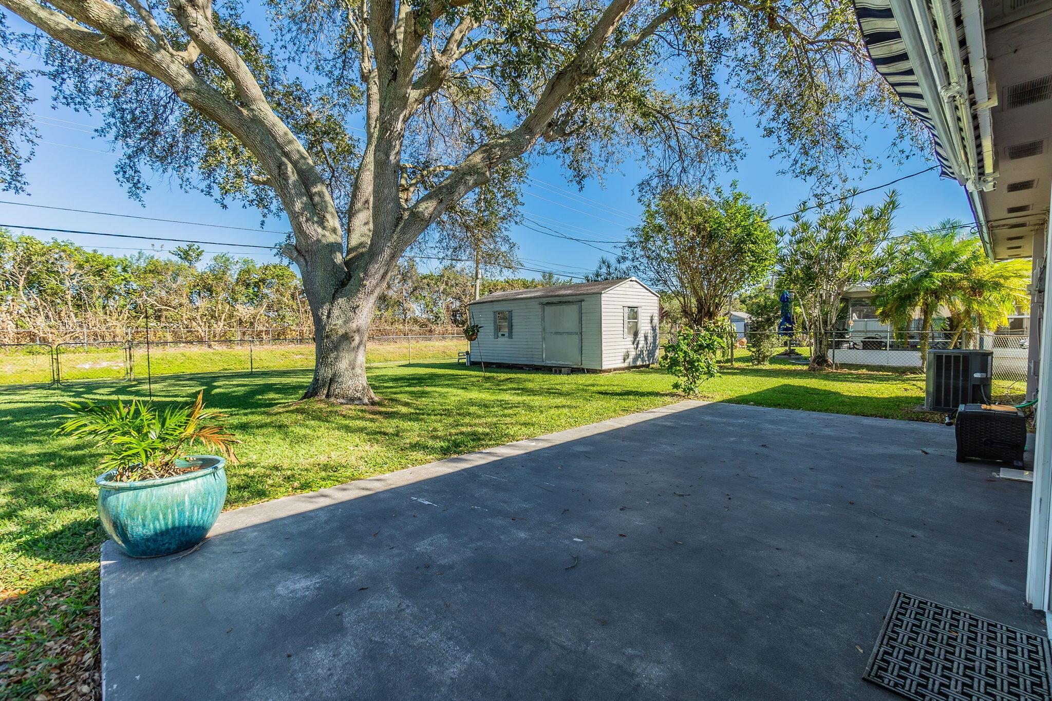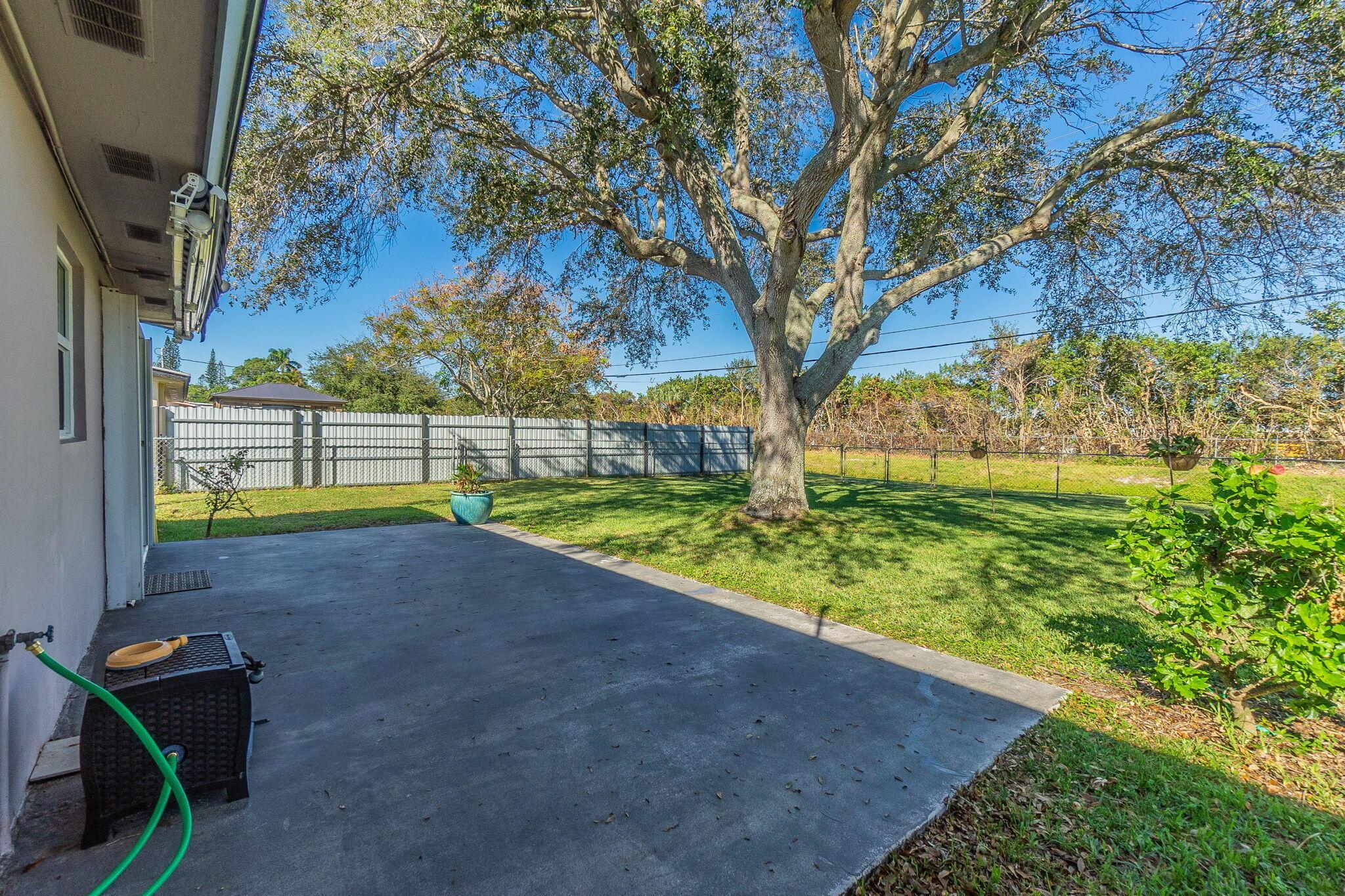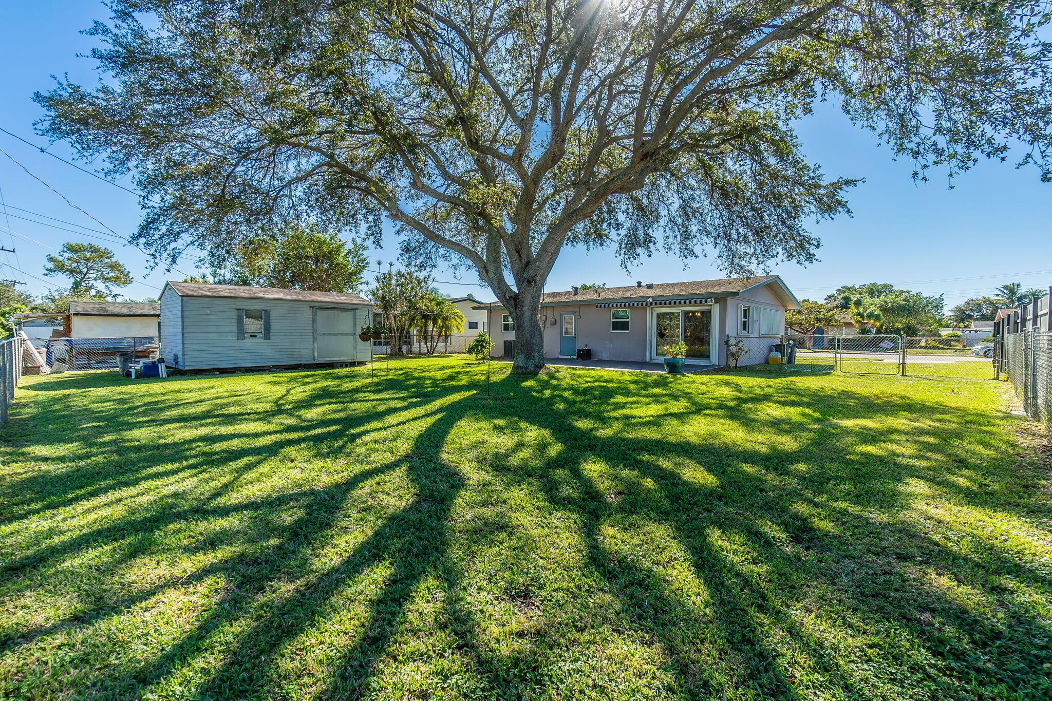 Welcome to this move-in ready 3/1 single-family home. A NO HOA community. This home offers you the comfort of an airy, open living and dining room floorplan and adjacent bedrooms. Enjoy a walk-in laundry room equipped with washer and dryer. A lush and vast backyard fenced, with a patio Sun Setter covering and a versatile air-conditioned shed. Located within minutes to schools, an internationally renowned golf course and many local places that highlight living in Palm Beach County.