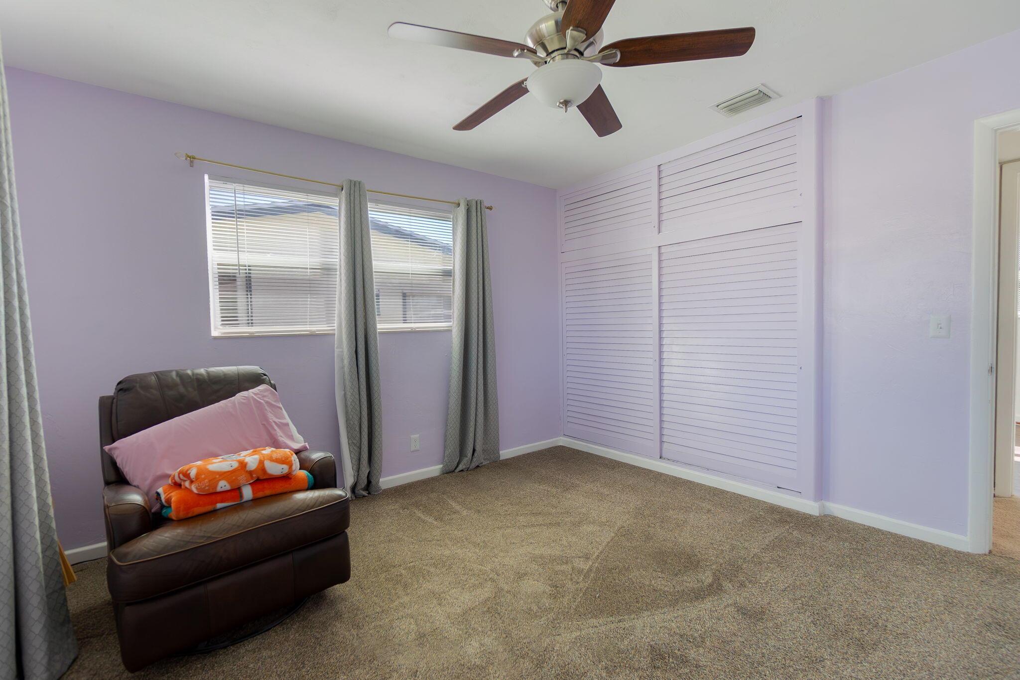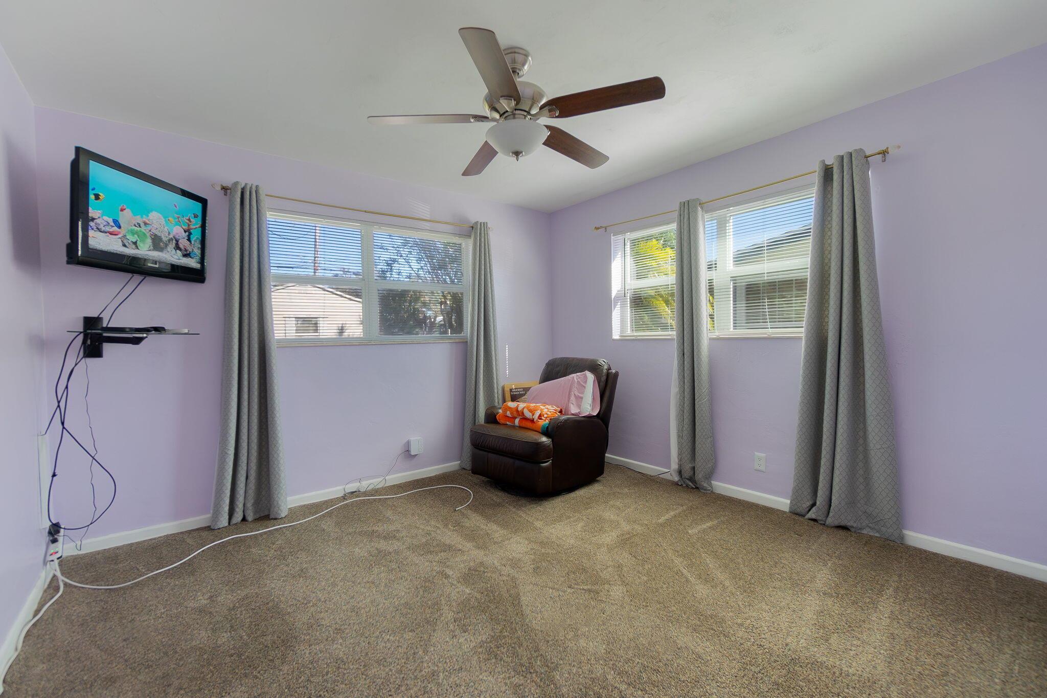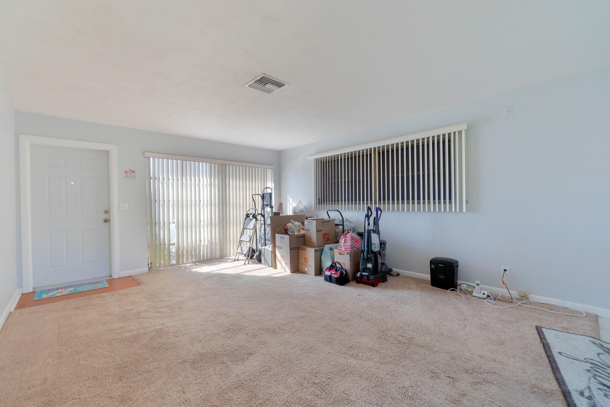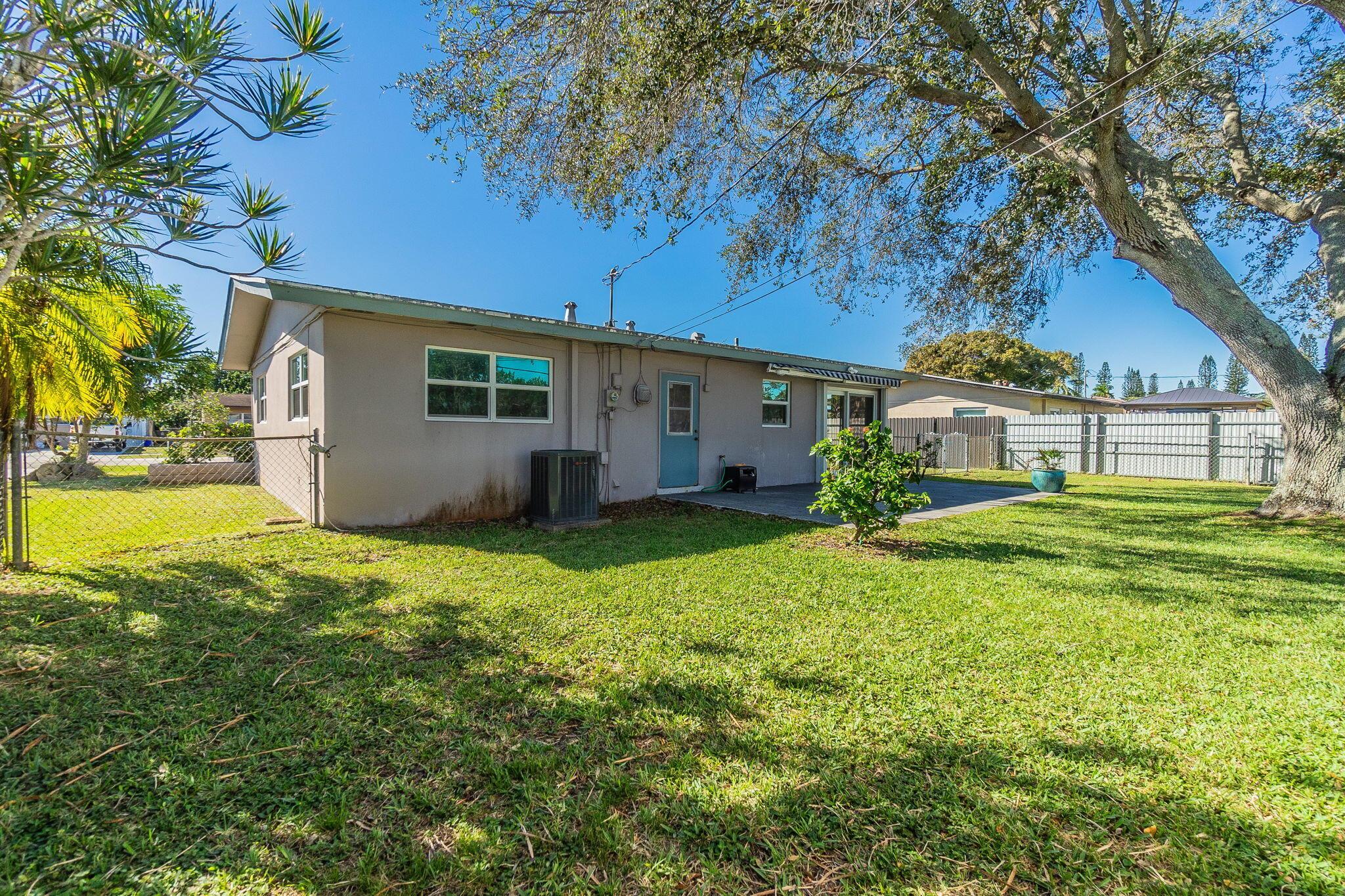 Welcome to this move-in ready 3/1 single-family home. A NO HOA community. This home offers you the comfort of an airy, open living and dining room floorplan and adjacent bedrooms. Enjoy a walk-in laundry room equipped with washer and dryer. A lush and vast backyard fenced, with a patio Sun Setter covering and a versatile air-conditioned shed. Located within minutes to schools, an internationally renowned golf course and many local places that highlight living in Palm Beach County.