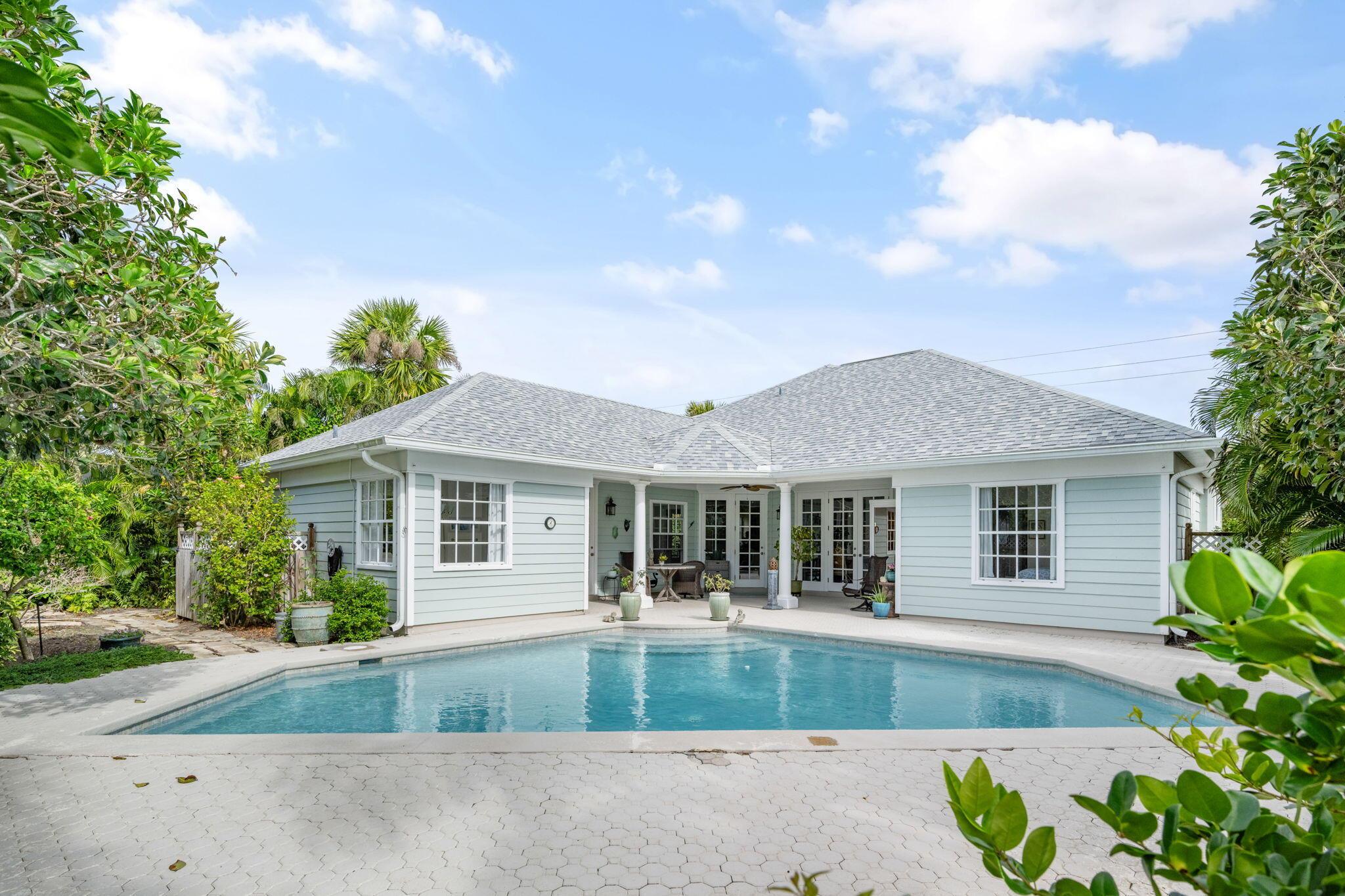 Prime Ocean Drive location in Vero Beach! This 3 bed, 2 bath, 2 car garage pool home is a coastal gem just steps from the beach. Enjoy ocean breezes, beach cottage charm, open living, and floor-to-ceiling windows with volume/coffered ceilings. Features include butcher block kitchen island, white oak floors, and floor to ceiling dining room bookshelves. Located just minutes from the Ocean Drive village with boutique shopping, fine dining, and local events. Perfect for year-round living or seasonal retreat, offering a private pool, beach access, and ultimate coastal lifestyle.