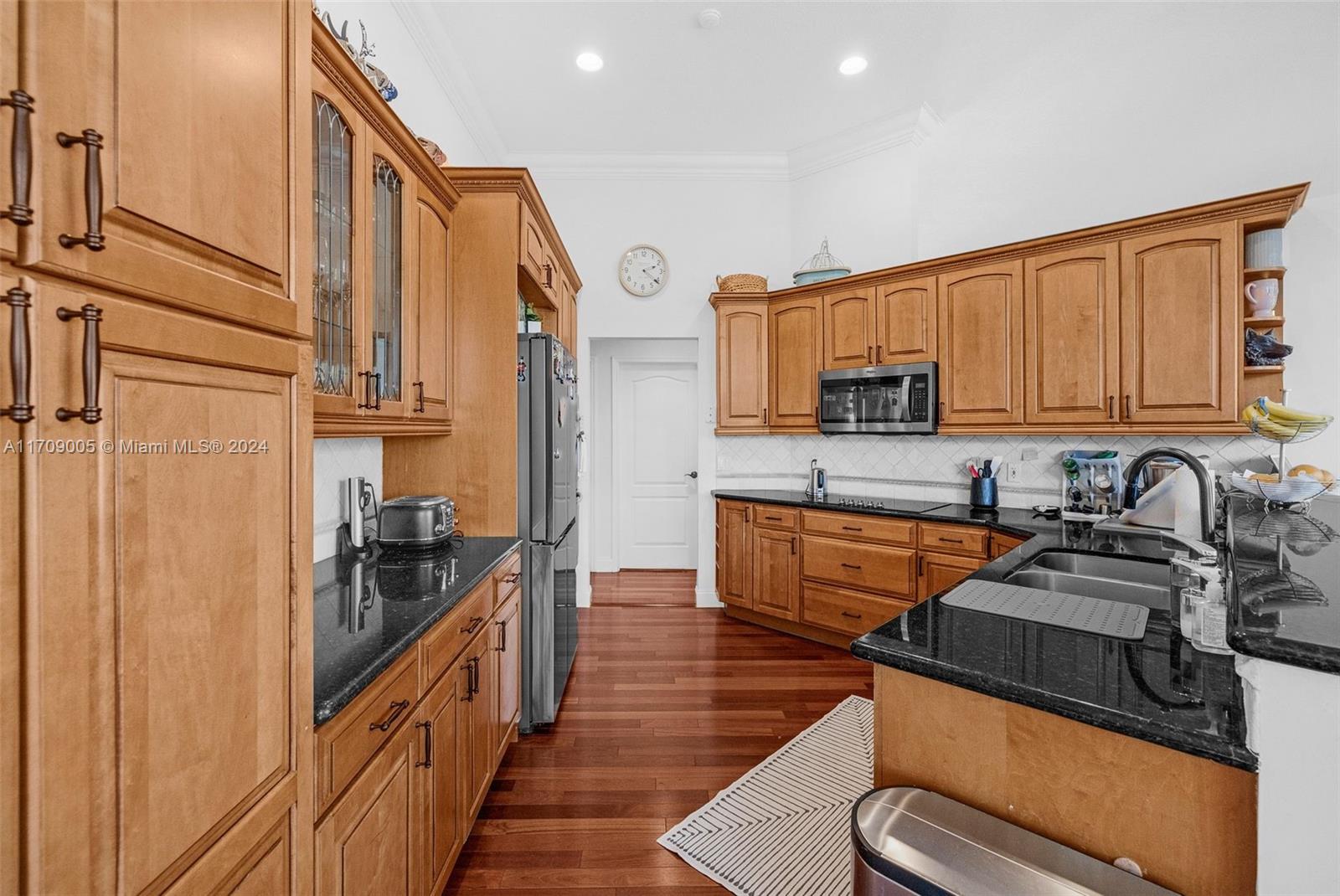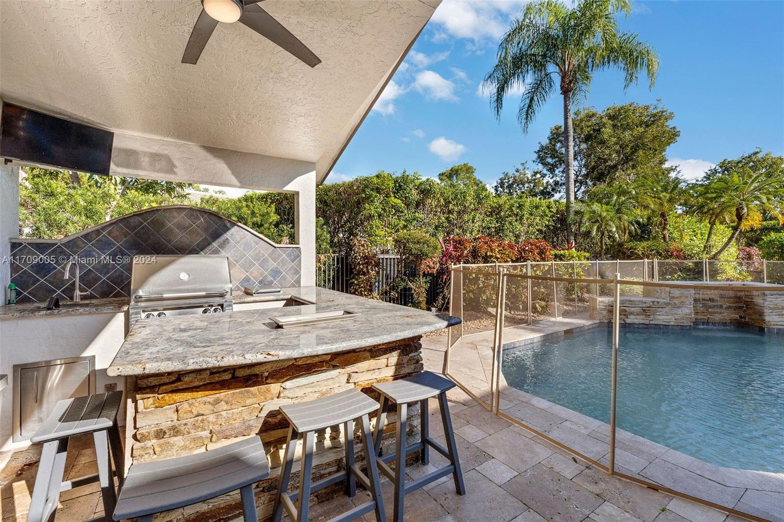 Beautifully upgraded home on a rare private oversized lot in The Lakes, Weston. This 4BR/2.5BA home features a spacious floor plan with elegant hardwood floors, impact windows, a new A/C unit, and new appliances. The master suite overlooks the sparkling pool and lanai, while the backyard offers privacy with lush trees and no visible neighbors. Perfect for entertaining, the outdoor space includes a grilling station with granite countertops and a small refrigerator. The updated kitchen boasts stainless steel appliances, granite countertops, and ample seating. Located in a gated, family-friendly community with 24-hour security, enjoy amenities like a playground, soccer field, and community pool. Close to top-rated schools, this home is the lifestyle upgrade you’ve been waiting for