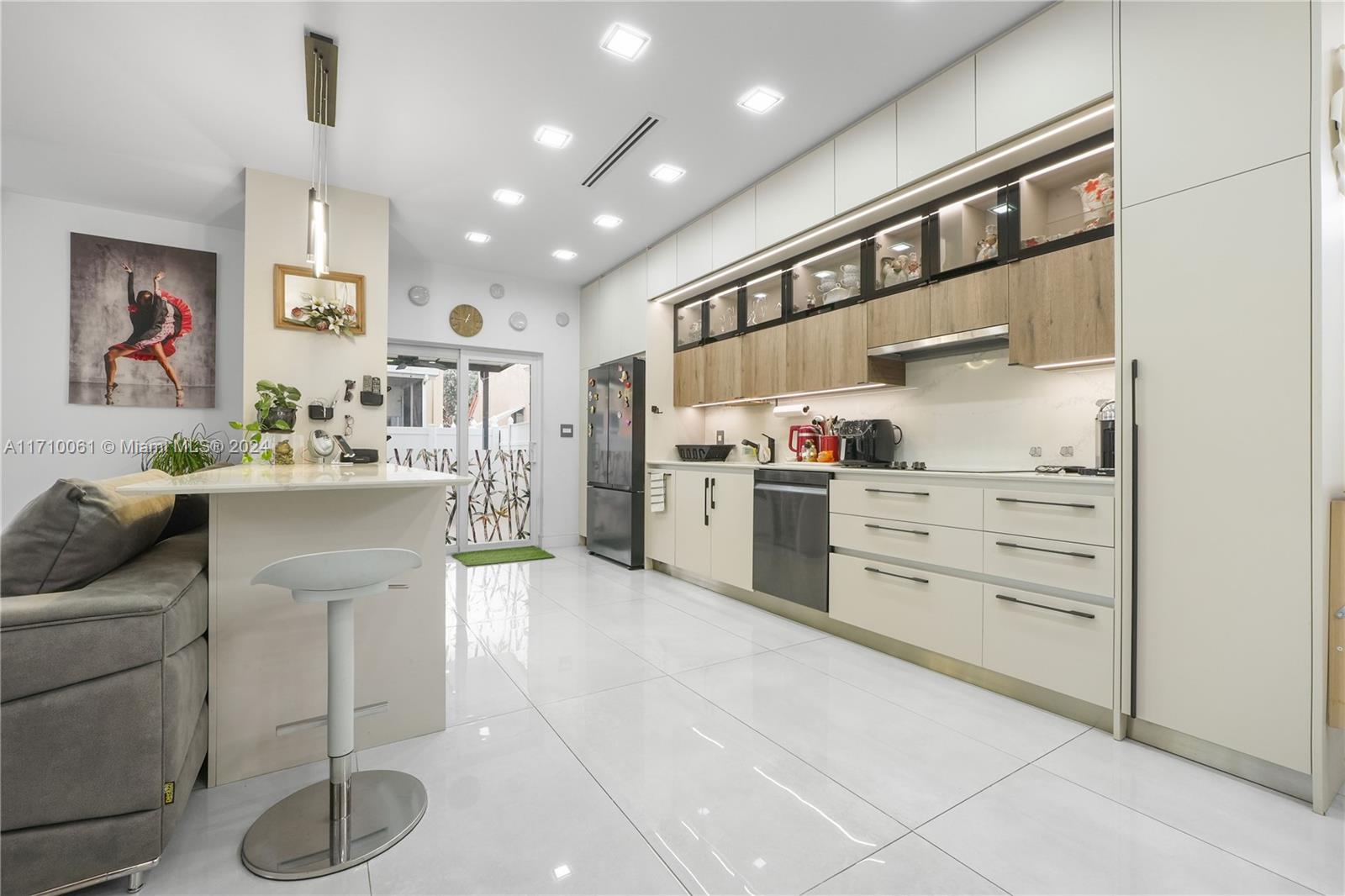 This fully renovated corner lot home features a modern and stylish interior with high-end finishes and functional upgrades. Brand new tile floors downstairs with laminate floors upstairs, fully impact windows and doors. The kitchen boasts quartz countertops, double oven, paired with stainless steel appliances for a contemporary look. The custom cabinetry is equipped with soft-close mechanisms, ensuring quiet and smooth operation. The house is illuminated by recessed lighting, creating a warm and inviting ambiance throughout the space. AC unit is only 6 years old. Community offers a pool and gym. Located just minutes from the Hard Rock Hotel & Casino, shopping centers, and the beach, this home offers an excellent blend of luxury living and convenience in a sought-after area.