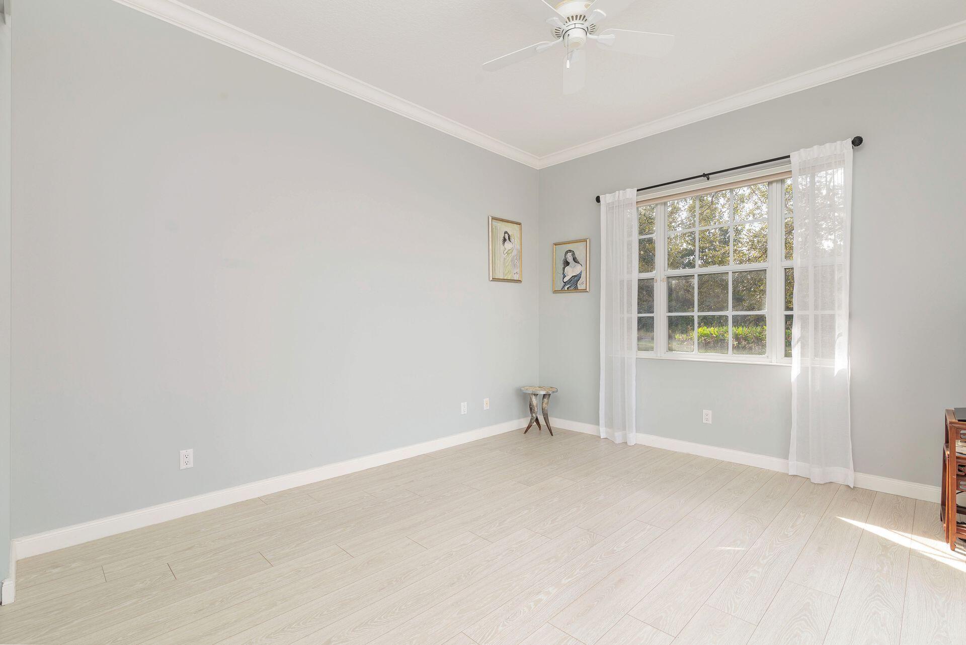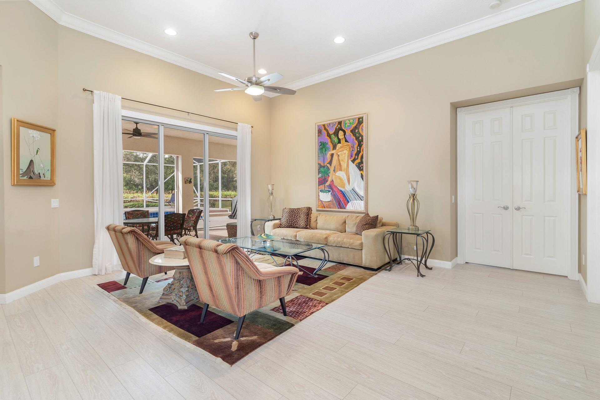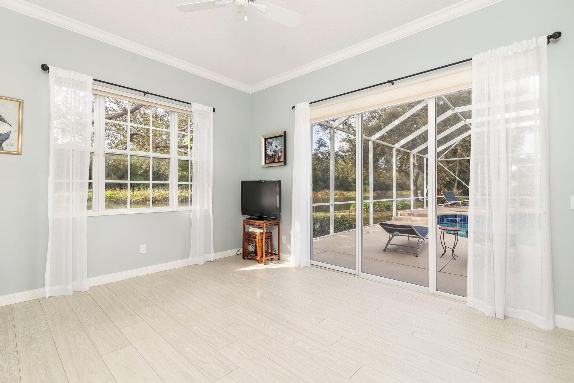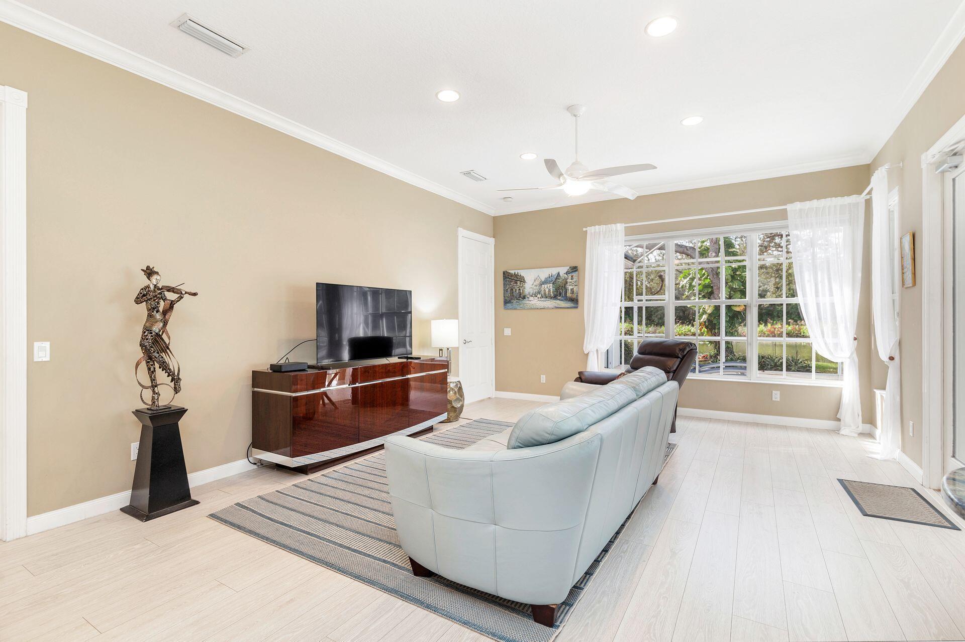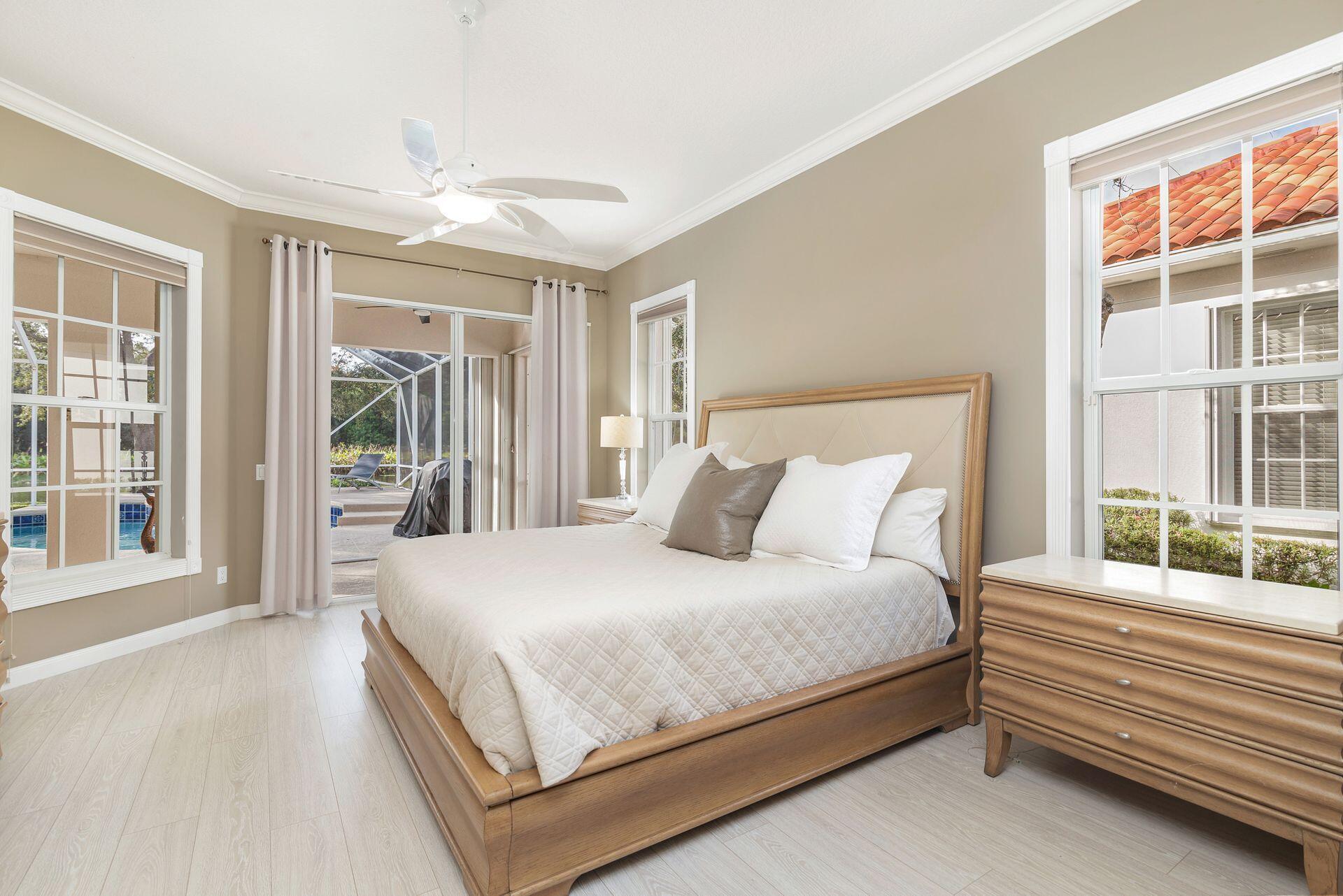 Waterfront paradise in Breakers West situated in the desirable Breakers Pointe cul-de-sac. 4 bedroom, 3 bath, 2774 living square feet complete with pool & hot tub. Pool resurfaced in 2022, A/C 2017, Hot water heater 2021. Ample natural light pours through the public rooms, offering unparalled sunset views. His & her baths, separate tub/shower. Office/den situated conveniently off the master bedroom with custom built ins. Complete accordion hurricane shuttersHOA includes: landscaping, tree trimming; cable and internet, alarm system monitoring, 2 manned guard gates and roving patrol, regular pressure cleaning to roof, gutters, driveway, sidewalks and exterior painting.Non-mandatory membership[s available at Breakers West Country Club, Breakers Ocean & Golf Club, and Mayacoo Lakes CC