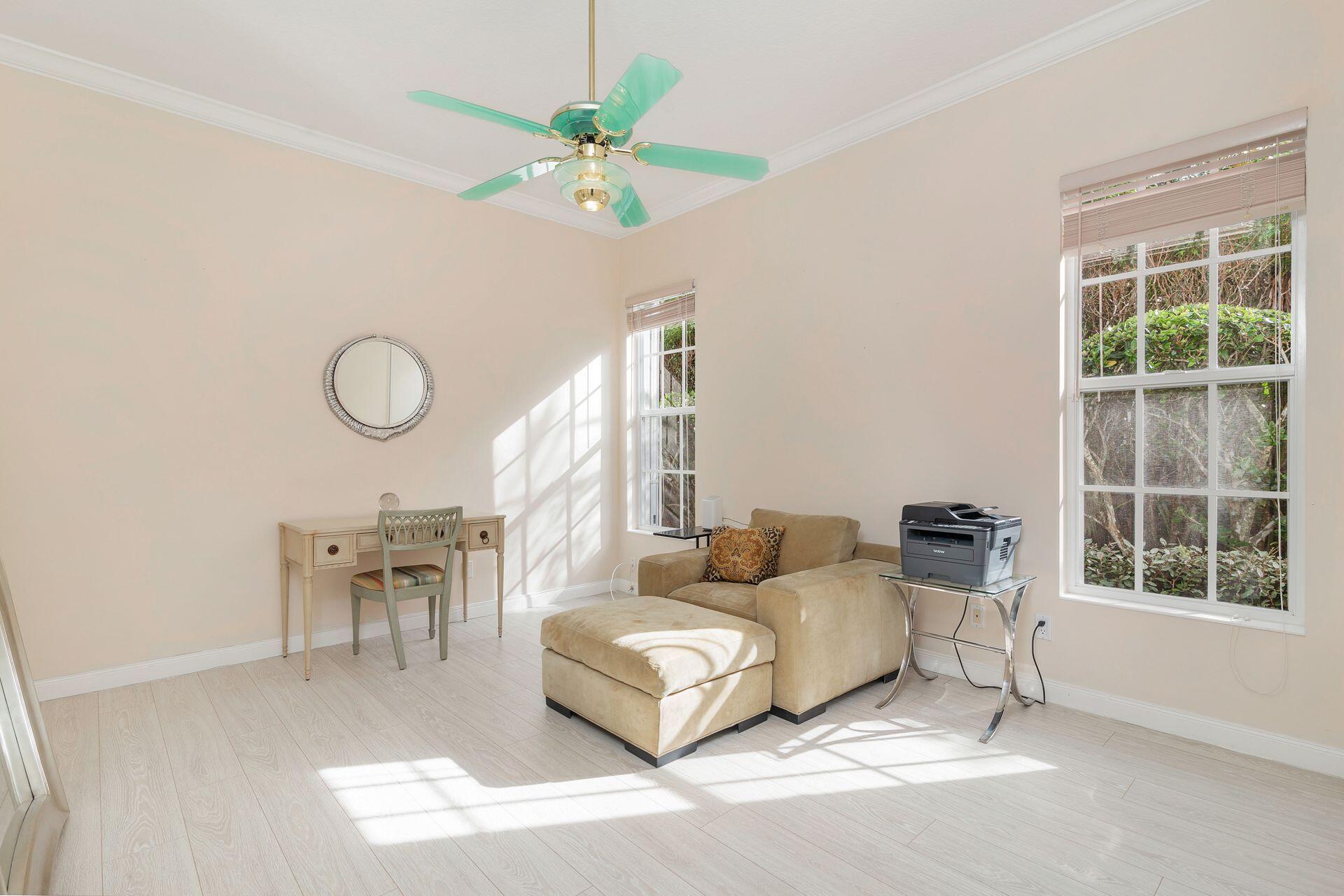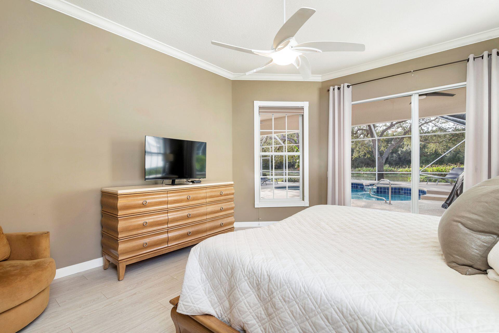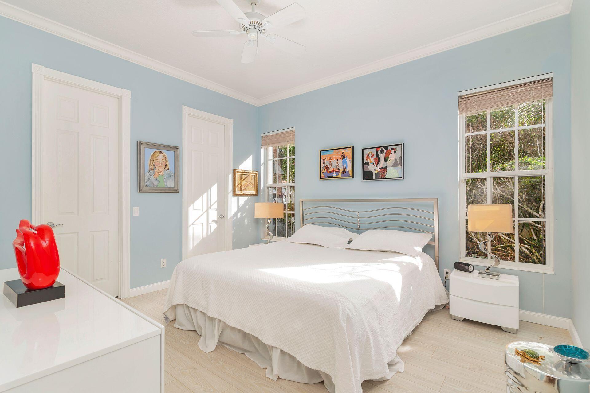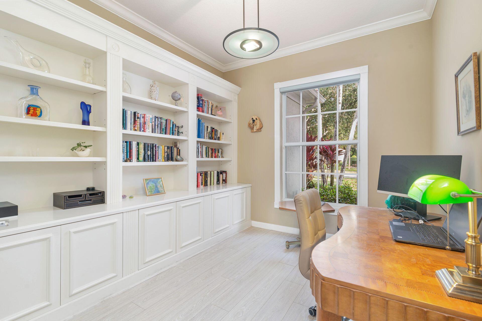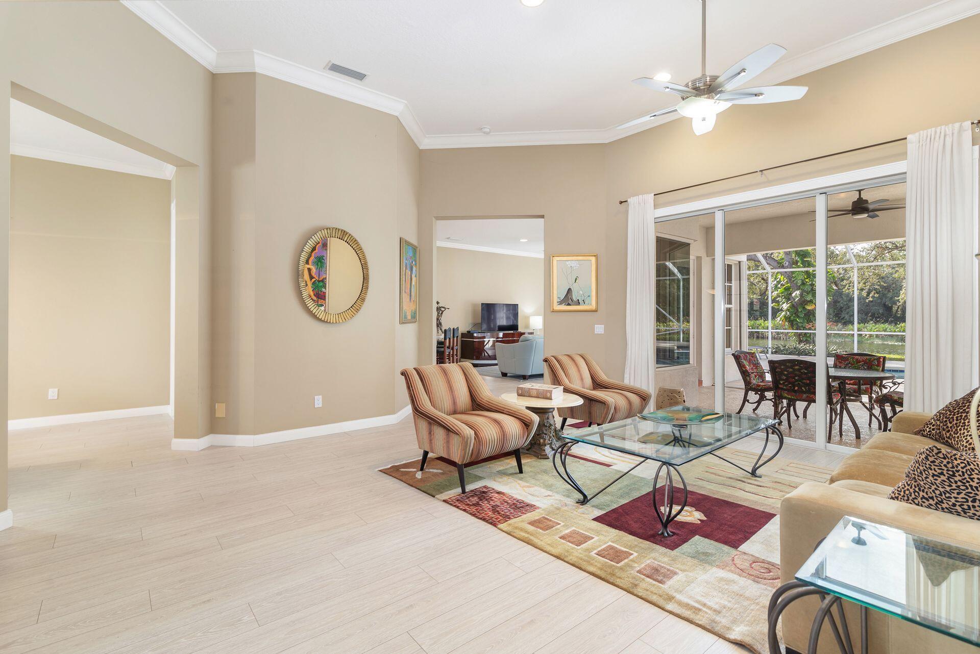 Waterfront paradise in Breakers West situated in the desirable Breakers Pointe cul-de-sac. 4 bedroom, 3 bath, 2774 living square feet complete with pool & hot tub. Pool resurfaced in 2022, A/C 2017, Hot water heater 2021. Ample natural light pours through the public rooms, offering unparalled sunset views. His & her baths, separate tub/shower. Office/den situated conveniently off the master bedroom with custom built ins. Complete accordion hurricane shuttersHOA includes: landscaping, tree trimming; cable and internet, alarm system monitoring, 2 manned guard gates and roving patrol, regular pressure cleaning to roof, gutters, driveway, sidewalks and exterior painting.Non-mandatory membership[s available at Breakers West Country Club, Breakers Ocean & Golf Club, and Mayacoo Lakes CC