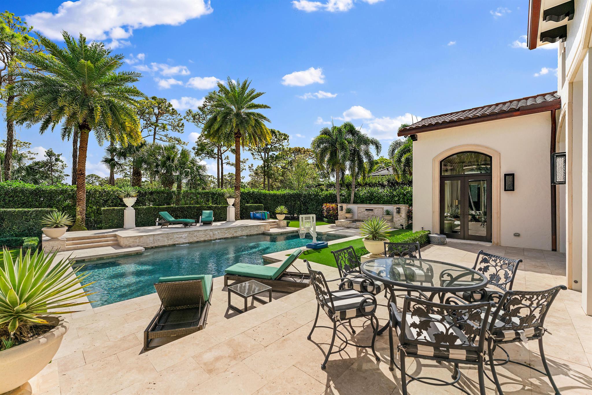 Enjoy the elegance of this custom, over 9,000 square ft estate located in the exclusive Bears Club in Palm Beach Gardens. Featuring five bedrooms, 7.2 bathrooms, 2 - 2 car garages. This spectacular home is situated on a beautiful lot with privacy and a resort-style backyard with outdoor loggia and a fireplace. Recently renovated and new roof. Additional luxuries include a first-floor master suite, 2 magnificent marble master bathrooms, a guest suite, a media room, a club room, a chef's kitchen, a wine bar with a built-in wine fridge, soaring ceilings, impact glass, an elevator, and much more! Beautifully appointed with amenities too numerous to list and ready for the most discerning buyer