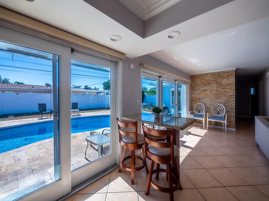 Welcome to your new oasis in the highly desirable Imperial Point subdivision! Just minutes from the beach, this remarkable 3-bedroom, 2-bathroom home offers 1,373 sq ft of living space and a one-car garage. Enjoy the benefits of a currently income-producing property that features a large circular driveway and an inviting open floor plan that radiates warmth and sophistication. You'll be captivated as you enter, greeted by neutral colors and recessed lighting. The combination of tile, stone wall feature and wood floors creates a harmonious flow throughout the home.