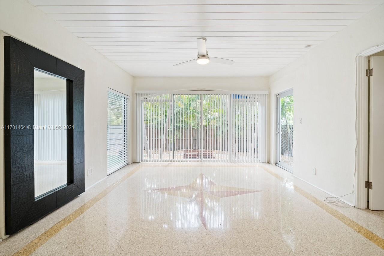 This charming 1936 Spanish-Style Home in Miami Beach offers timeless appeal and classic character. Featuring polished terrazzo floors, a spacious split floor plan, and a decorative fireplace, the home exudes warmth and style. Vaulted ceilings with exposed wood beams and an abundance of natural light create an open, airy atmosphere. This property also includes an in-law's quarters and a studio, offering flexible space for guests, a home office, or rental potential. While this charmer is in need of some updates, it presents a fantastic canvas for anyone looking to bring a historic gem into modern times.