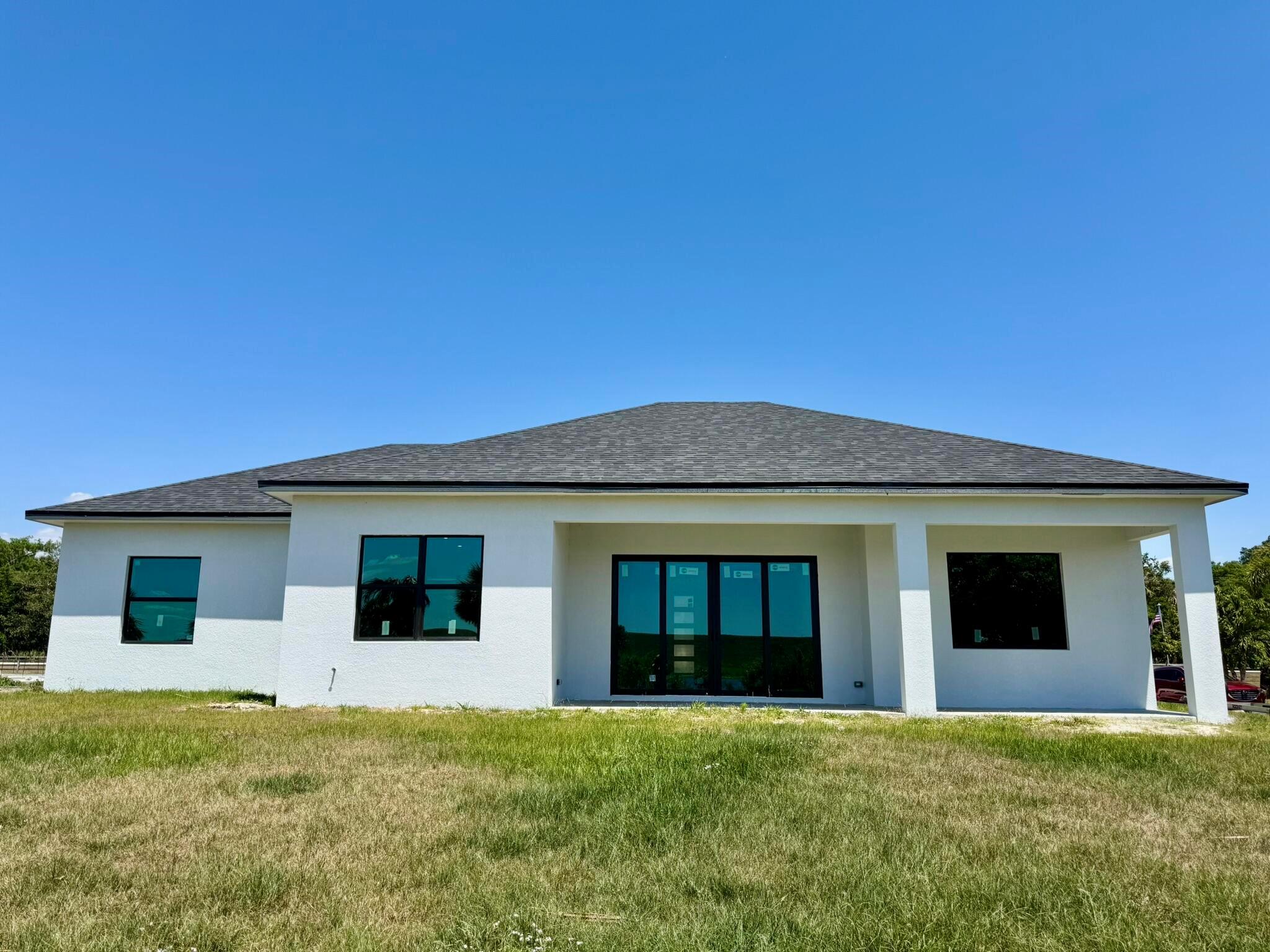 FLYING ''G' ESTATES - Spectacular NEW CONSTRUCTION! Waterfront Rim Canal/ Lake ''O'' access. 4 bd/ 2 ba/ 2 CGarage. CBS Home. Grand foyer looks straight to the water with a beautiful panoramic view. Great room has a designer statement wall with a glass fireplace. Open Concept. Split floor plan.12' ceilings and 8' doors. Frosted door compliments office/4th guest room. Chef's kitchen offers quartz counters, pendulum lighting and Solid Wood cabinets. Bkbar has a farm sink and seating. GE SS appliance pkg - includingwall oven/microwave. and oven combo. Cooktop stove has a statement hood. Majestic master suite includes a 7x12 walk-in closet with all the extras, water closet, two vanities, 5x8 shower and stacked stone decor. Wake each morning while watching the boats pass by.