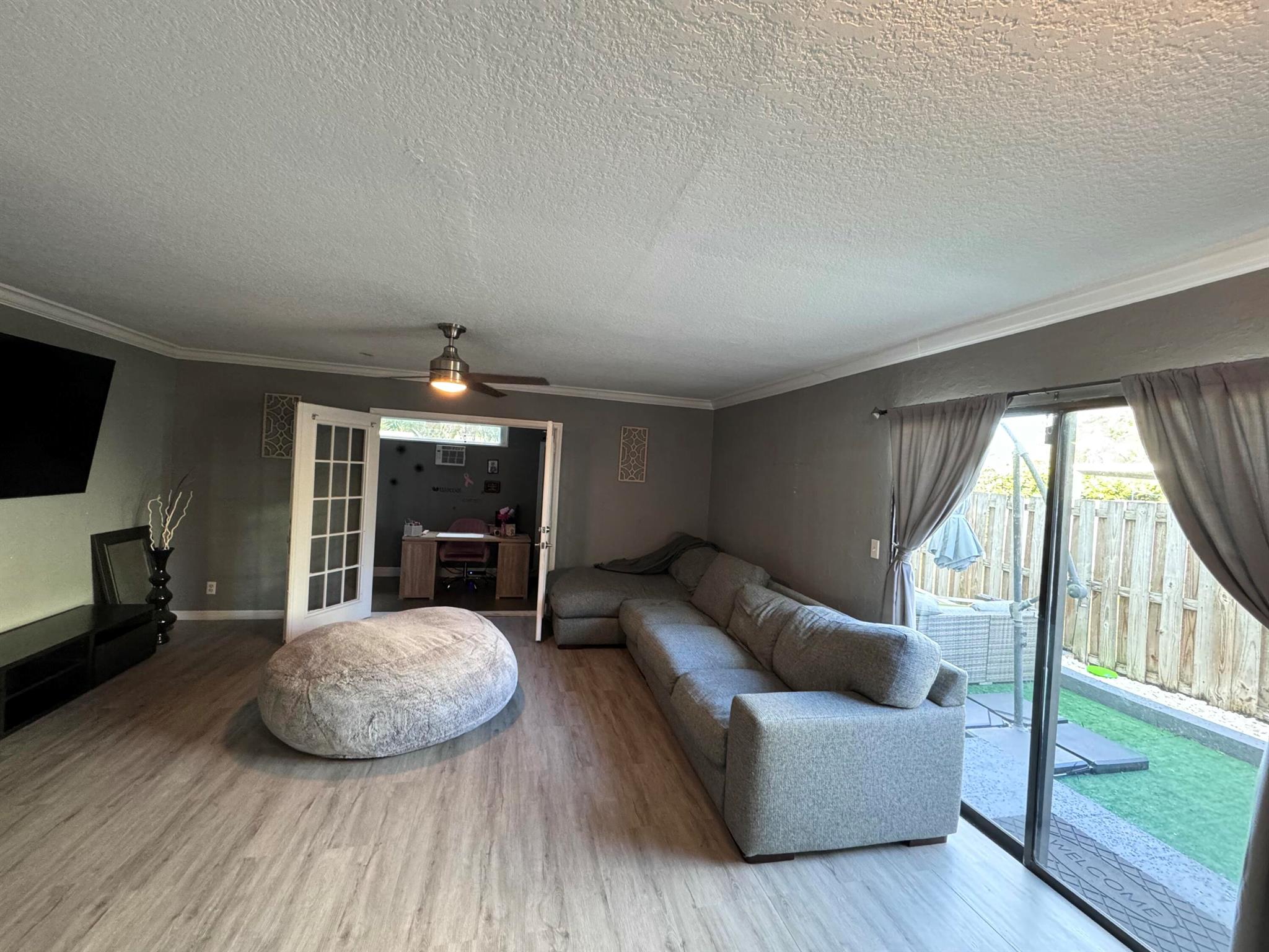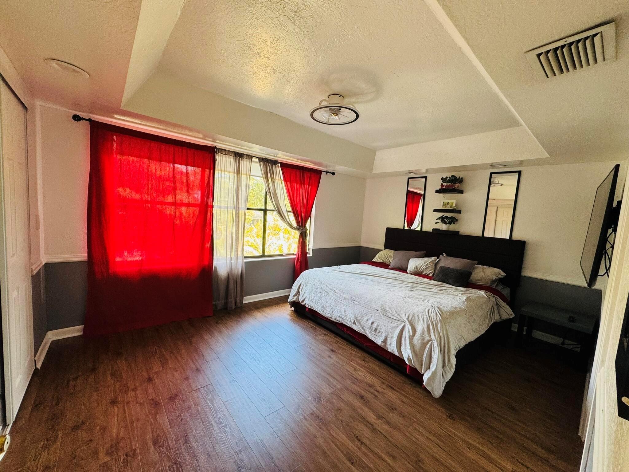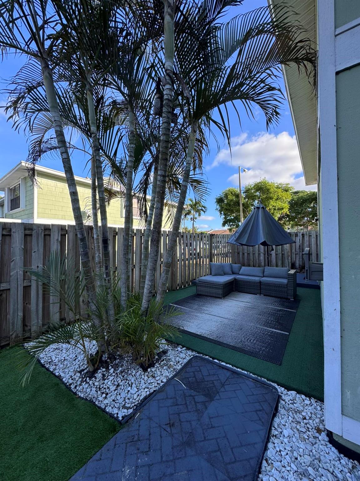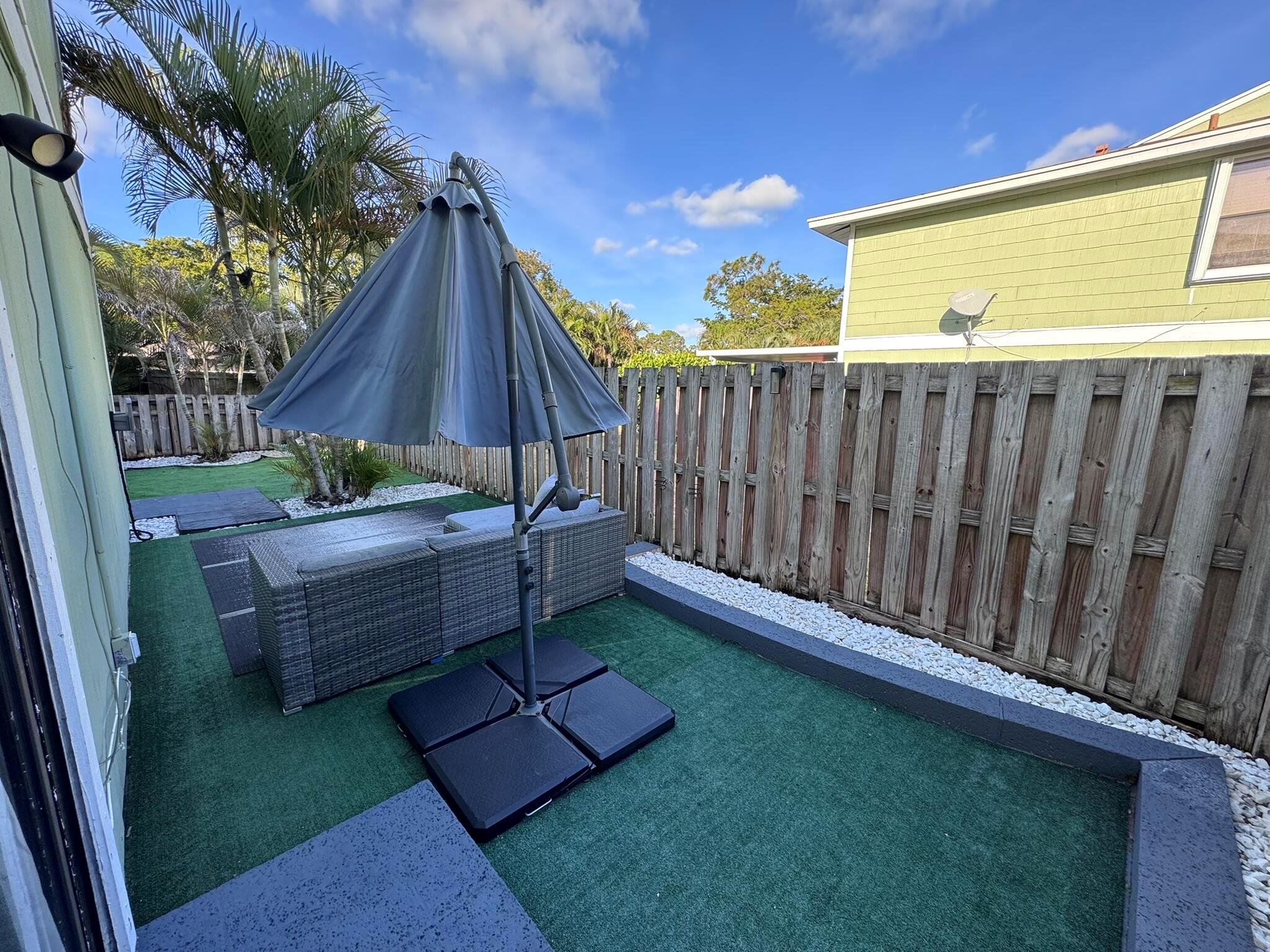 This updated 3-bedroom, 2.5-bath home features a first-level flex room with closet (4 rooms total), perfect for an office, plus a convenient half bath. The modern updated kitchen (2024) includes Samsung stainless steel appliances, hard wood countertops, and a spacious layout. Recent upgrades include new flooring on the first level, water heater (23'), and AC unit (20'). Smart Wyze light switches and an impact sliding door!Upstairs, you'll find three bedrooms and two full bathrooms, perfect for family living. The patio is ideal for entertaining, featuring artificial grass for easy maintenance. Additional highlights include a new washer (24'), dryer, and Ring cameras at both the front and backyard with a floodlight. Located near 95, CityPlace, top restaurants, the airport, and beaches!