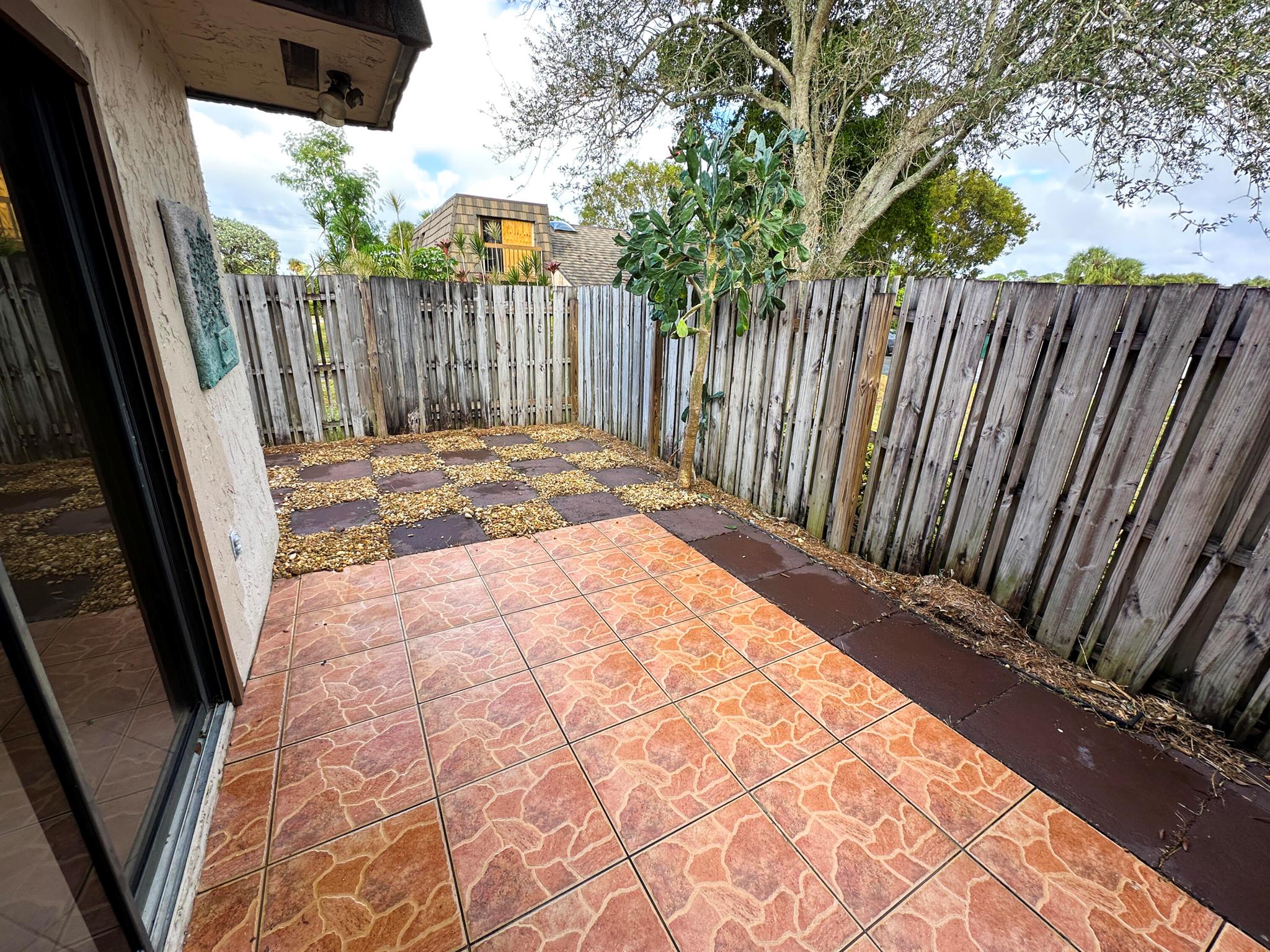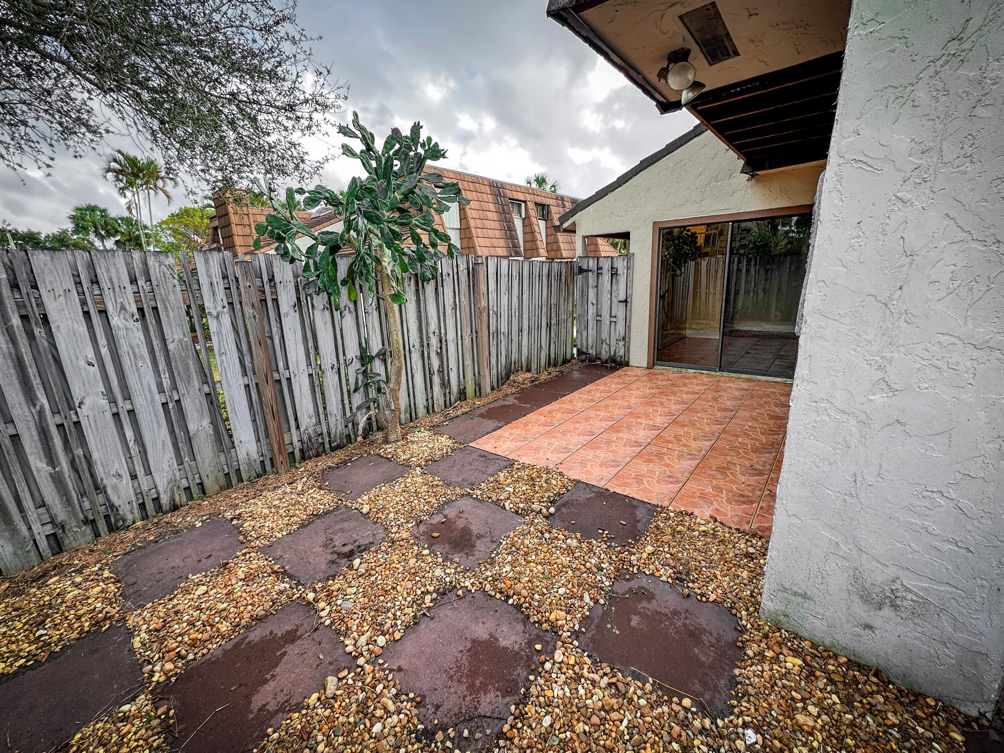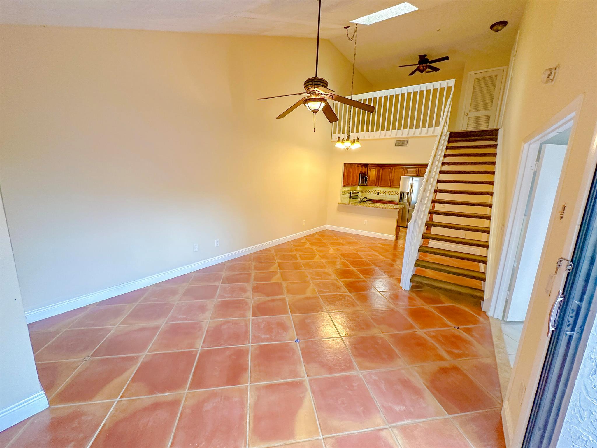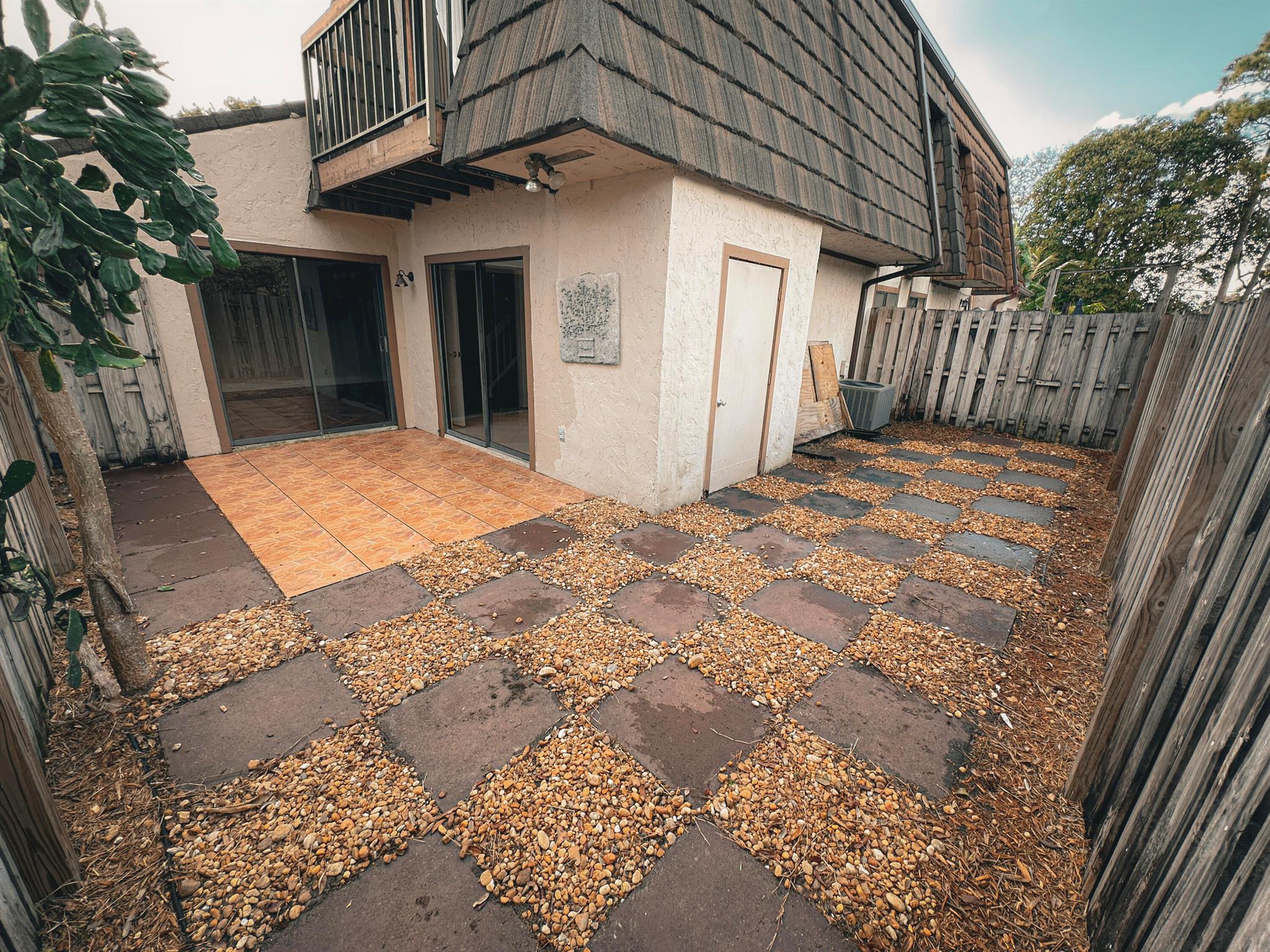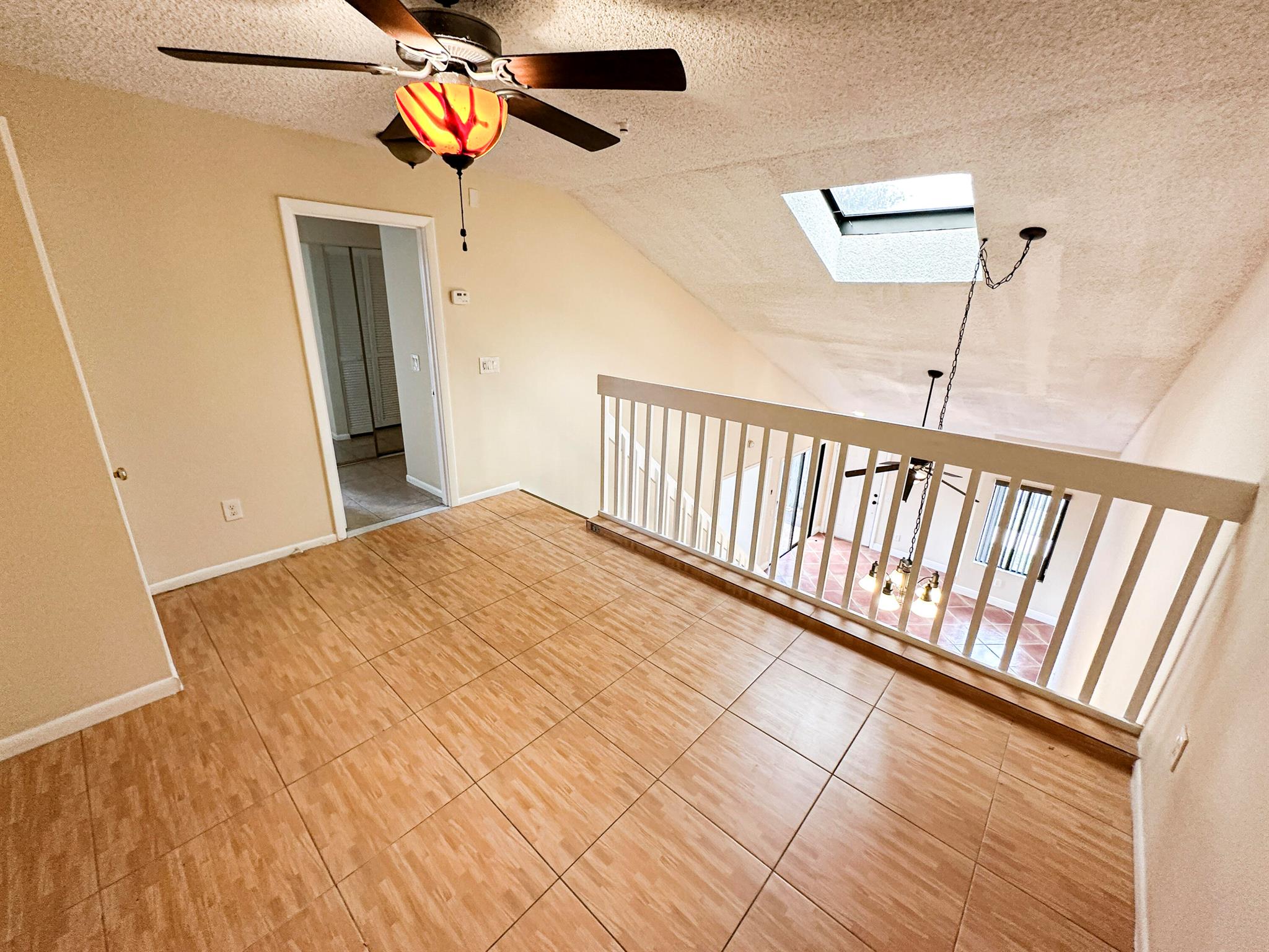 Centrally located Lake Colony, has quick access to the Turnpike, I-95, the airport, downtown West Palm Beach,, and the beach. A unique layout with tall vaulted ceilings, 1 bedroom and 1 bathroom downstairs and 1 bedroom and bathroom upstairs with an open loft / den that can be used as an office, additional bedroom, or 2nd living area. No carpet. Kitchen is well done. ROOF IS NEW. Fenced patio area. Beautiful tree outside your balcony. The community has a pool and tennis courts. 2 parking spots.