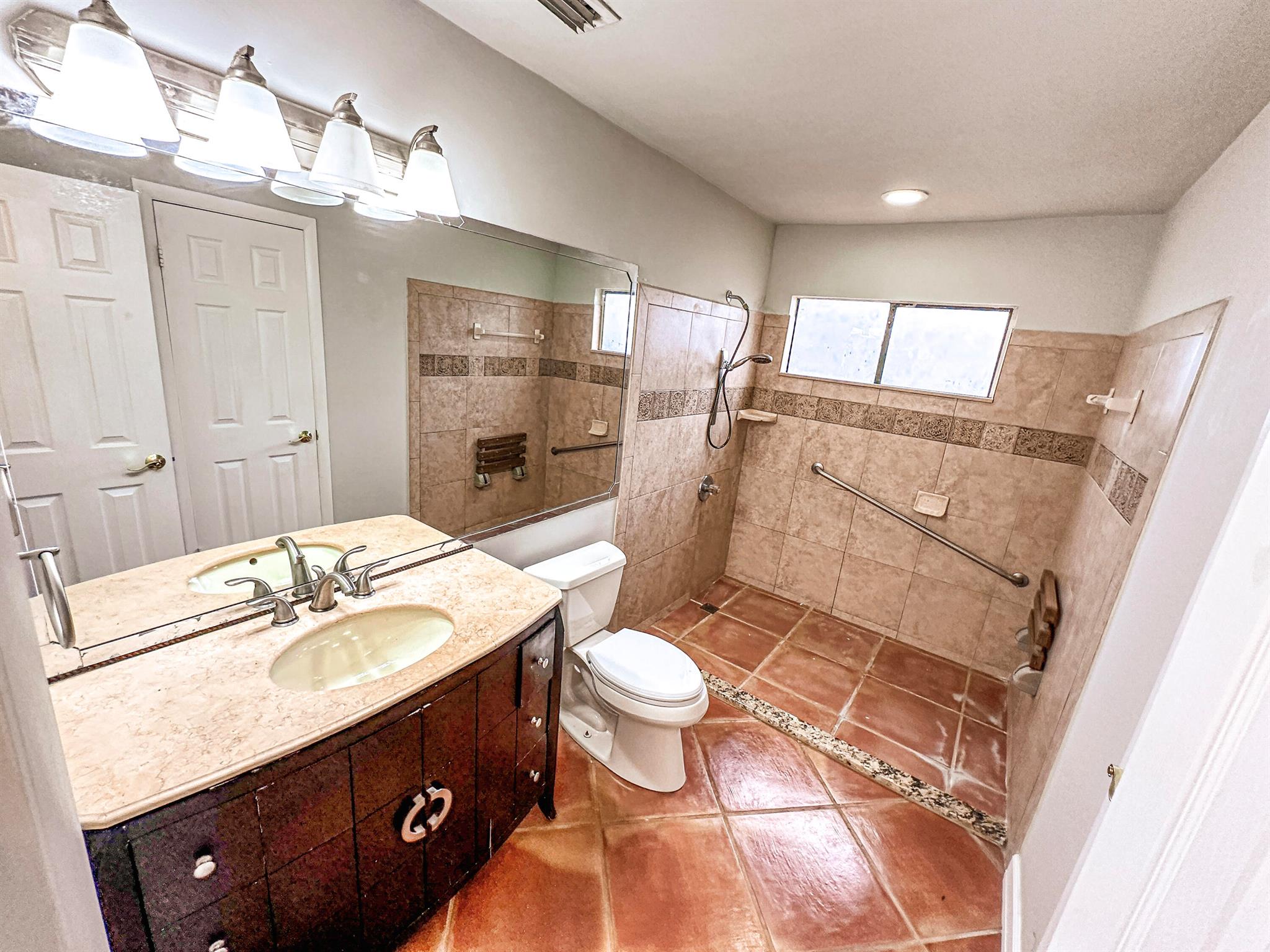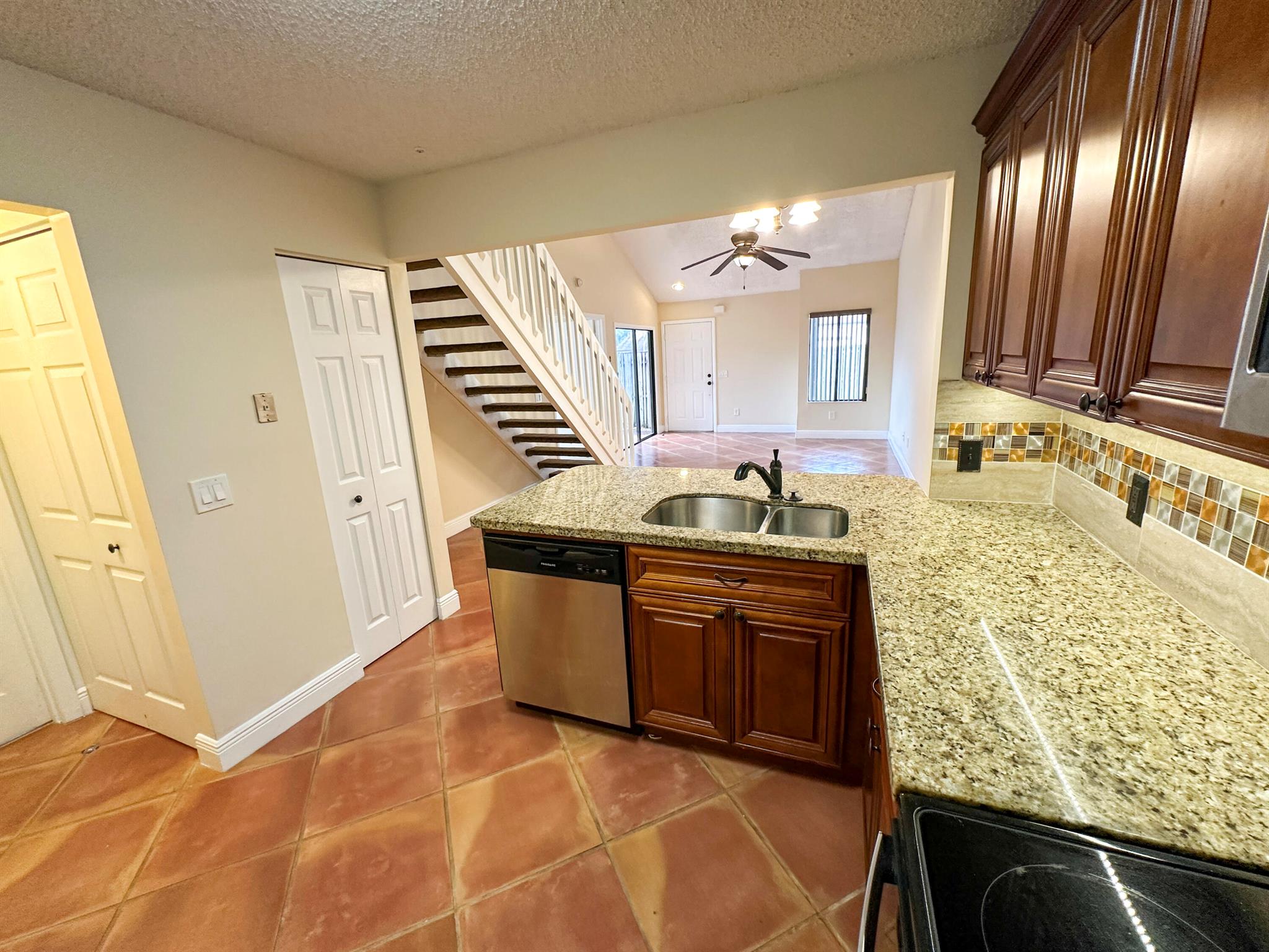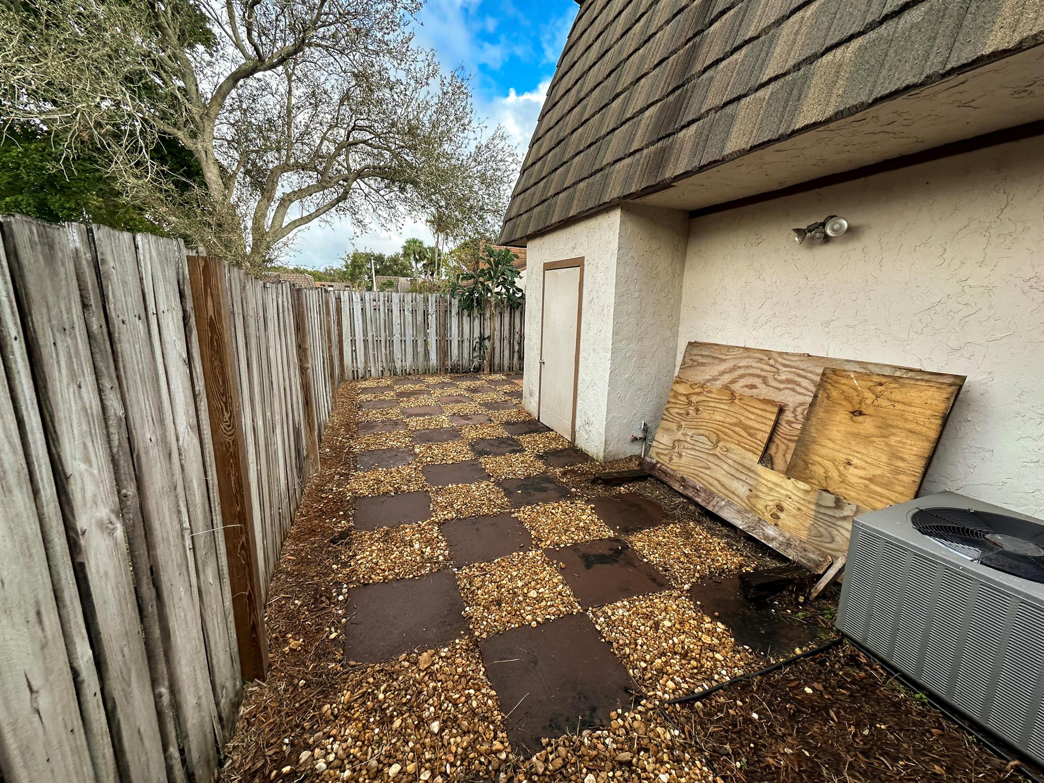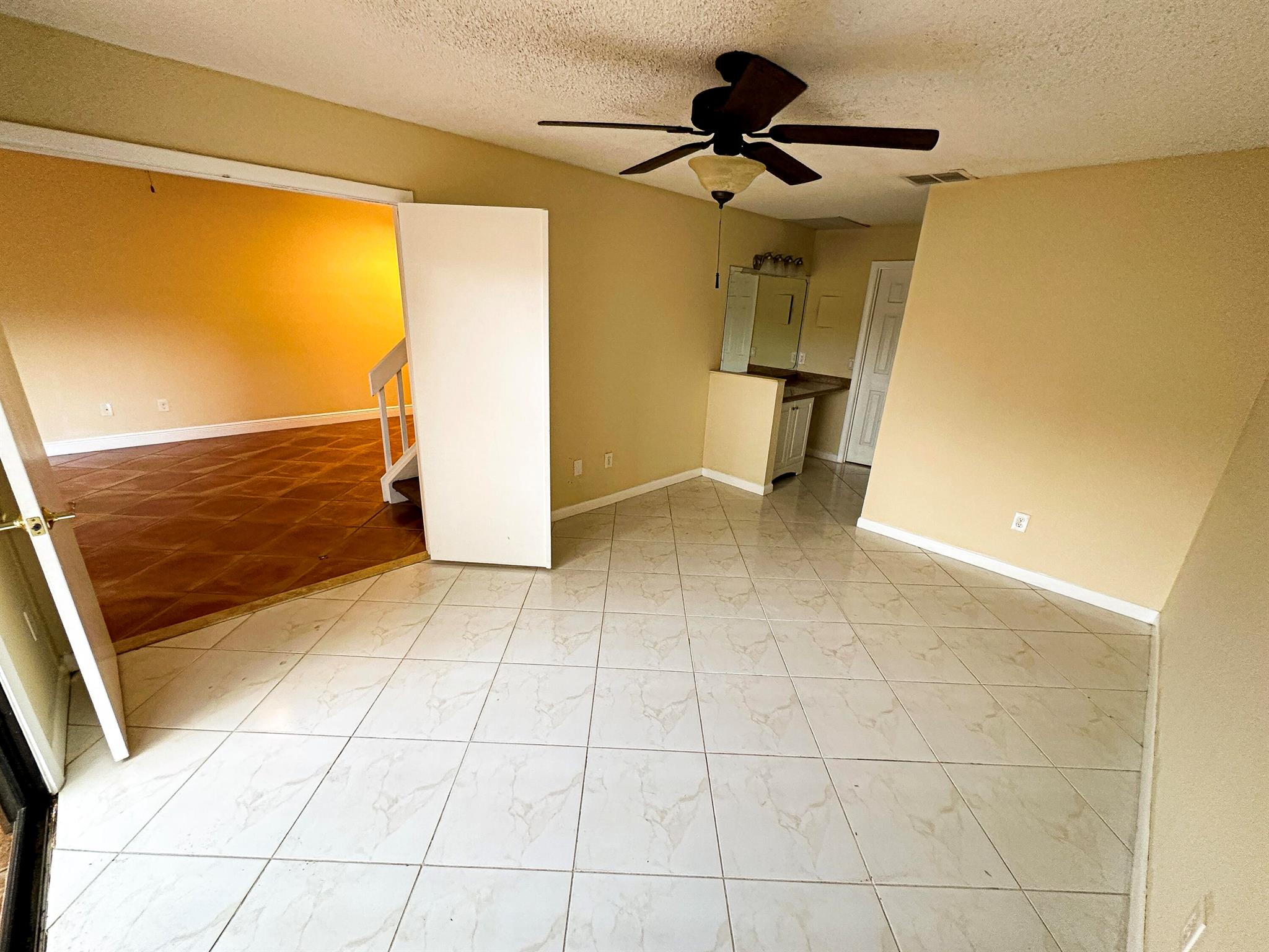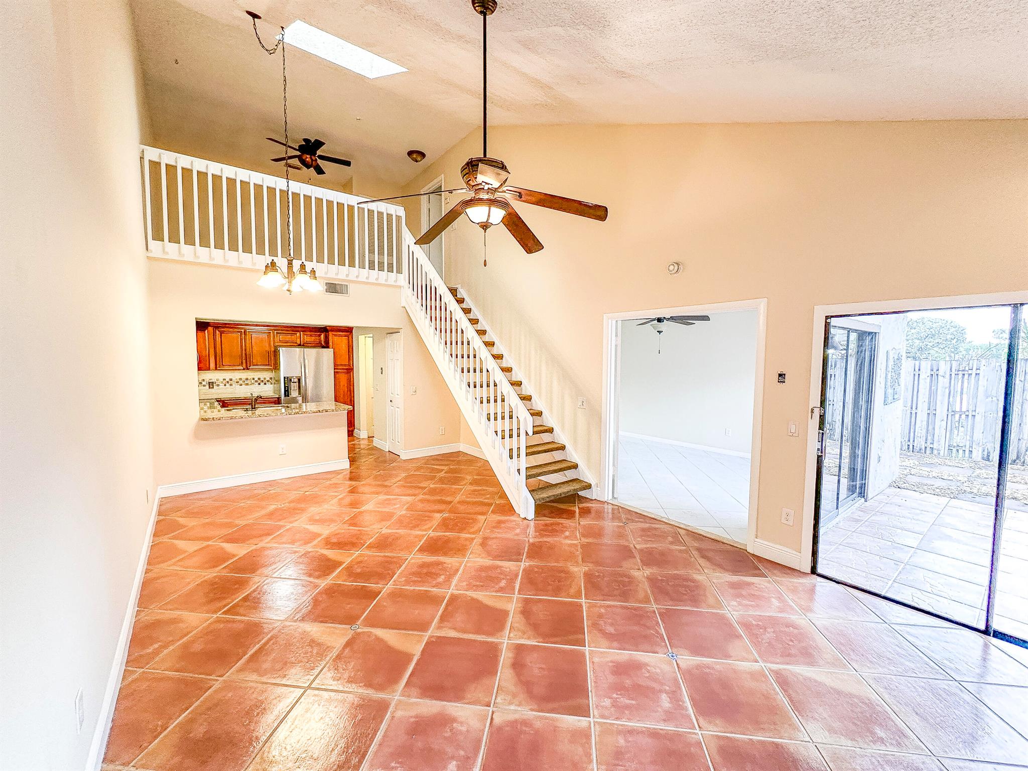 Centrally located Lake Colony, has quick access to the Turnpike, I-95, the airport, downtown West Palm Beach,, and the beach. A unique layout with tall vaulted ceilings, 1 bedroom and 1 bathroom downstairs and 1 bedroom and bathroom upstairs with an open loft / den that can be used as an office, additional bedroom, or 2nd living area. No carpet. Kitchen is well done. ROOF IS NEW. Fenced patio area. Beautiful tree outside your balcony. The community has a pool and tennis courts. 2 parking spots.