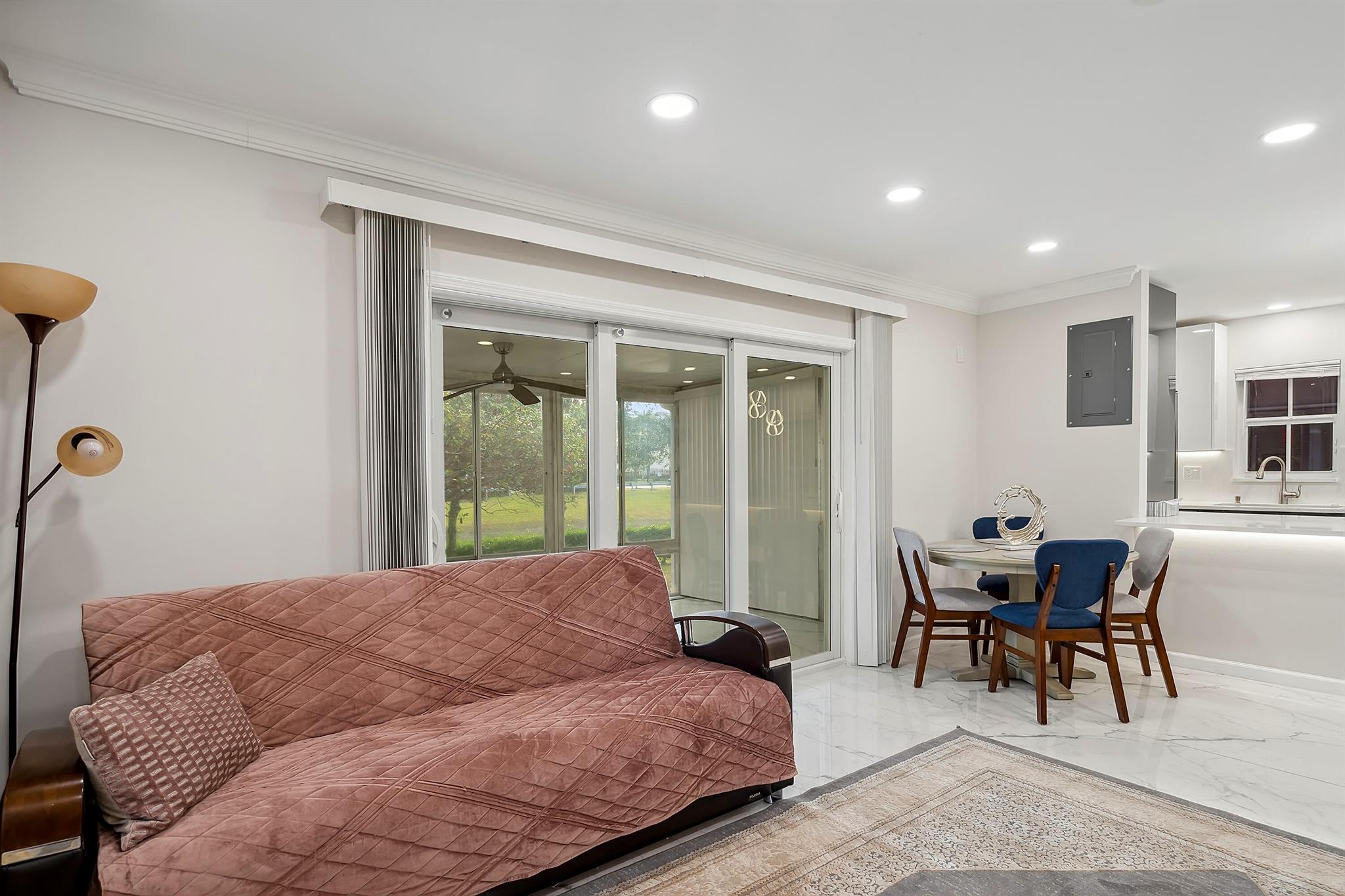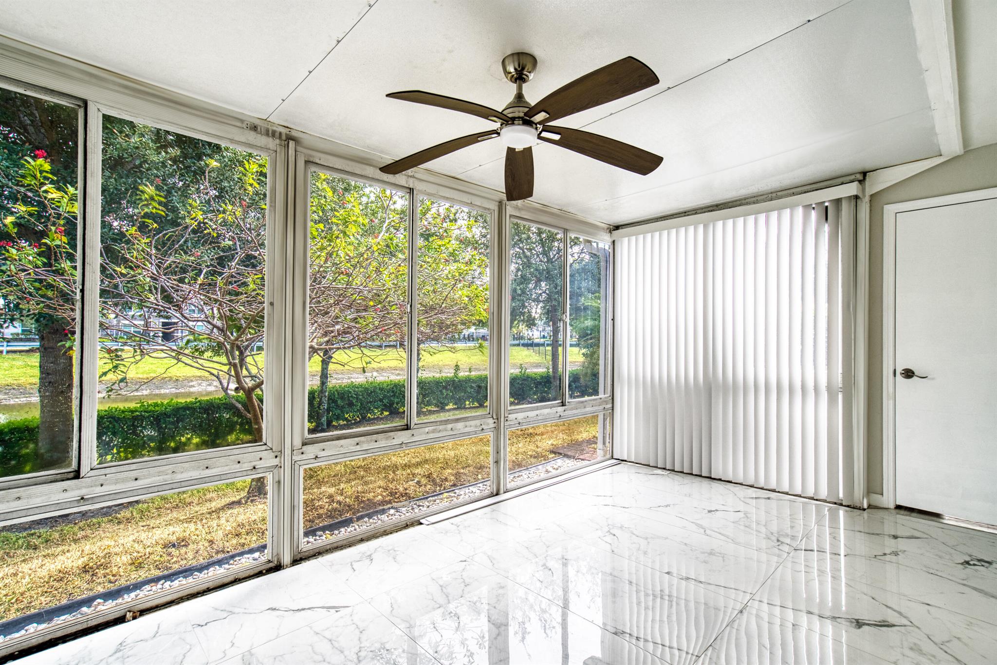 Welcome to Thunderbird Villas, a vibrant and thriving 55+ community with 32 exclusive homes, in the heart of Coral Springs. Meticulously renovated, designer style villa with 2BR, and 2.5 baths. Large porcelain tile throughout the apartment. Beautiful, open kitchen, with quarts island and cabinets, new SS appliances. New Impact windows throughout, except the Florida room. New A/C, new electrical wiring and plumbing throughout. Low monthly HOA is only $175. Enjoy coveted amenities like private covered parking, a dedicated laundry room (with new washer and dryer), large storage closet, and an enclosed screened patio with serene water views. Indulge in the community's ambiance, with a recently renovated heated pool and BBQ area for relaxation.