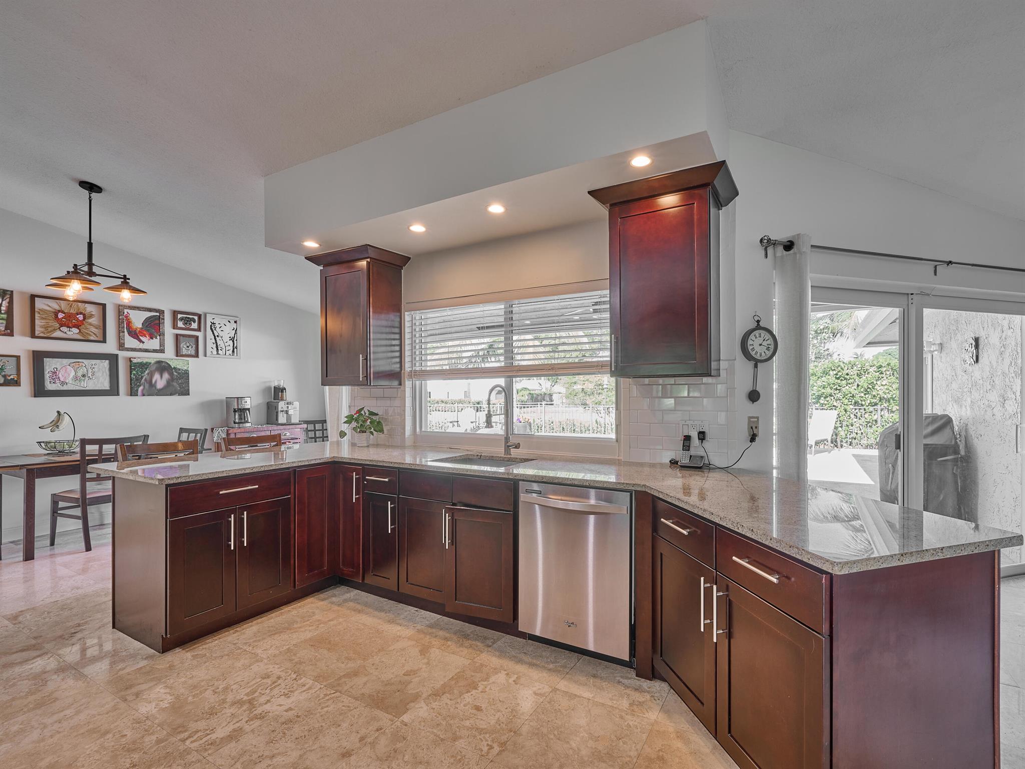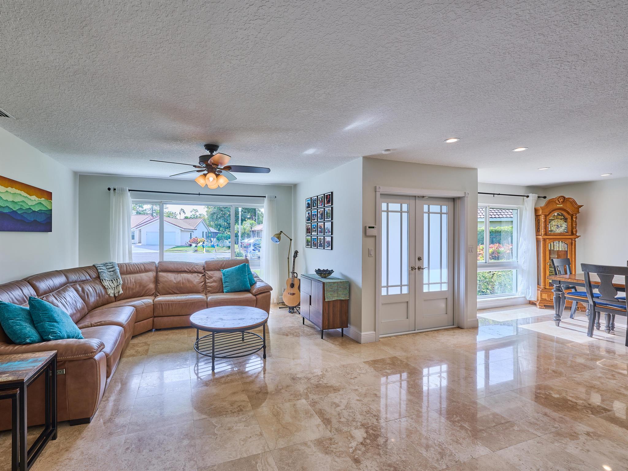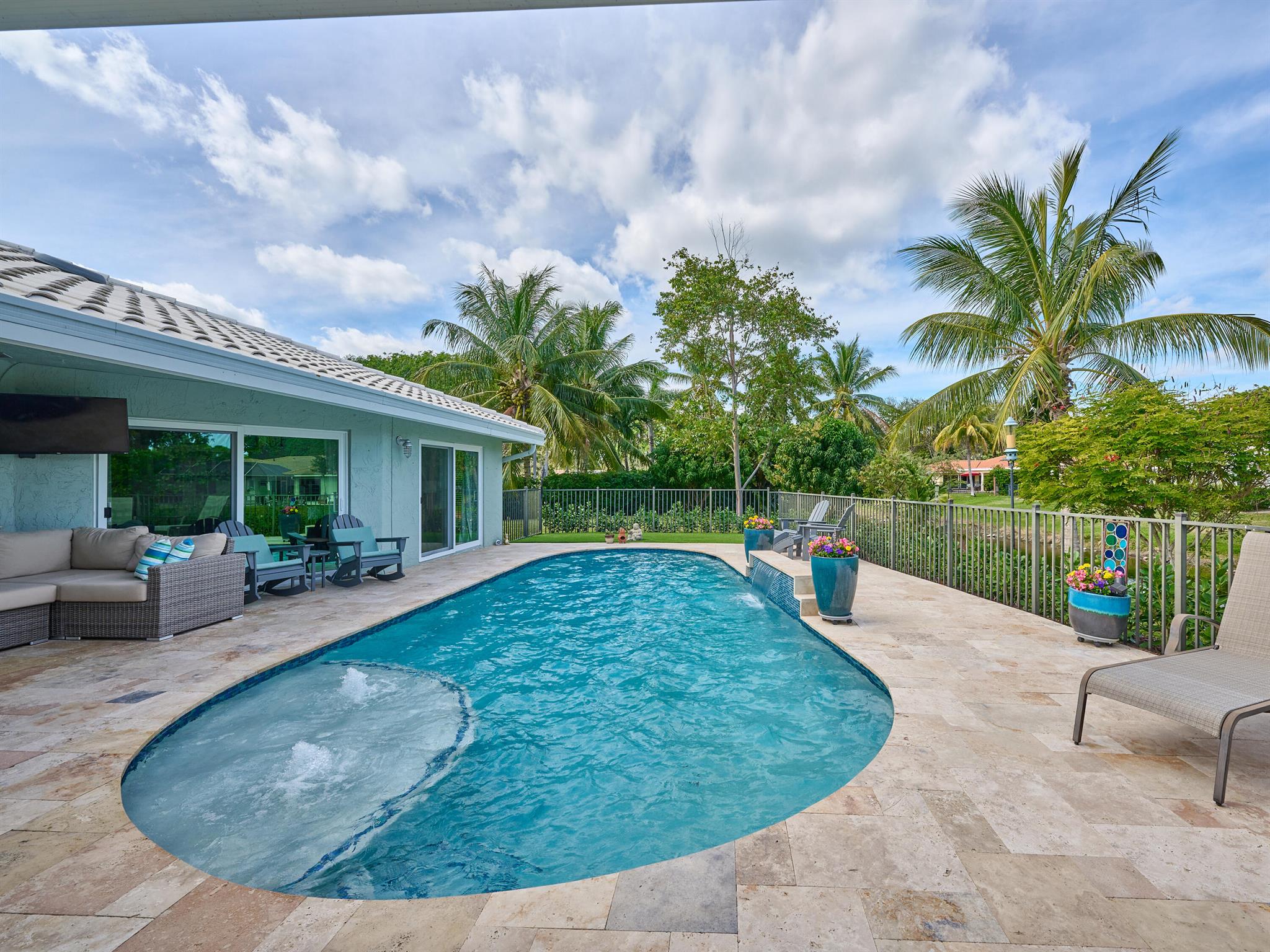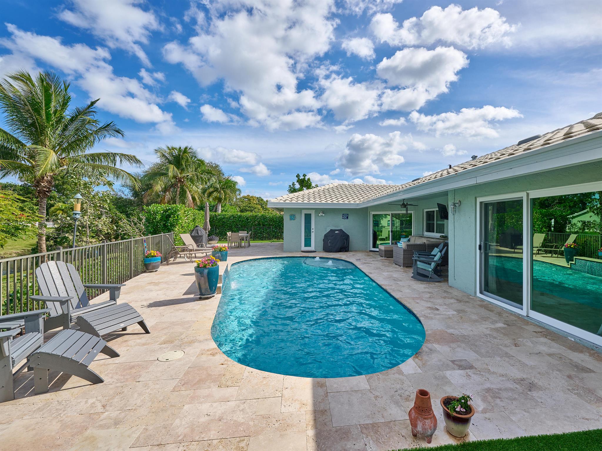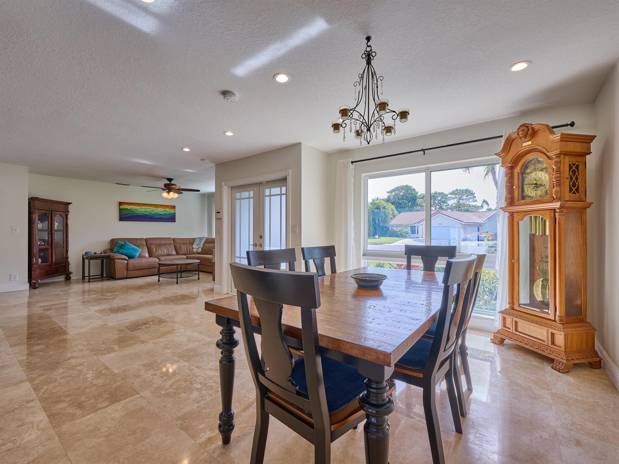 Do not miss this beautiful, Timbercreek property. This updated home has Travertine marble throughout, open kitchen with plenty of counter space and formal living room and family rooms. There are knockdown texture ceilings throughout, no popcorn and all high impact windows, doors and garage door. The pool and patio areas awesome. Great for entertaining or just hanging out. All redone in 2021 with a waterfall, in pool sundeck, and saltwater system. This awesome home is located on one of the most private and nicest Cul de sac streets, in all of Timbercreek. This fine home will not disappoint!