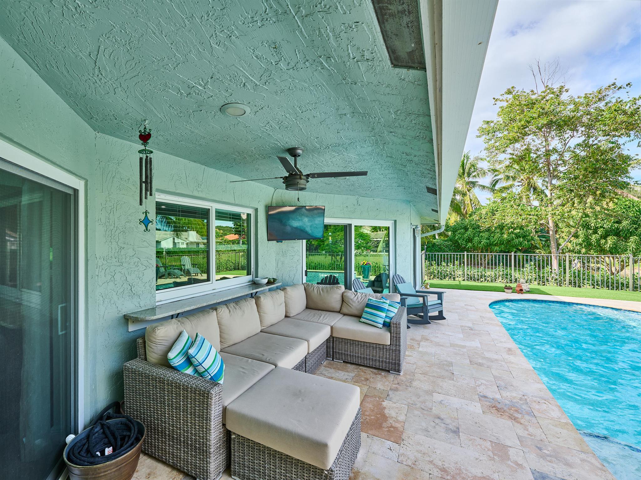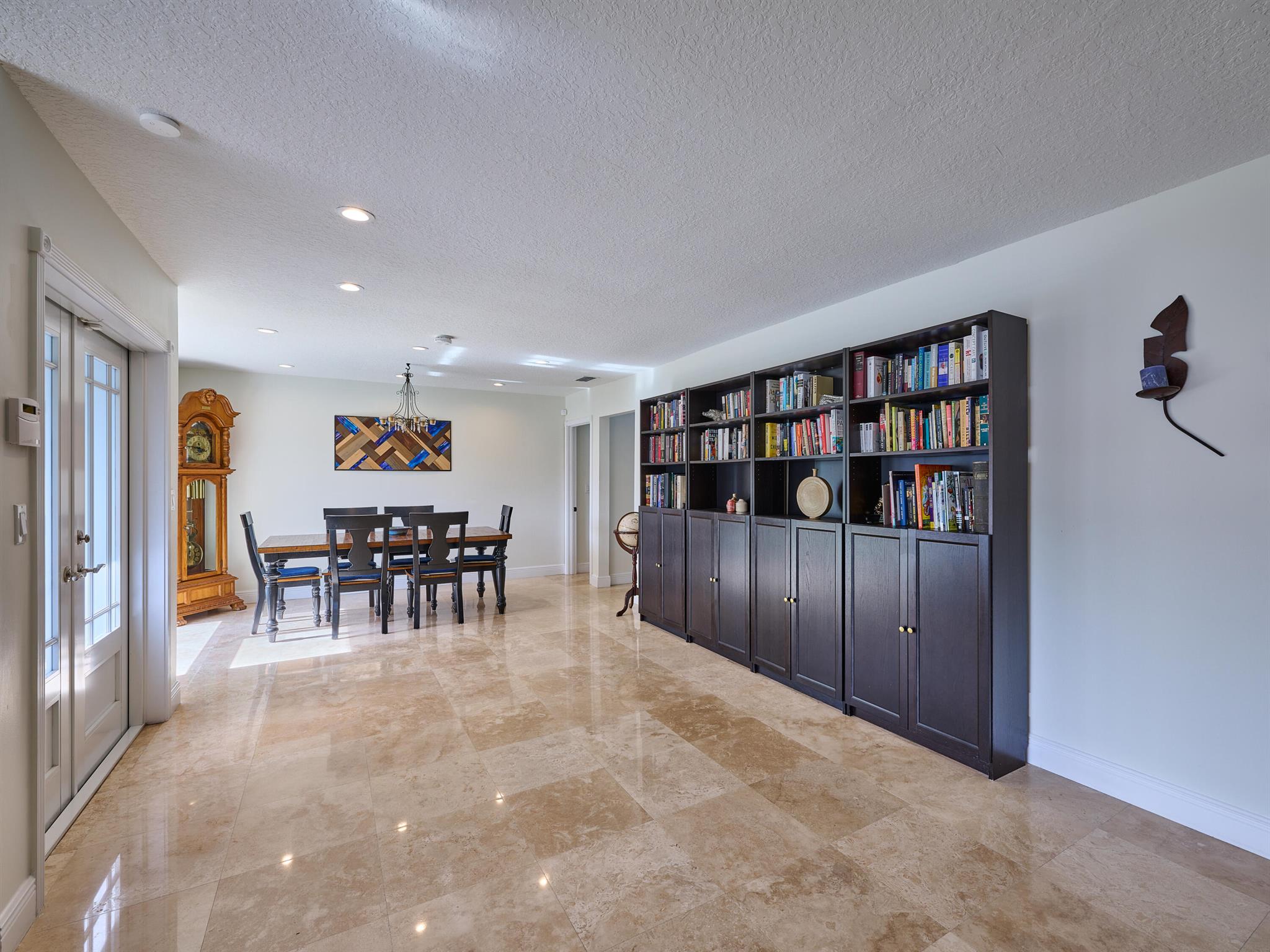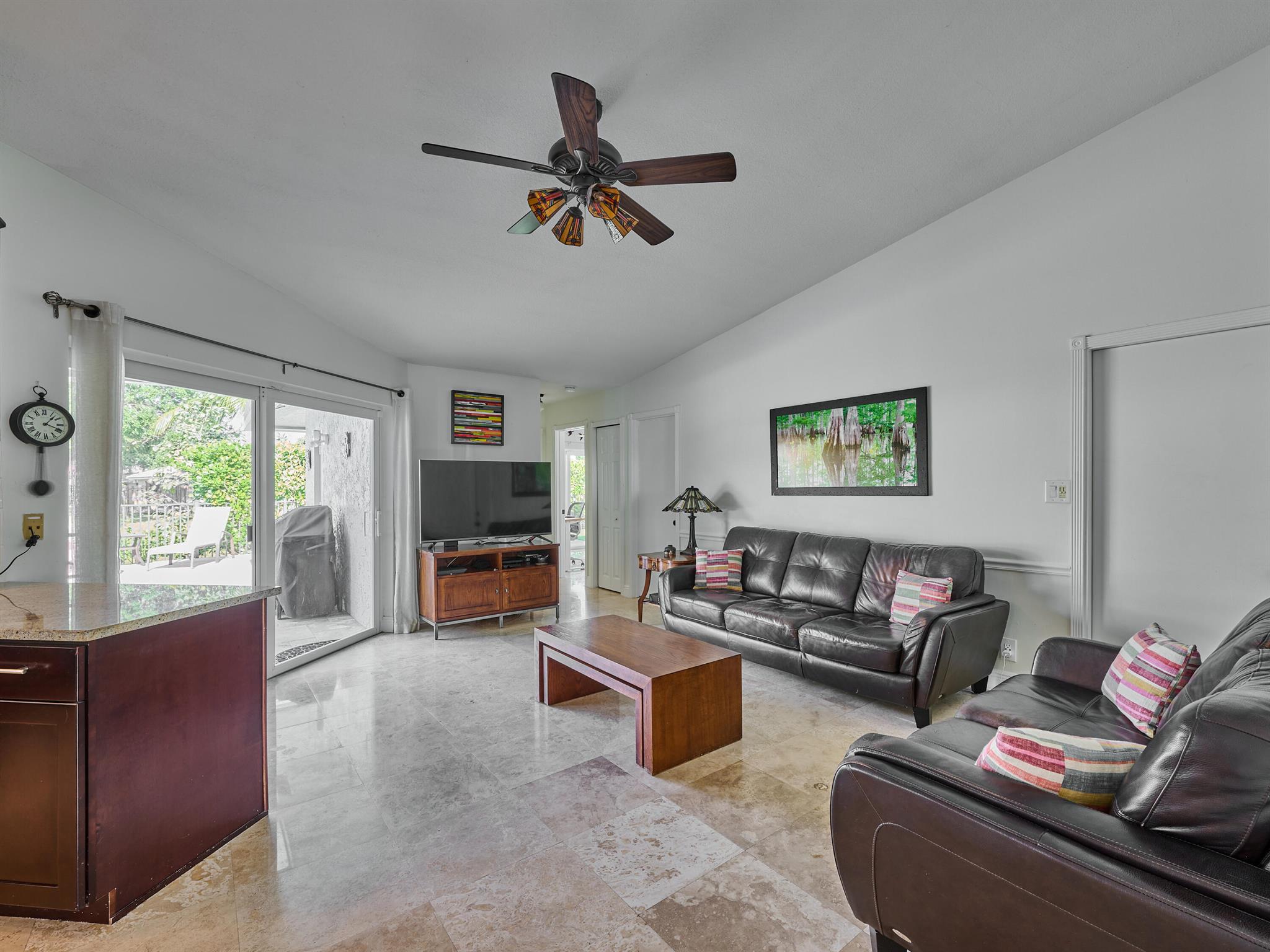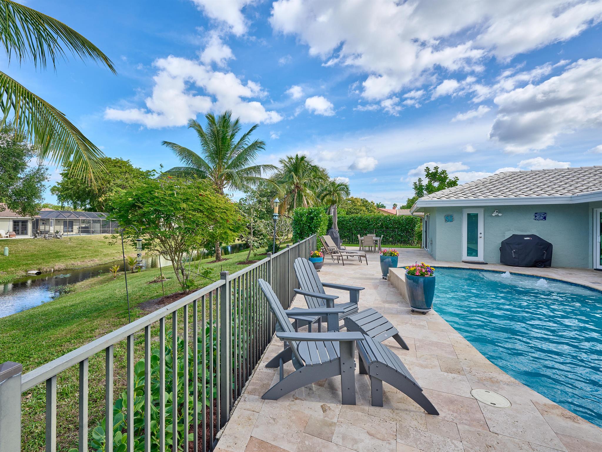Do not miss this beautiful, Timbercreek property. This updated home has Travertine marble throughout, open kitchen with plenty of counter space and formal living room and family rooms. There are knockdown texture ceilings throughout, no popcorn and all high impact windows, doors and garage door. The pool and patio areas awesome. Great for entertaining or just hanging out. All redone in 2021 with a waterfall, in pool sundeck, and saltwater system. This awesome home is located on one of the most private and nicest Cul de sac streets, in all of Timbercreek. This fine home will not disappoint!
