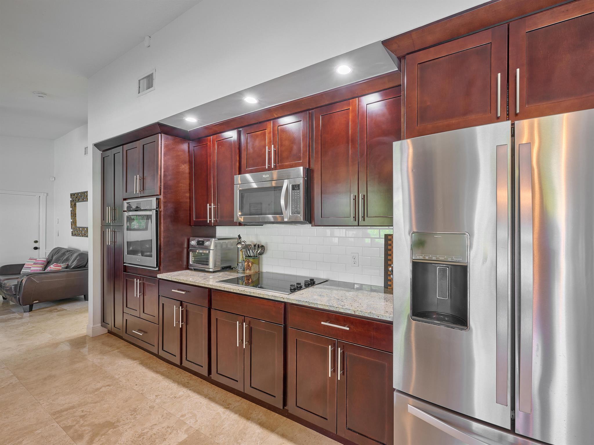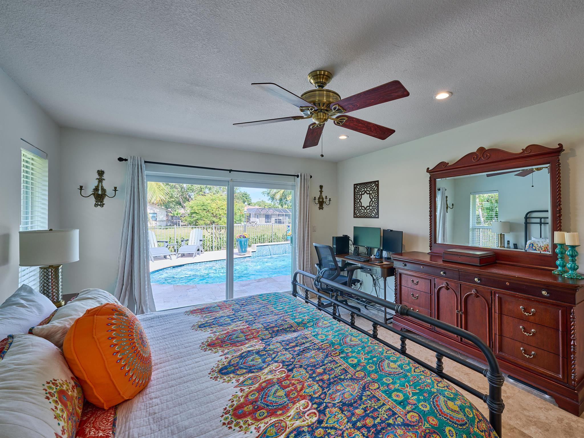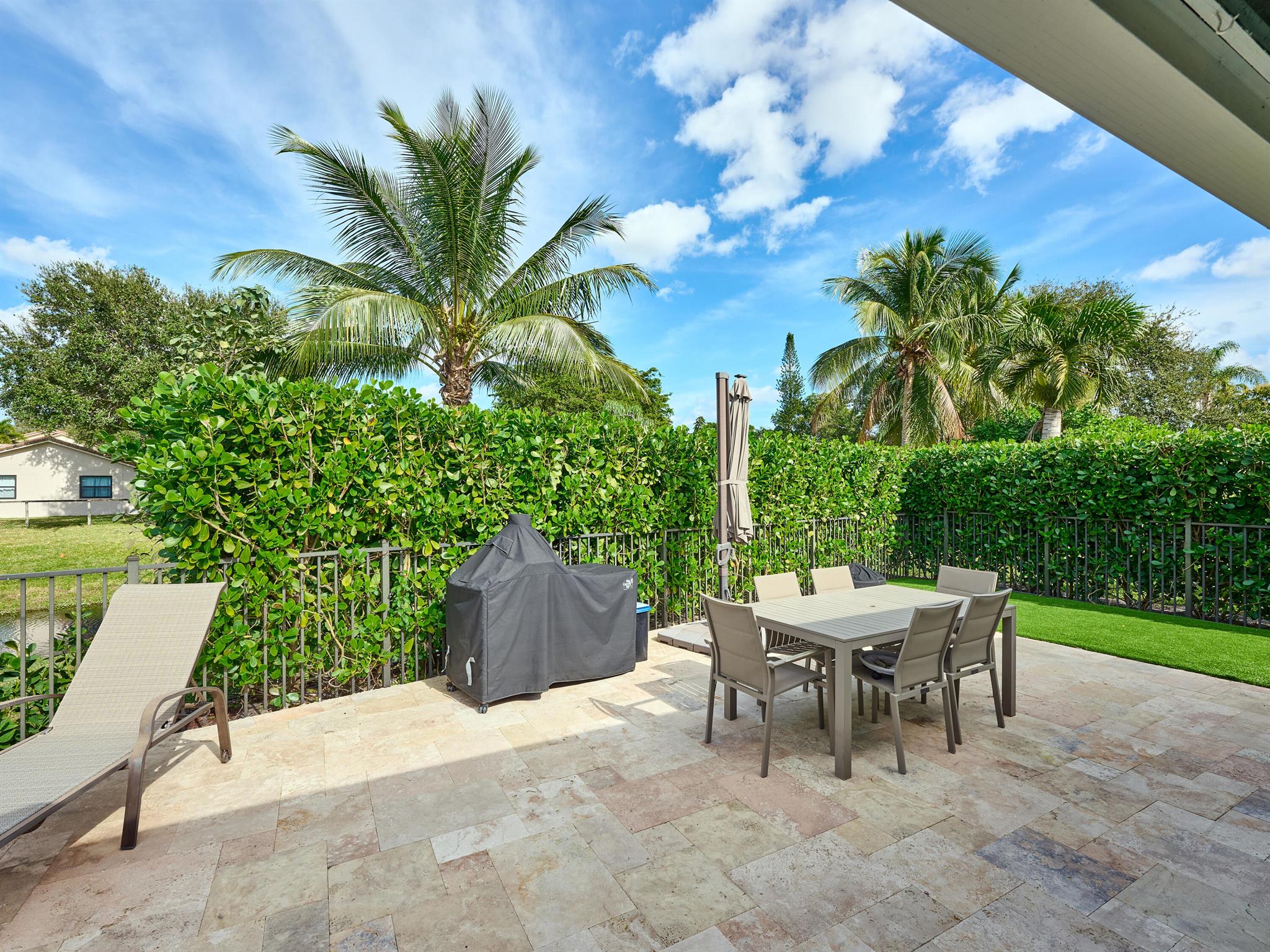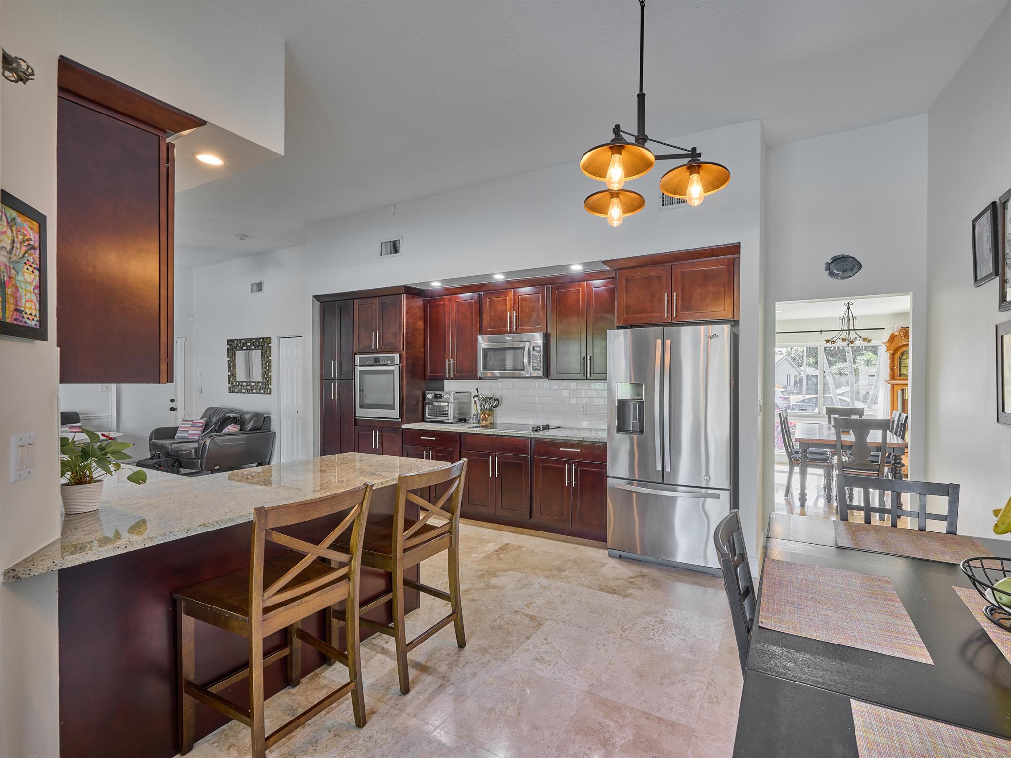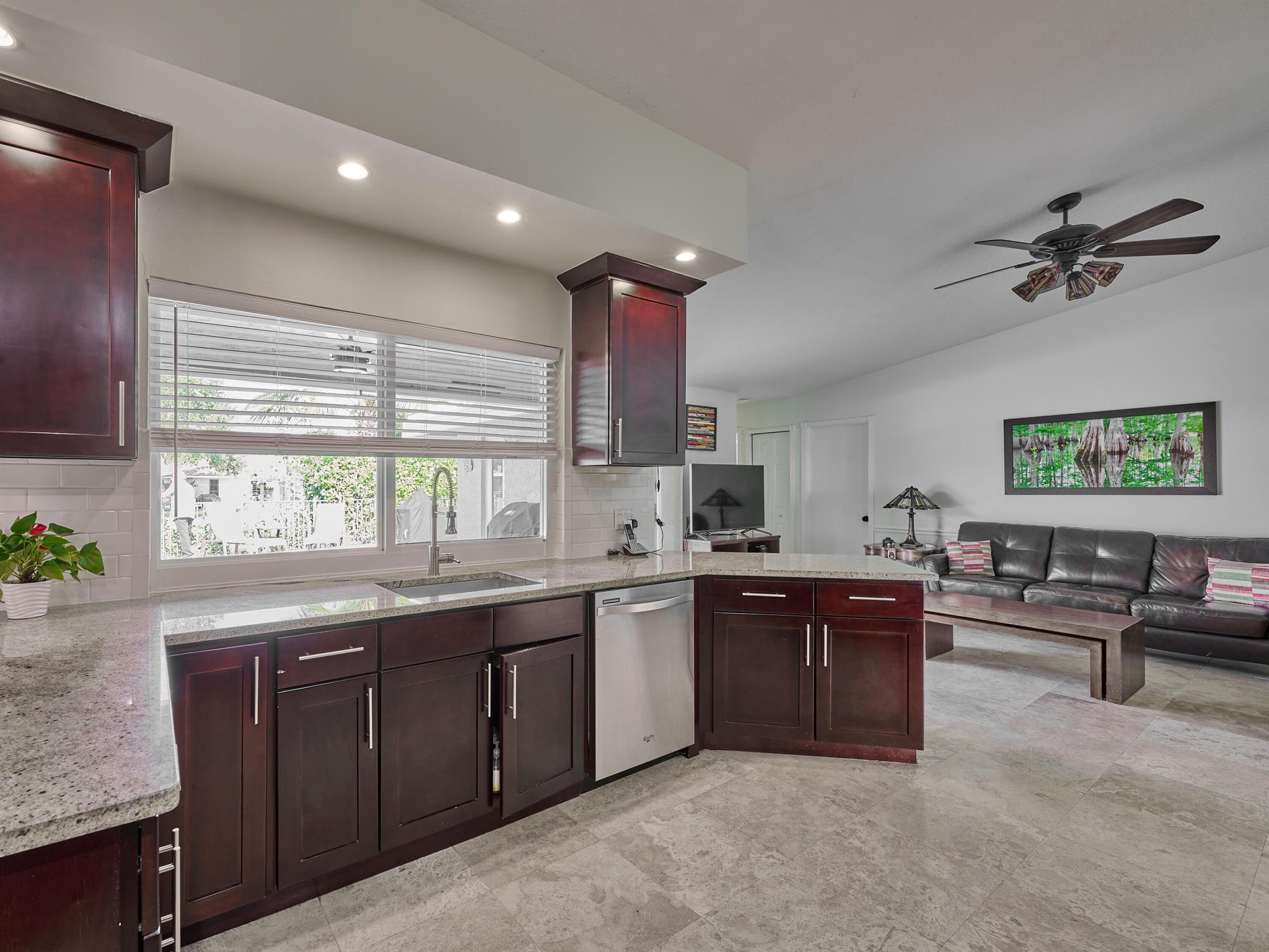 Do not miss this beautiful, Timbercreek property. This updated home has Travertine marble throughout, open kitchen with plenty of counter space and formal living room and family rooms. There are knockdown texture ceilings throughout, no popcorn and all high impact windows, doors and garage door. The pool and patio areas awesome. Great for entertaining or just hanging out. All redone in 2021 with a waterfall, in pool sundeck, and saltwater system. This awesome home is located on one of the most private and nicest Cul de sac streets, in all of Timbercreek. This fine home will not disappoint!