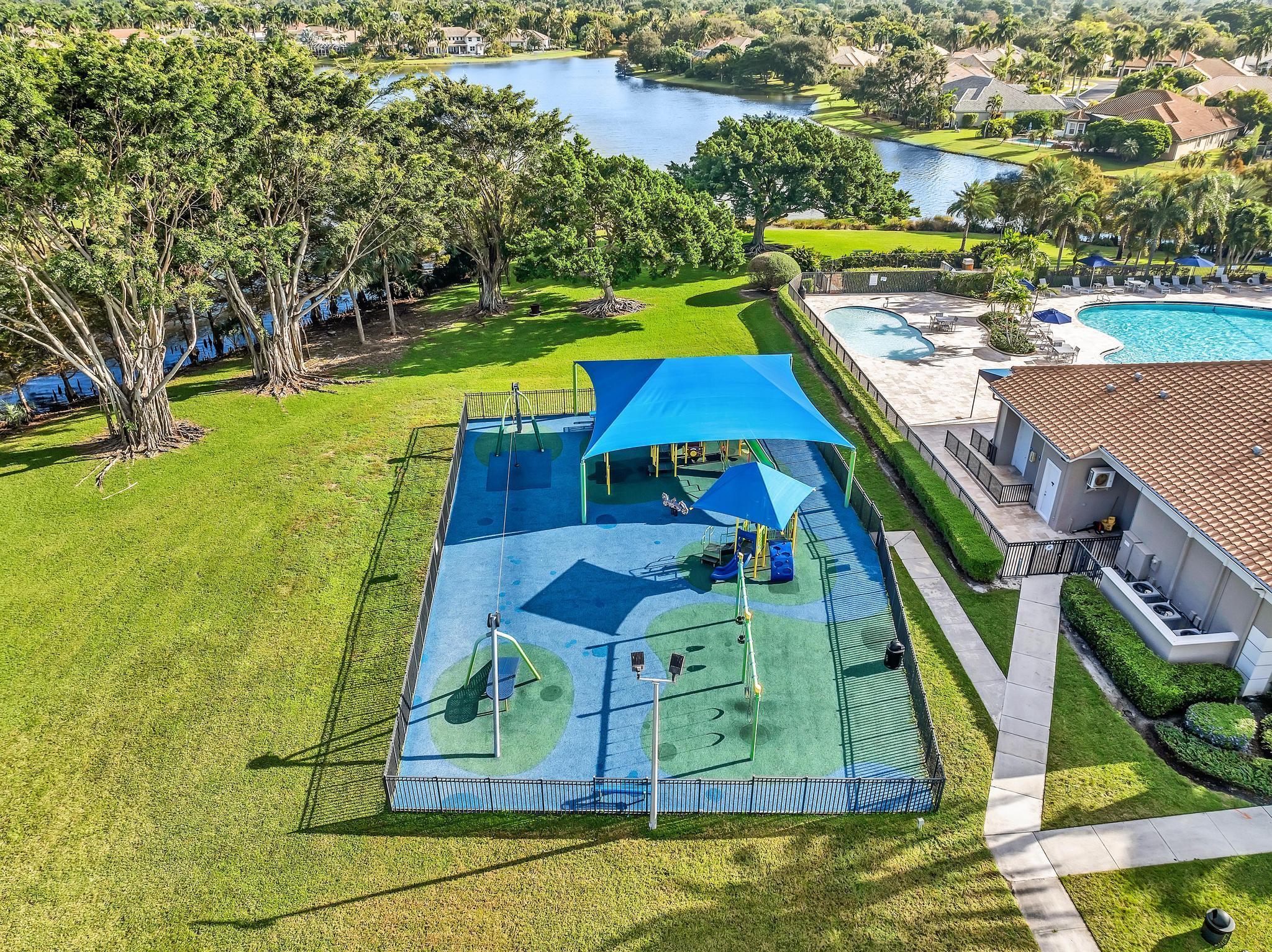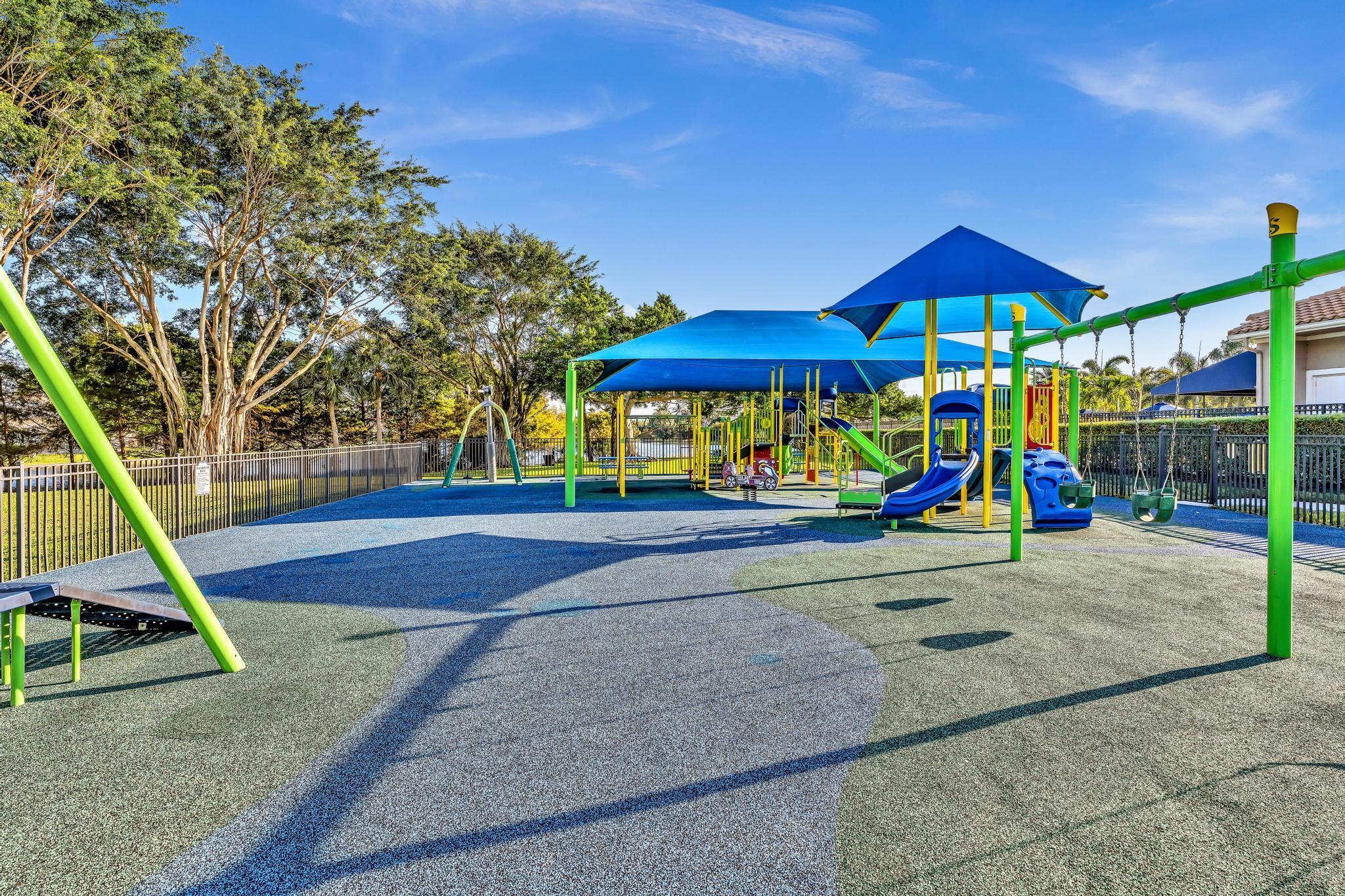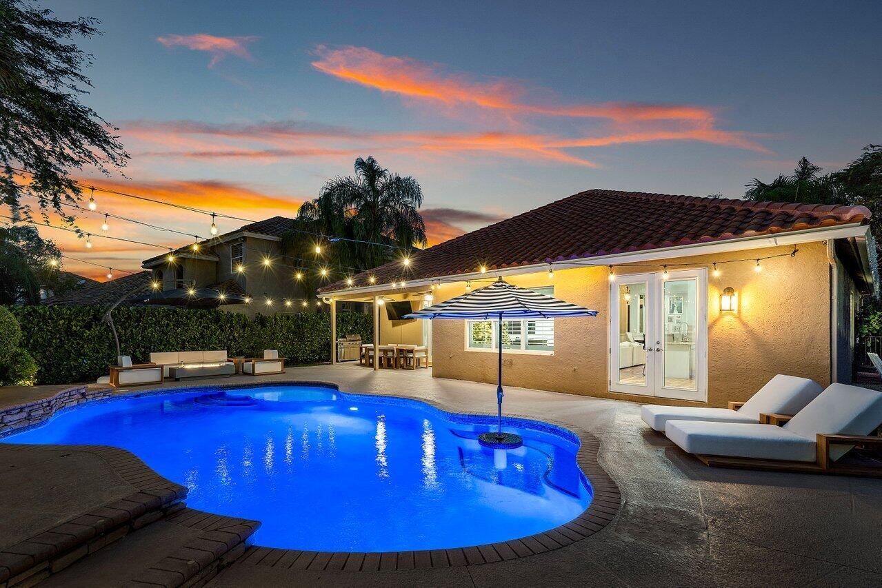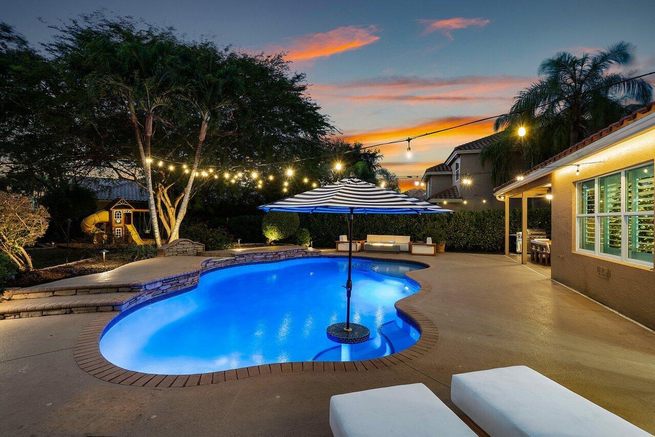 Nestled in the prestigious gated community of Boca Falls, this stunning pool home sits on one of the largest corner lots in the neighborhood. With a brand-new 2024 roof and full PGT hurricane impact windows and French doors, this 3 bedroom, 2.5 bath home is the perfect blend of elegance and practicality. The 2-car garage features epoxy flooring and a custom NewAge Bold Series cabinet system, adding both style and storage. The oversized heated saltwater pool is a showstopper, offering water features, jacuzzi seating, and a built-in table with an umbrella. The lushly landscaped, fenced backyard is complete with a volt uplight system, Rachio smart sprinkler system, a Solo-style firepit, and a private playground - all creating the ultimate space for entertaining and family fun.