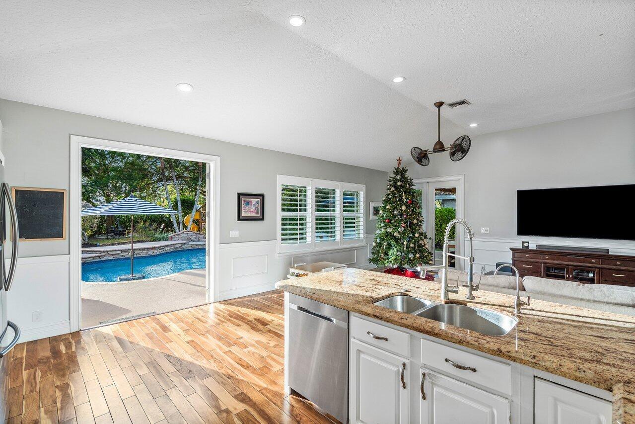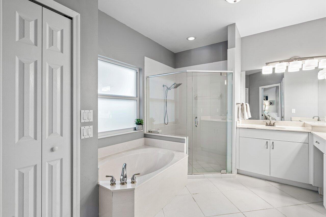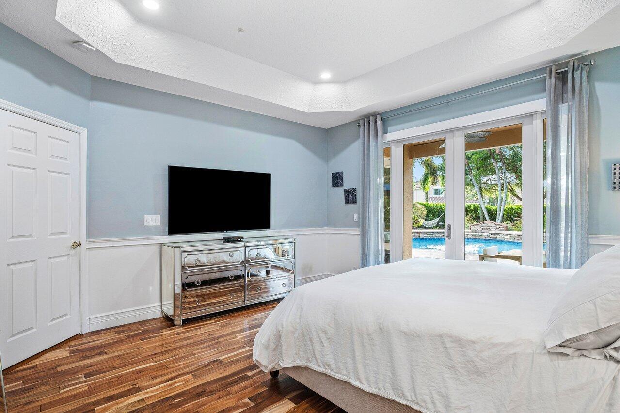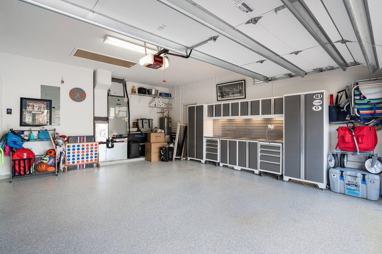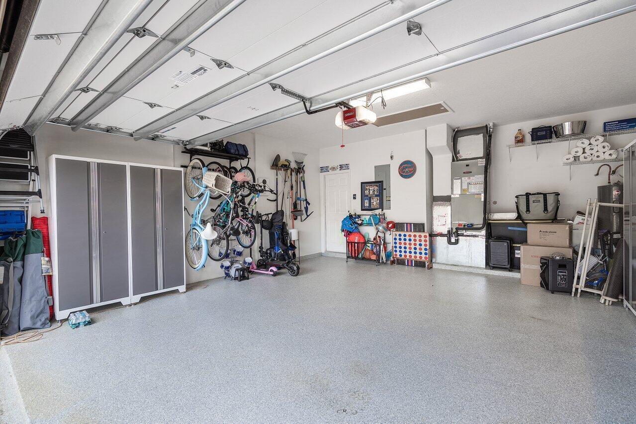 Nestled in the prestigious gated community of Boca Falls, this stunning pool home sits on one of the largest corner lots in the neighborhood. With a brand-new 2024 roof and full PGT hurricane impact windows and French doors, this 3 bedroom, 2.5 bath home is the perfect blend of elegance and practicality. The 2-car garage features epoxy flooring and a custom NewAge Bold Series cabinet system, adding both style and storage. The oversized heated saltwater pool is a showstopper, offering water features, jacuzzi seating, and a built-in table with an umbrella. The lushly landscaped, fenced backyard is complete with a volt uplight system, Rachio smart sprinkler system, a Solo-style firepit, and a private playground - all creating the ultimate space for entertaining and family fun.