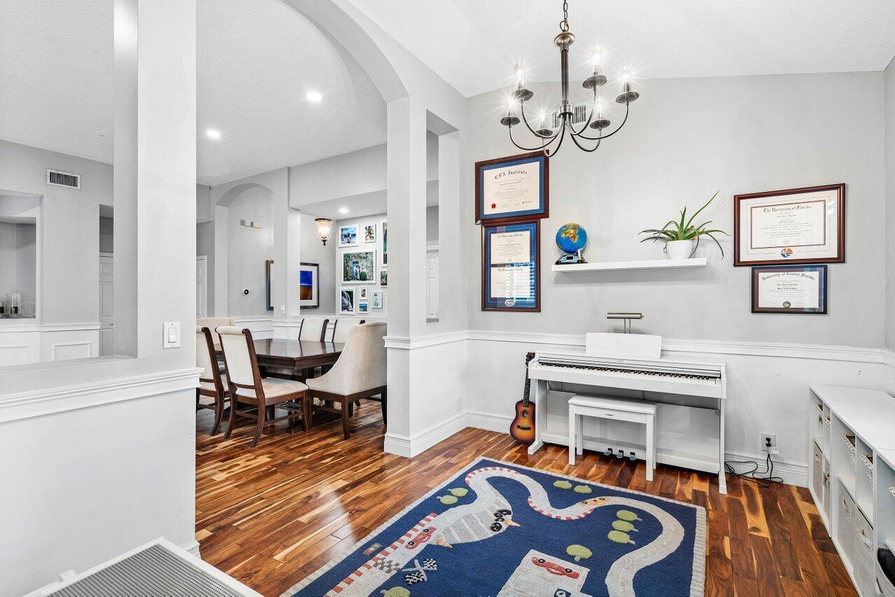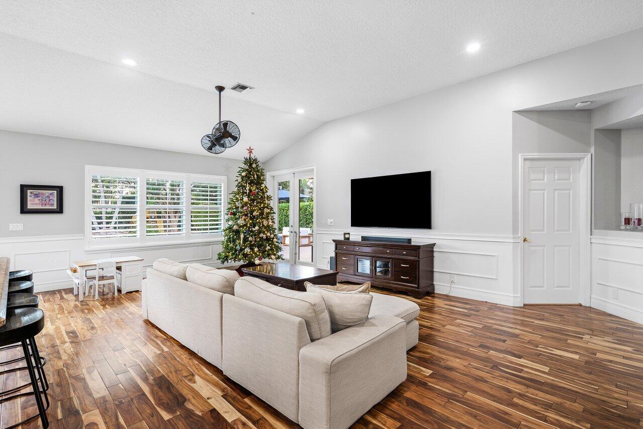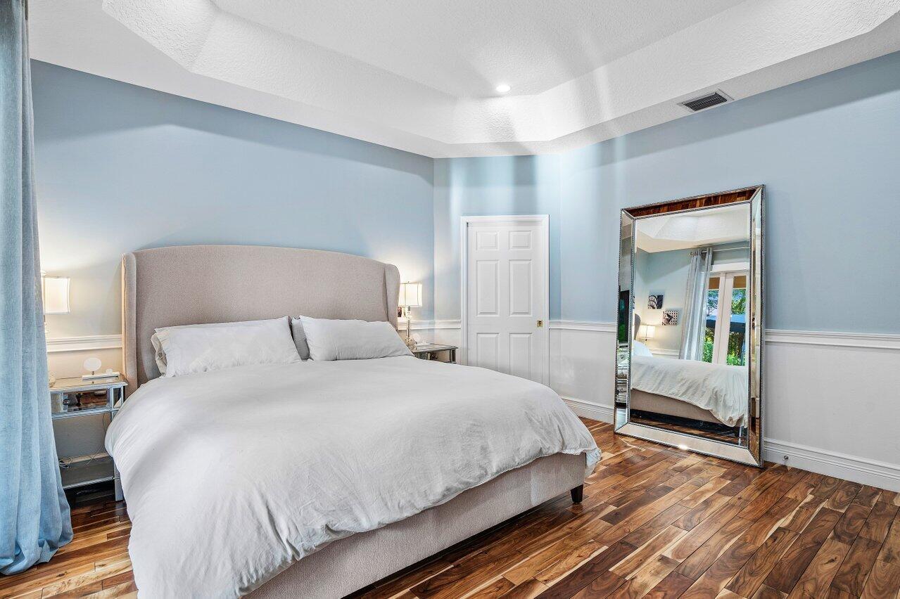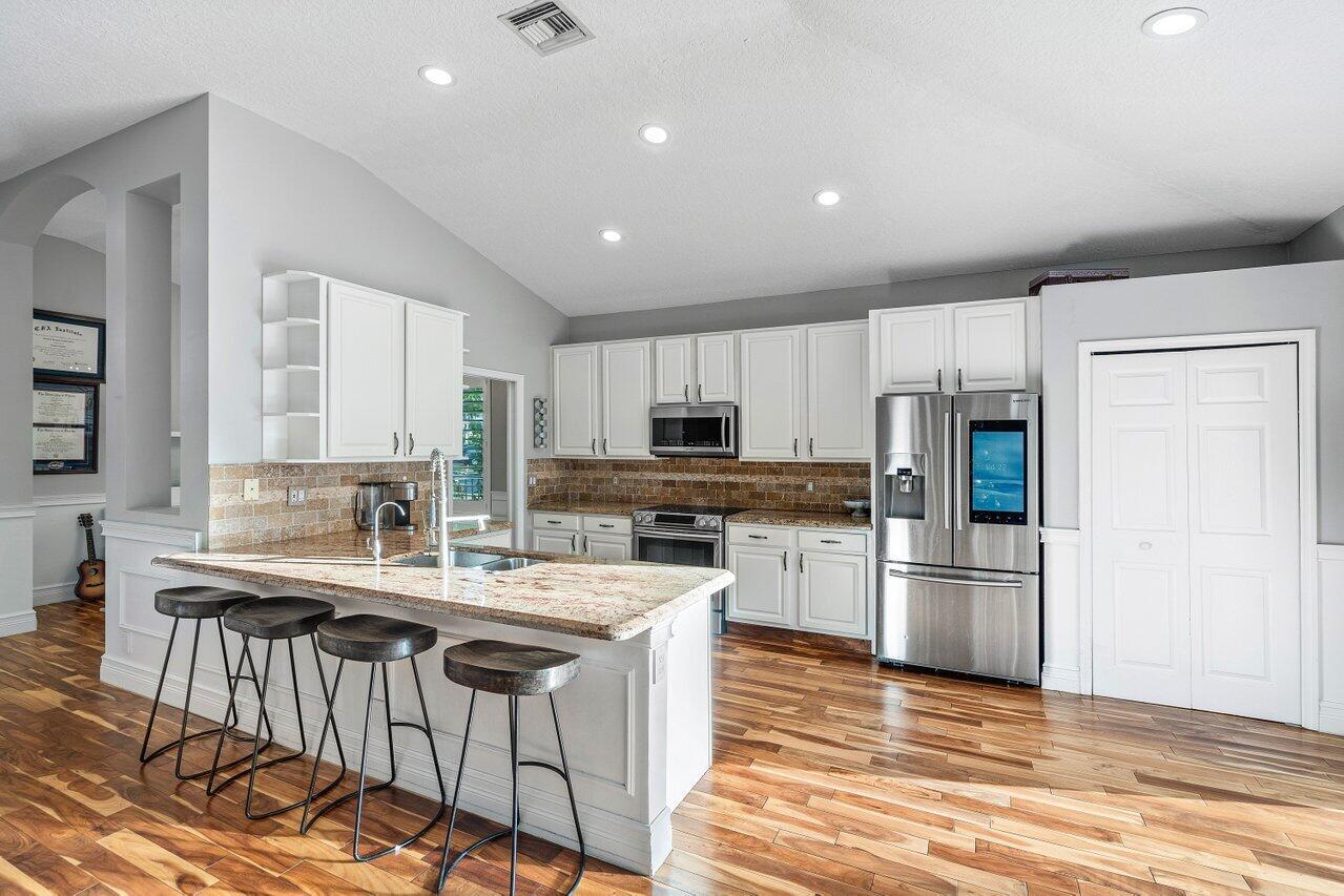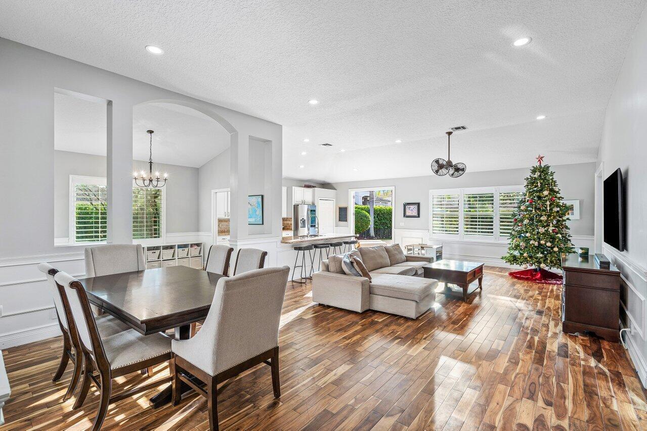 Nestled in the prestigious gated community of Boca Falls, this stunning pool home sits on one of the largest corner lots in the neighborhood. With a brand-new 2024 roof and full PGT hurricane impact windows and French doors, this 3 bedroom, 2.5 bath home is the perfect blend of elegance and practicality. The 2-car garage features epoxy flooring and a custom NewAge Bold Series cabinet system, adding both style and storage. The oversized heated saltwater pool is a showstopper, offering water features, jacuzzi seating, and a built-in table with an umbrella. The lushly landscaped, fenced backyard is complete with a volt uplight system, Rachio smart sprinkler system, a Solo-style firepit, and a private playground - all creating the ultimate space for entertaining and family fun.