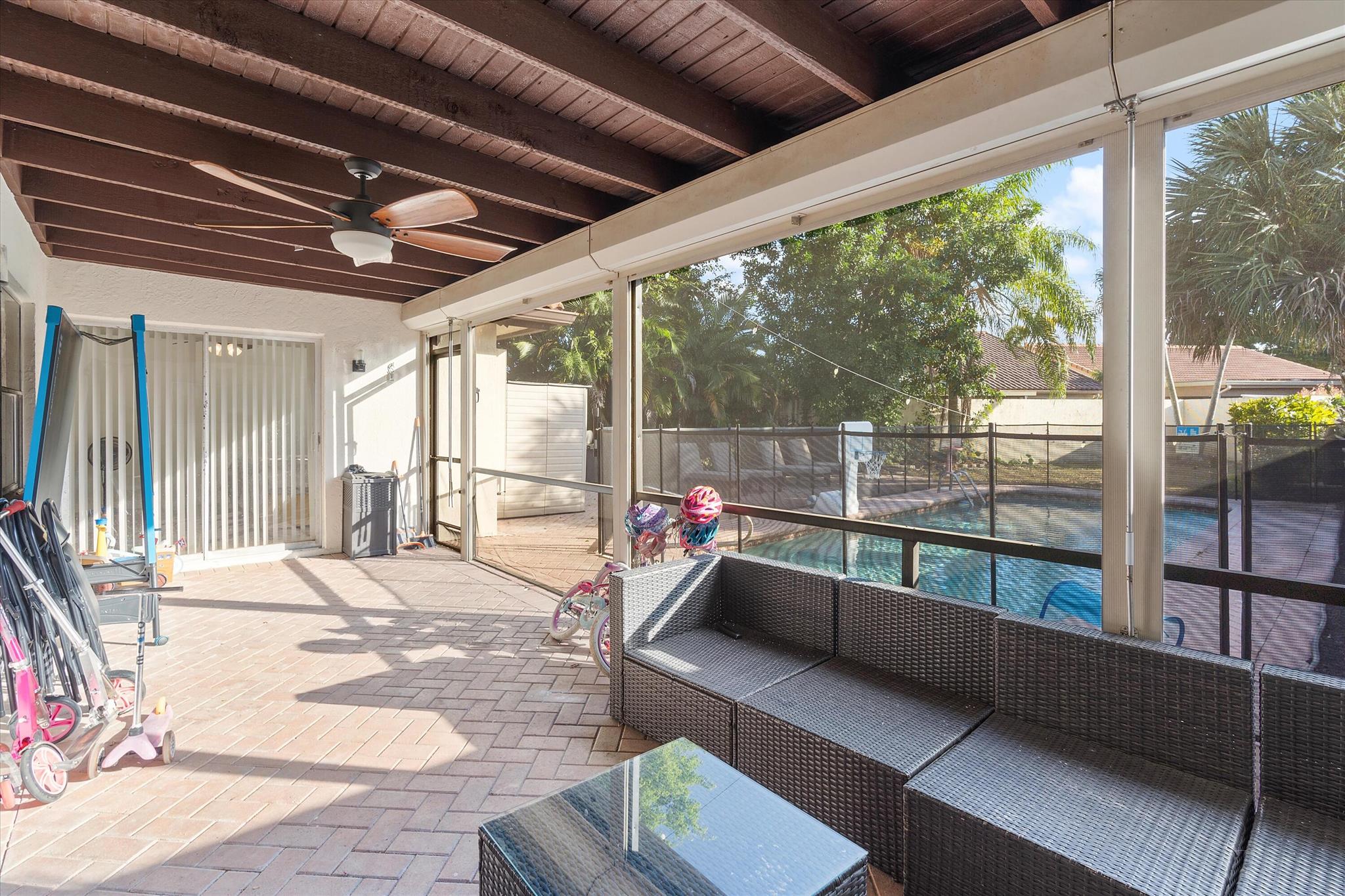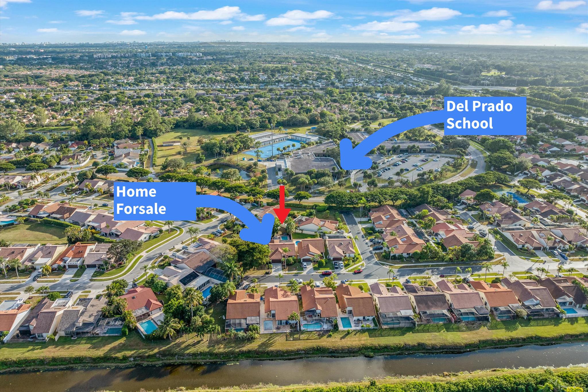 Exceptional Opportunity to own a spacious 2,014 sq. ft. home on an expansive 11,750+\- sq. ft. LOT (.26 ACRE ) in the heart of Central Boca. This well-maintained, single-story POOL home offers 4 BEDROOM plus a DEN/bonus room, 2 bathrooms, and soaring vaulted ceilings. Tucked away at the end of a quiet dead-end street. The home also includes an interior laundry room. The serene backyard is perfect for relaxation, with a large patio area, HEATED POOL, and an additional SIDE YARD for extra space. Walking distance to the highly-rated Del Prado Elementary School and walking distance to several houses of worship. With low HOA fees, a community tennis court, and a practical layout, this property provides outstanding value. All measurements are approximate and should be verifi