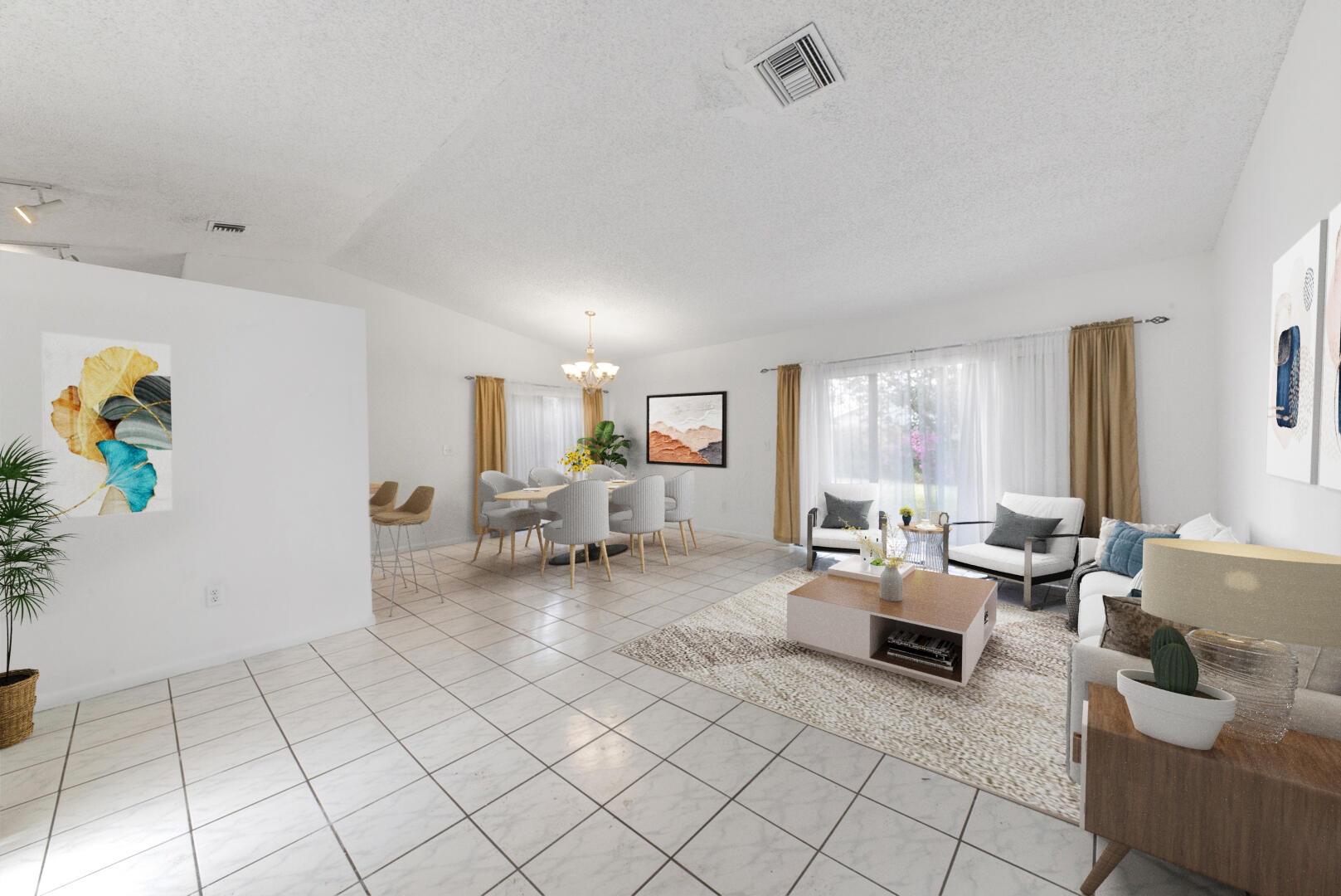 Welcome home to this bright and airy 3-bedroom, 2-bathroom gem located in a quiet, low-HOA community. The open floorplan, vaulted ceilings, and abundant natural light create an inviting atmosphere. The kitchen shines with ample light, a snack bar, and plenty of space to cook and gather. A large bonus room adds flexibility to suit your needs, and the home is equipped with accordion shutters for peace of mind. The primary suite offers a private retreat with a slider opening to the patio. Outside, enjoy a fenced yard with plenty of privacy, a convenient shed for extra storage, and a brand-new hot water heater. This home has everything you need to live comfortably and stylishly!