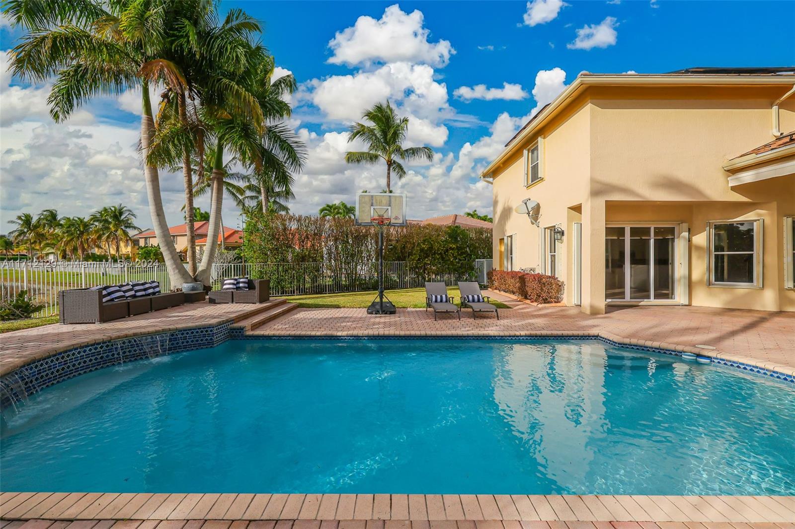 Welcome to your dream home in the resort-style community of Savanna! This exquisite 5-bedroom +den offers elegance, comfort, and breathtaking sunsets. It is equipped with a state-of-the art solar system to ensure remarkably low FPL bills promoting sustainable living. New 2024 roof with stylish flat tiles, and there is a water house filtration system! As you enter, you are greeted by a grand dual staircase. The first floor features main bedroom, marble flooring, spacious living areas and natural light. The second floor includes two Jack-and-Jill bathrooms, providing convenience and privacy for family plus a loft. Main bathroom has been remodeled creating a spa-like atmosphere. Accordion shutters offer peace of mind. Pool, Lake view, A+Schools. Amazing Club House.