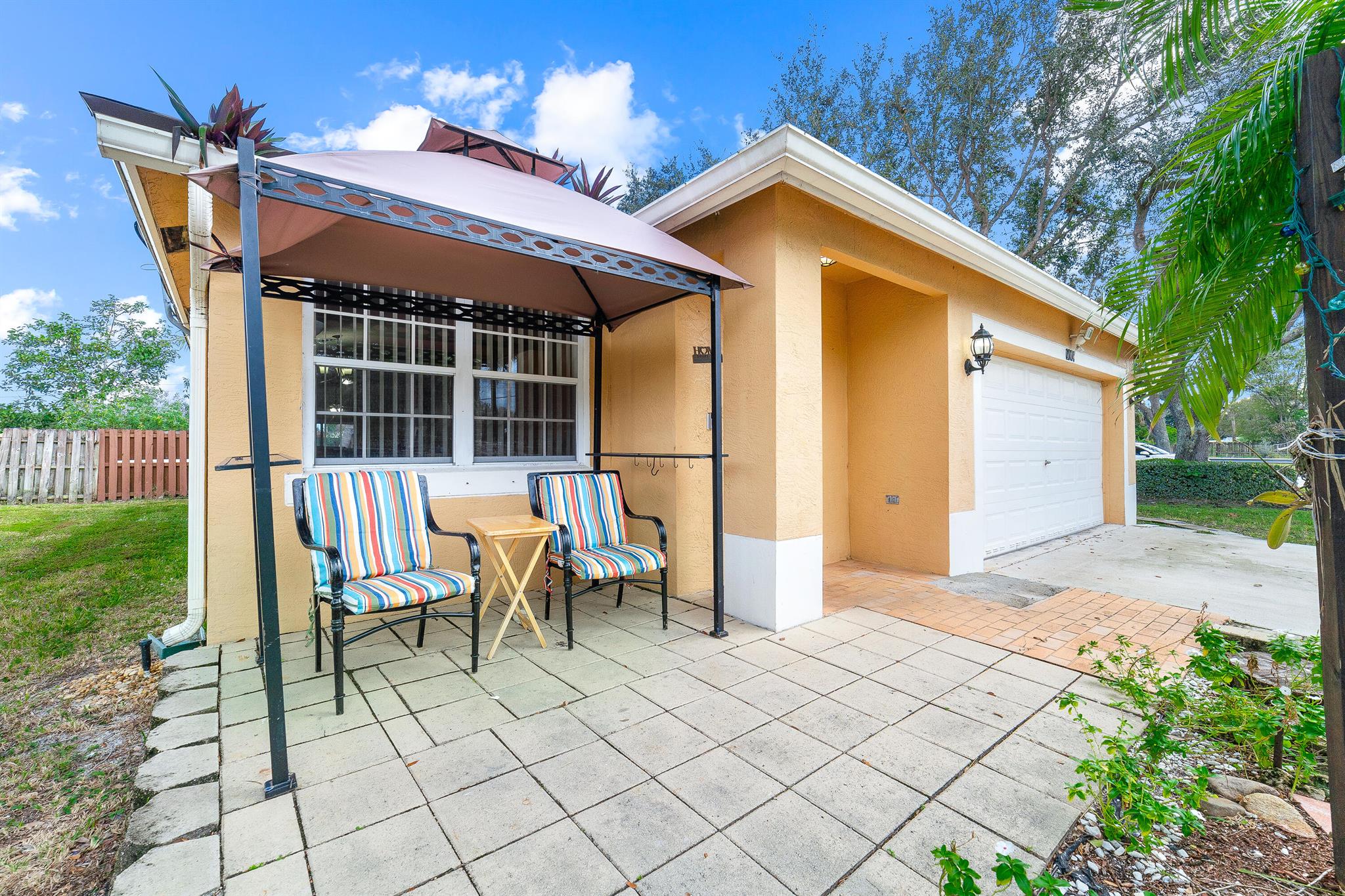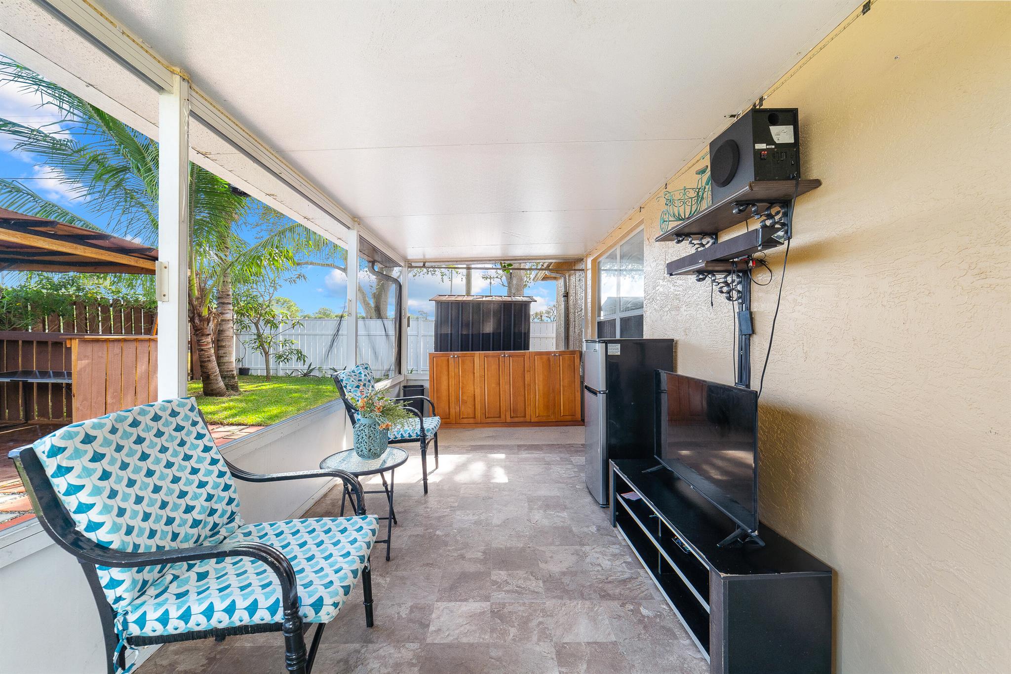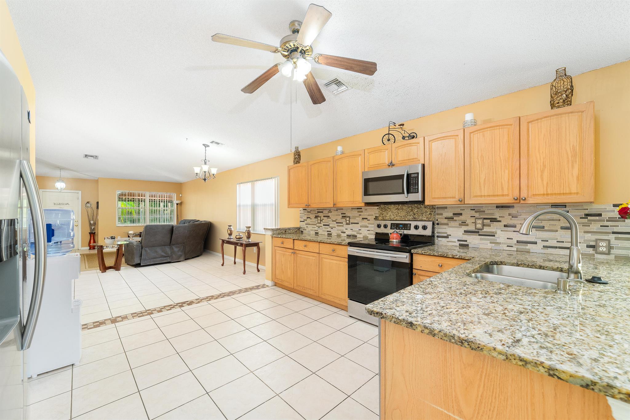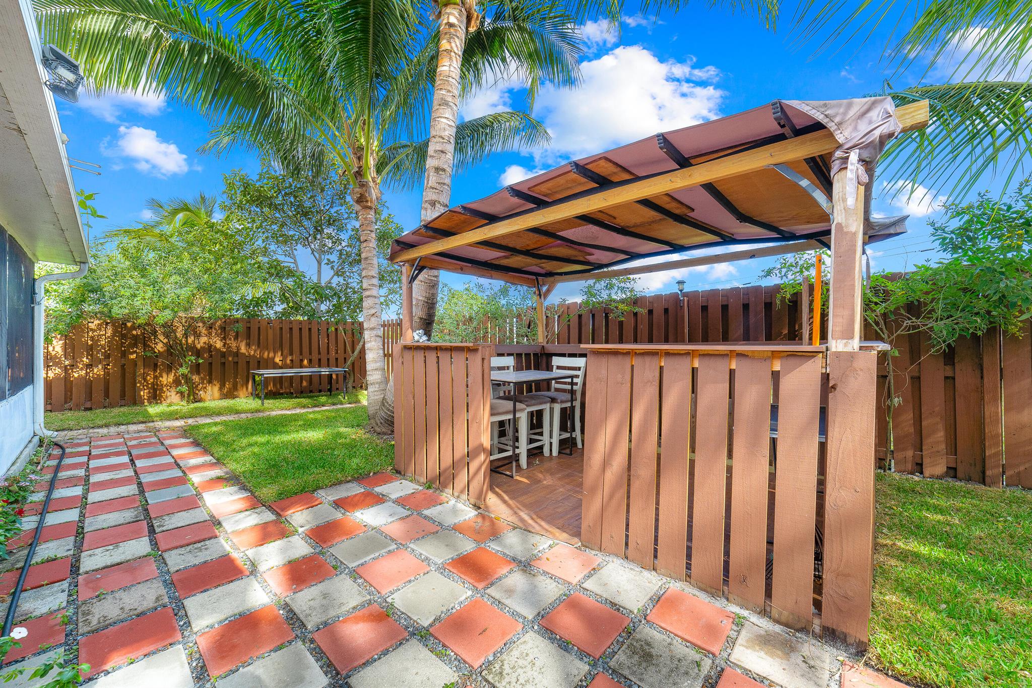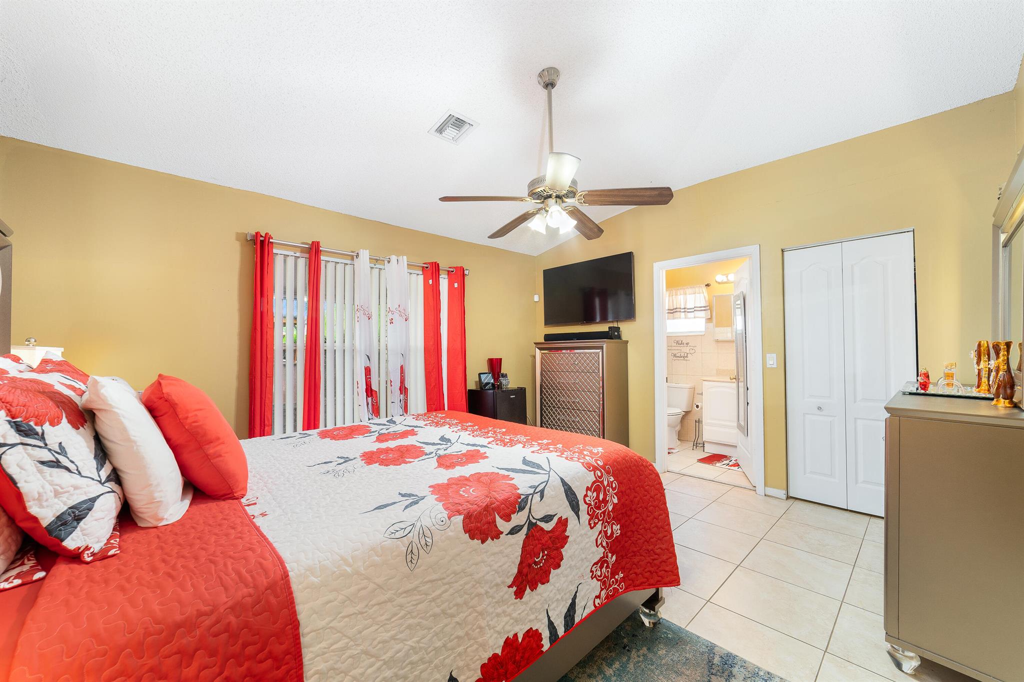 This beautiful 3 bedroom, 2 bathroom, one-story home with a 2-car garage rests on a private, fenced-in, 0.12 acre corner lot in a great, centralized location in a low HOA community! Vaulted ceilings make it feel airy and bright. The home showcases neutral color tile throughout. The kitchen is equipped with stainless steel appliances, granite countertops, light wood cabinets and a pantry. The primary bedroom features his and hers walk-in closets. The laundry room offers a full size washer and dryer. Step out and relax on the screened-in, covered patio. The backyard nests a new cozy gazebo that is great for relaxation or entertainment. There is also a storage shed that can be used for extra storage. The roof and water heater were replaced in 2020. White shelving in the primary closet do not