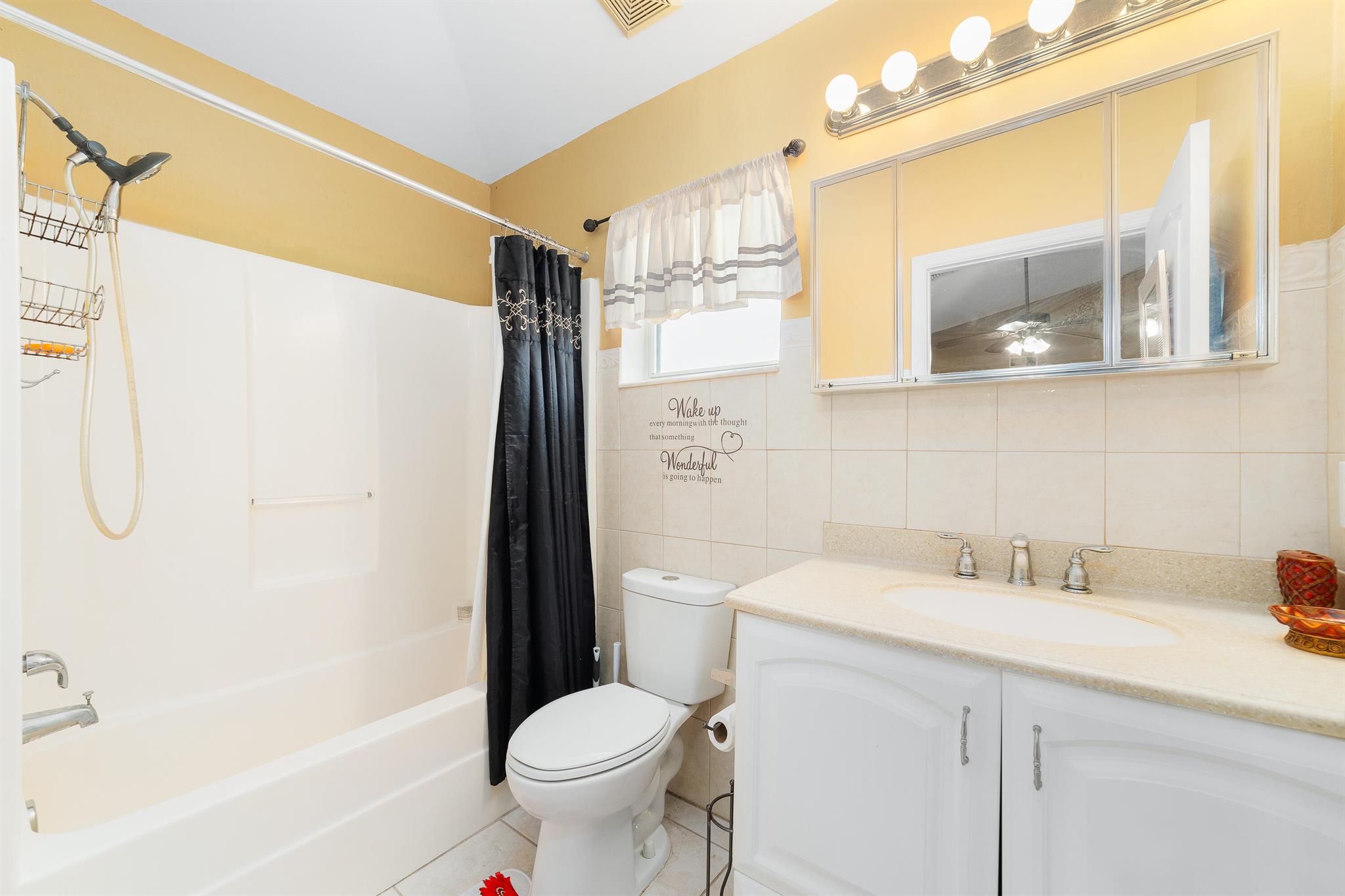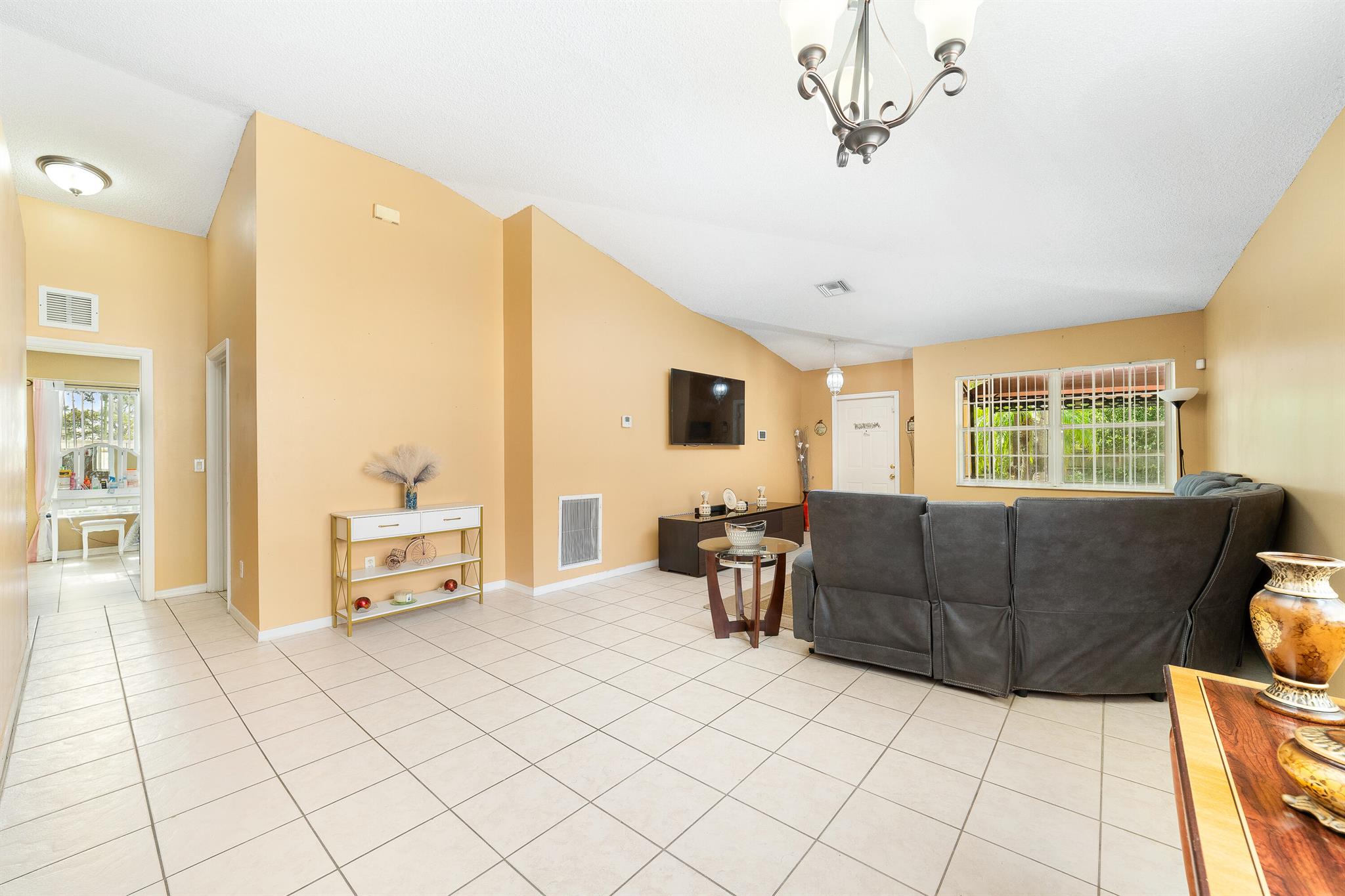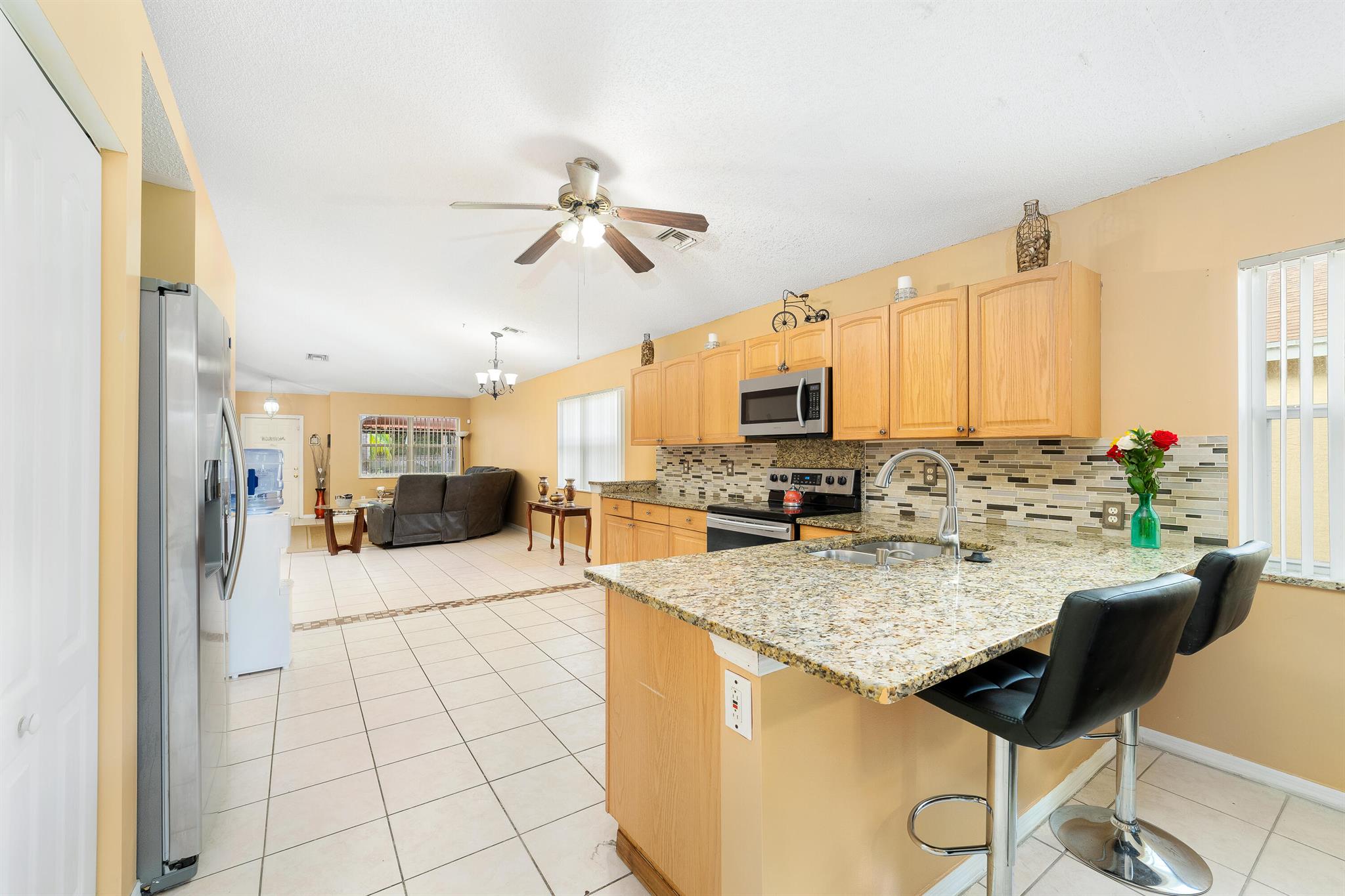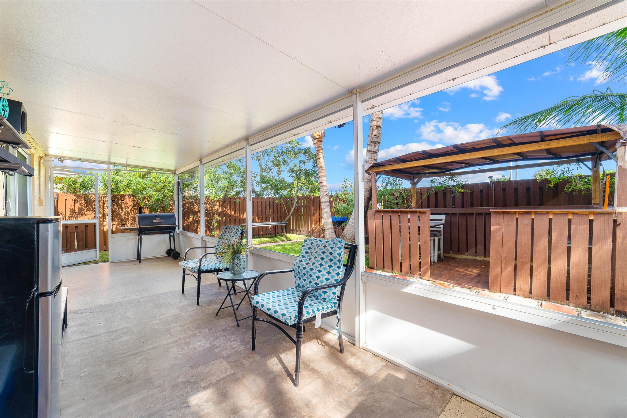 This beautiful 3 bedroom, 2 bathroom, one-story home with a 2-car garage rests on a private, fenced-in, 0.12 acre corner lot in a great, centralized location in a low HOA community! Vaulted ceilings make it feel airy and bright. The home showcases neutral color tile throughout. The kitchen is equipped with stainless steel appliances, granite countertops, light wood cabinets and a pantry. The primary bedroom features his and hers walk-in closets. The laundry room offers a full size washer and dryer. Step out and relax on the screened-in, covered patio. The backyard nests a new cozy gazebo that is great for relaxation or entertainment. There is also a storage shed that can be used for extra storage. The roof and water heater were replaced in 2020. White shelving in the primary closet do not
