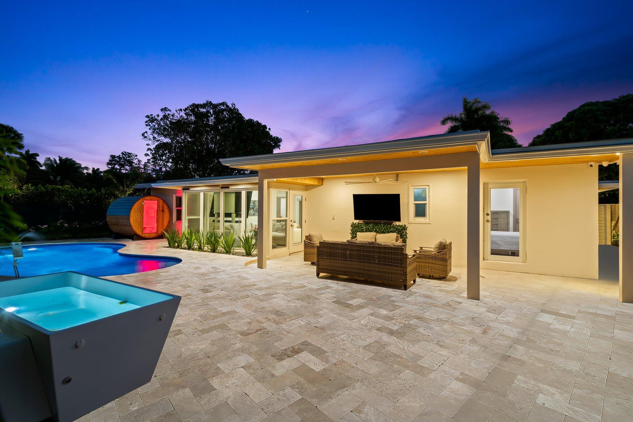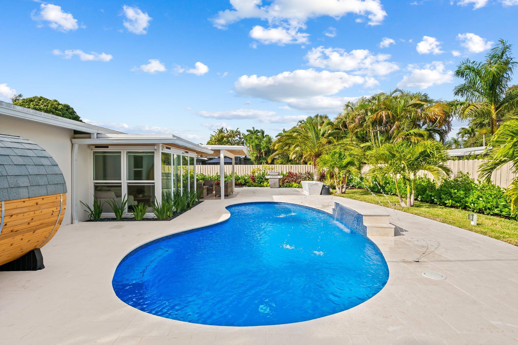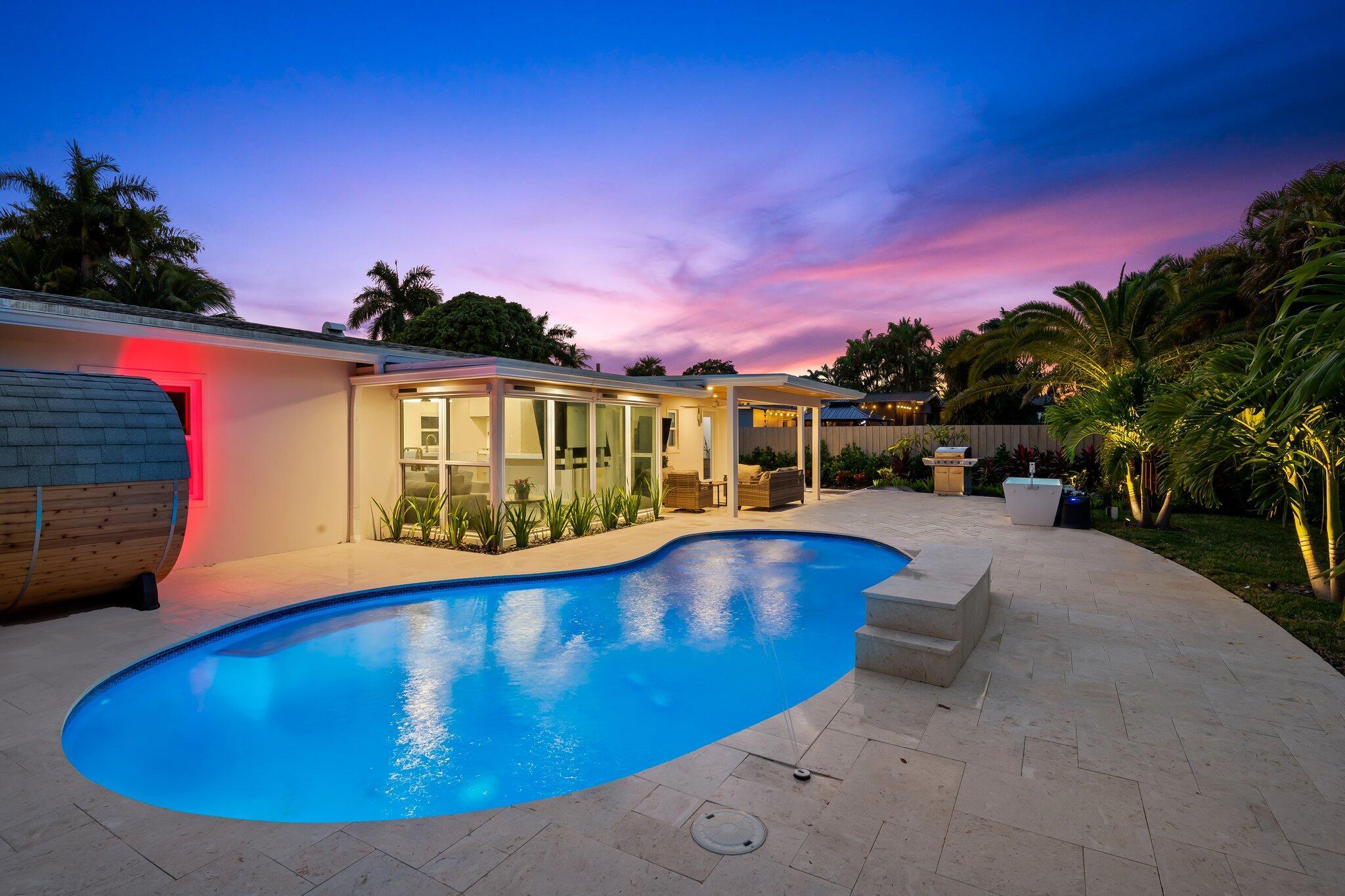 COMPLETELY RENOVATED single-family home on almost 9,000 SF corner lot is just 10 minutes from Las Olas, downtown Fort Lauderdale, airport & the beach. Enjoy sunshine year round in your Backyard OASIS -Pool with color lighting and fountains, COLD PLUNGE, BARREL SAUNA, and covered seating area. 2022 or newer Roof, HVAC, Plumbing, Impact Windows + More. Chefs Kitchen with gorgeous 3+ inch Pompeii quartz countertops, monogram appliances including gas stove. Plenty of room for your toys with attached shed, covered parking, electric charger and fenced in side yard for boats/trailers. Don't miss this rare opportunity to own a luxurious oasis with zen amenities in the heart of River Oaks WITHOUT the HOA or restrictions! **Back on Market - Previous buyer could not secure financing**