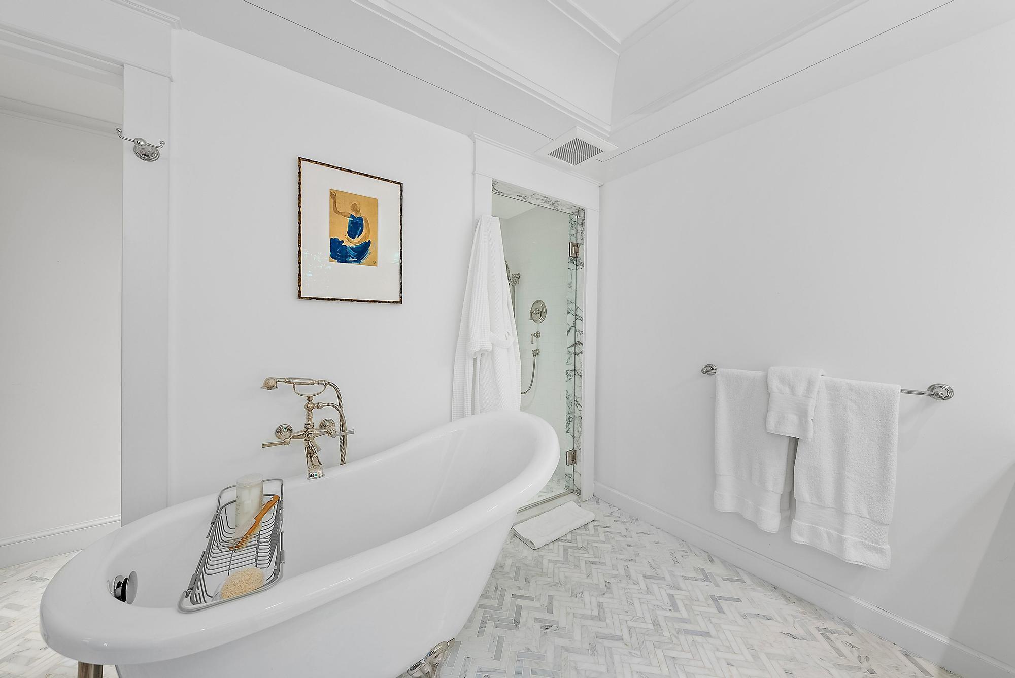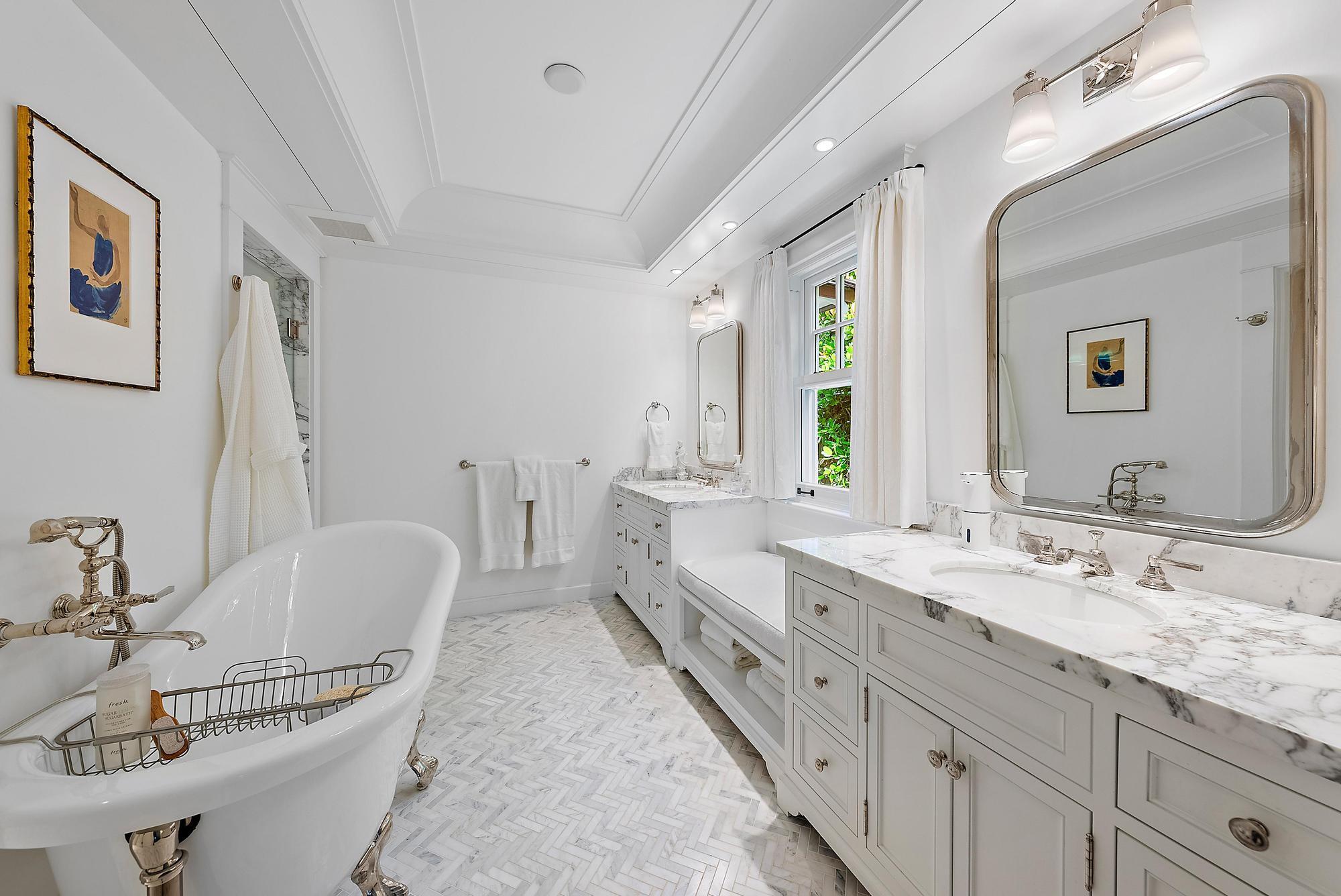Palm Beach, in-town, ocean block, high elevation, premium location on highly desired ''Sea Street.'' Meticulously renovated by Shapiro Pertnoy. Landscape design by award winning Mario Nievera. Iconic white fenced Charleston style architecture w/romantic first & second floor spacious outdoor porches. The first floor features a gracious living rm, intimate library, large loggia, bright kitchen, butler's pantry, laundry rm & elevator. Primary suite includes a dressing rm, luxurious en-suite bath, & a large private balcony. Guest BRs offer en-suite baths & walk-in closets. The third floor adds a perfect additional BR w/en-suite bath, office or ''fun zone.'' Private/keyed beach access. A true treasure w/ exceptional proximity to iconic Worth Ave shops, fine dining, The Breakers, Four Arts etc