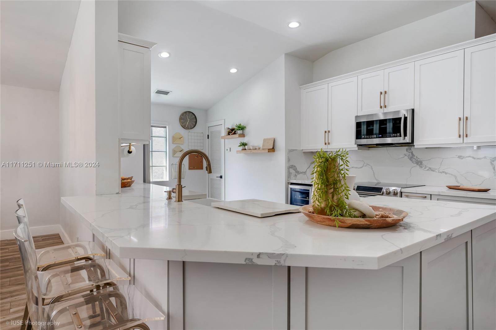 Welcome to this charming, tastefully remodeled 1-story home in the sought-after Bermuda Village subdivision of Silver Lakes in Pembroke Pines. Offering 3 spacious bedrooms and 2 bathrooms, this home provides the perfect blend of comfort and style. The vaulted ceilings and an open floor plan are ideal for both family living and entertaining. The designer kitchen is a chef’s dream, featuring beautiful wood cabinets, sleek quartz countertops, and stainless steel appliances. Stunning wood plank tiles throughout that add a touch of elegance. A large primary bedroom offers a walk-in closet and a spacious bathroom with dual sinks. Situated near top-rated schools, easy access to highways, restaurants, and shopping, this home offers the convenience and lifestyle you’ve been looking for.