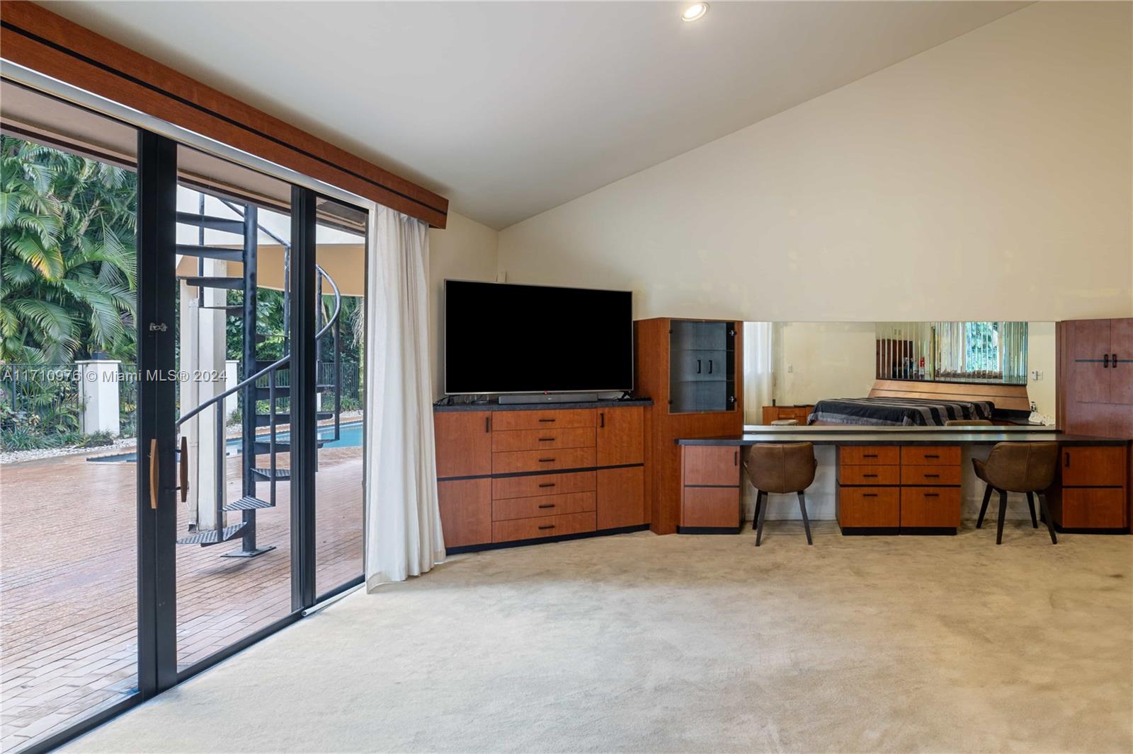 This exceptional residence, located in prestigious Jacaranda Country Club in Plantation, Florida, is truly one of a kind. Upon entering through the elevated entrance, you'll immediately sense a welcoming atmosphere. The expansive great room, featuring impressive 22-foot ceilings, includes five distinct areas designed for entertainment. A custom-built space is ready for your theater room, while a magnificent wood-burning fireplace creates a warm, relaxed environment. The wet bar, equipped with a refrigerator, ice maker, and ample seating around granite countertops, is perfect for hosting gatherings. The pool table and its equipment are also included. The open-concept layout flows effortlessly to the expansive outdoor patio, situated in a great golf course community, this home is a must-see!
