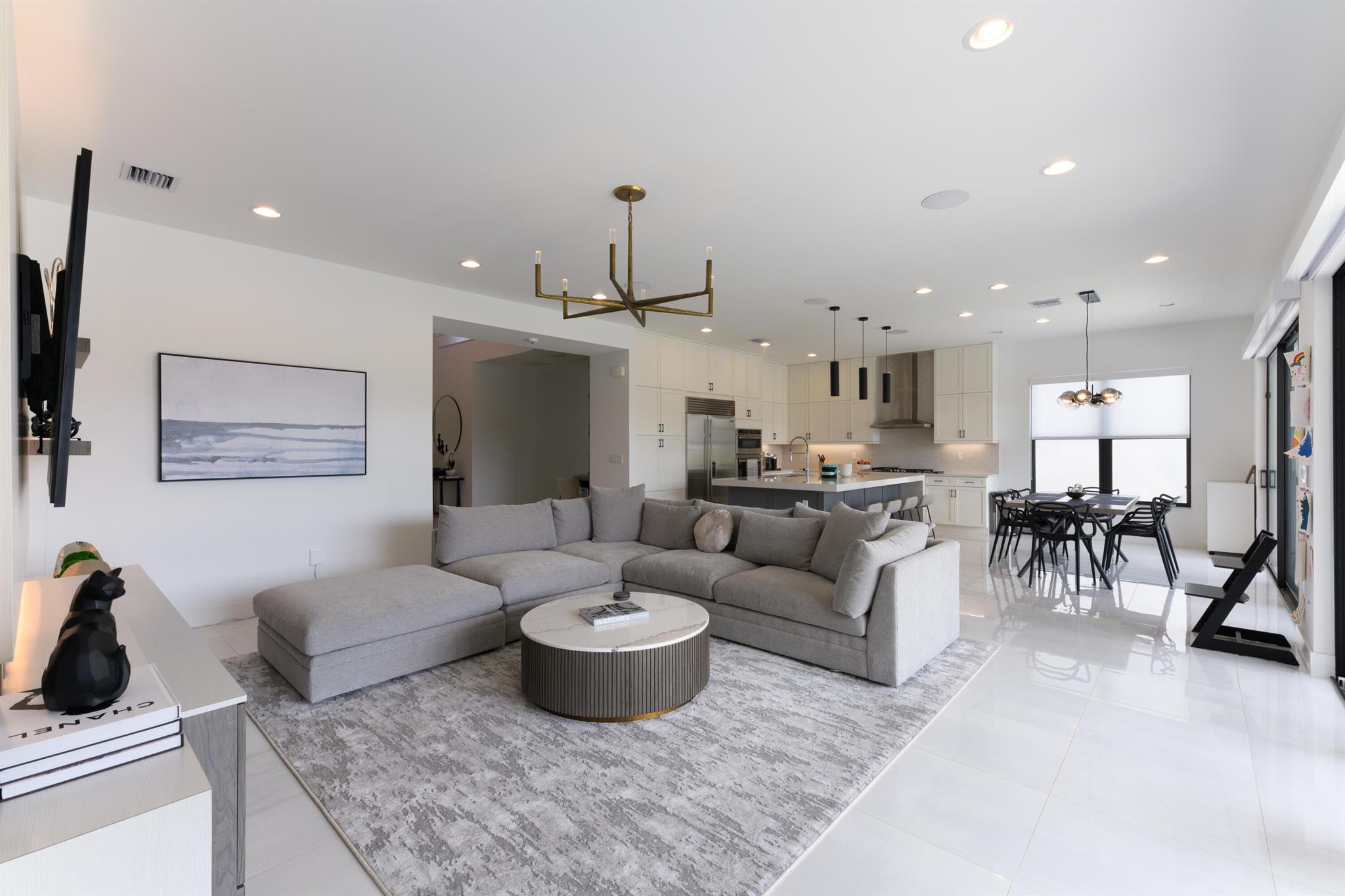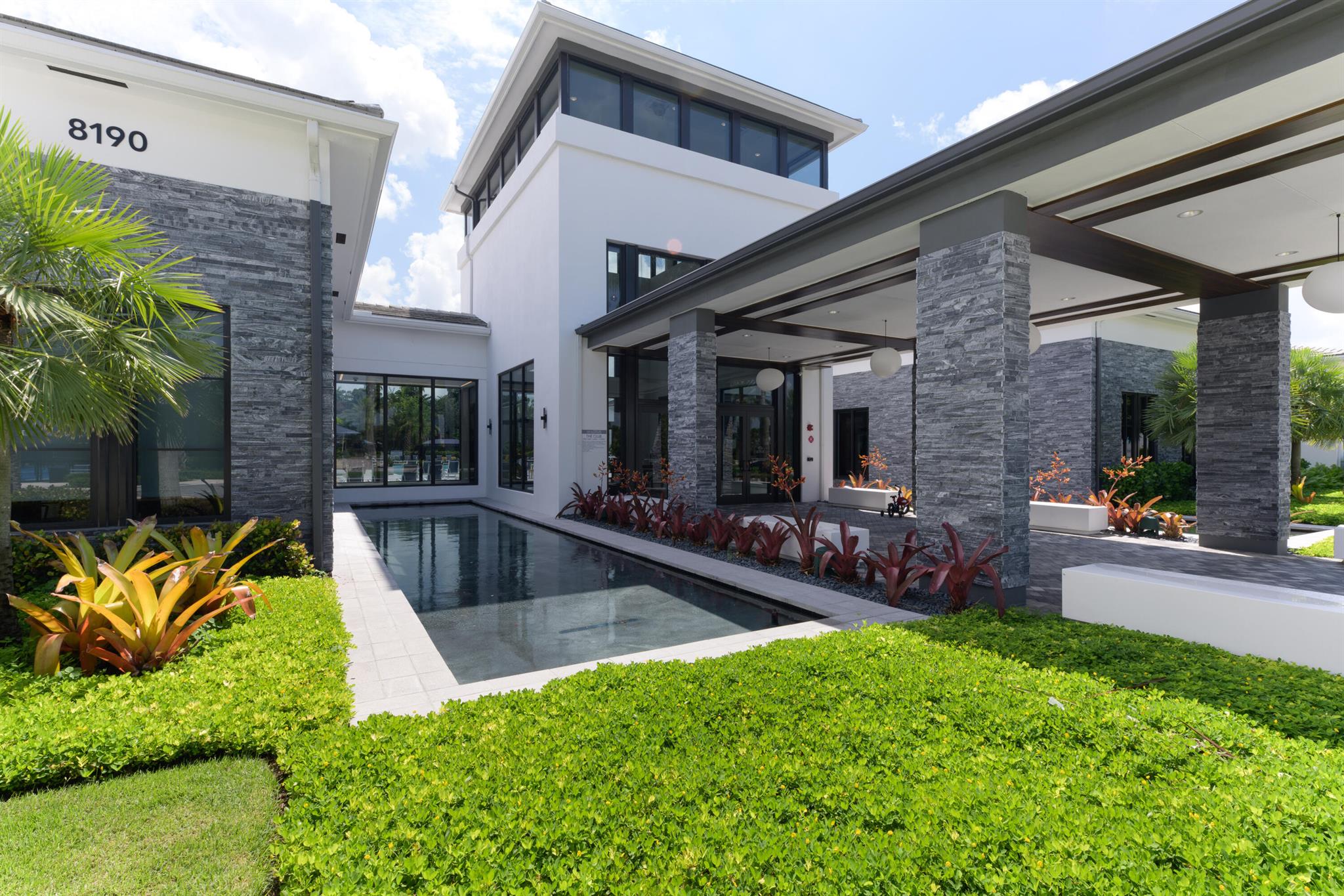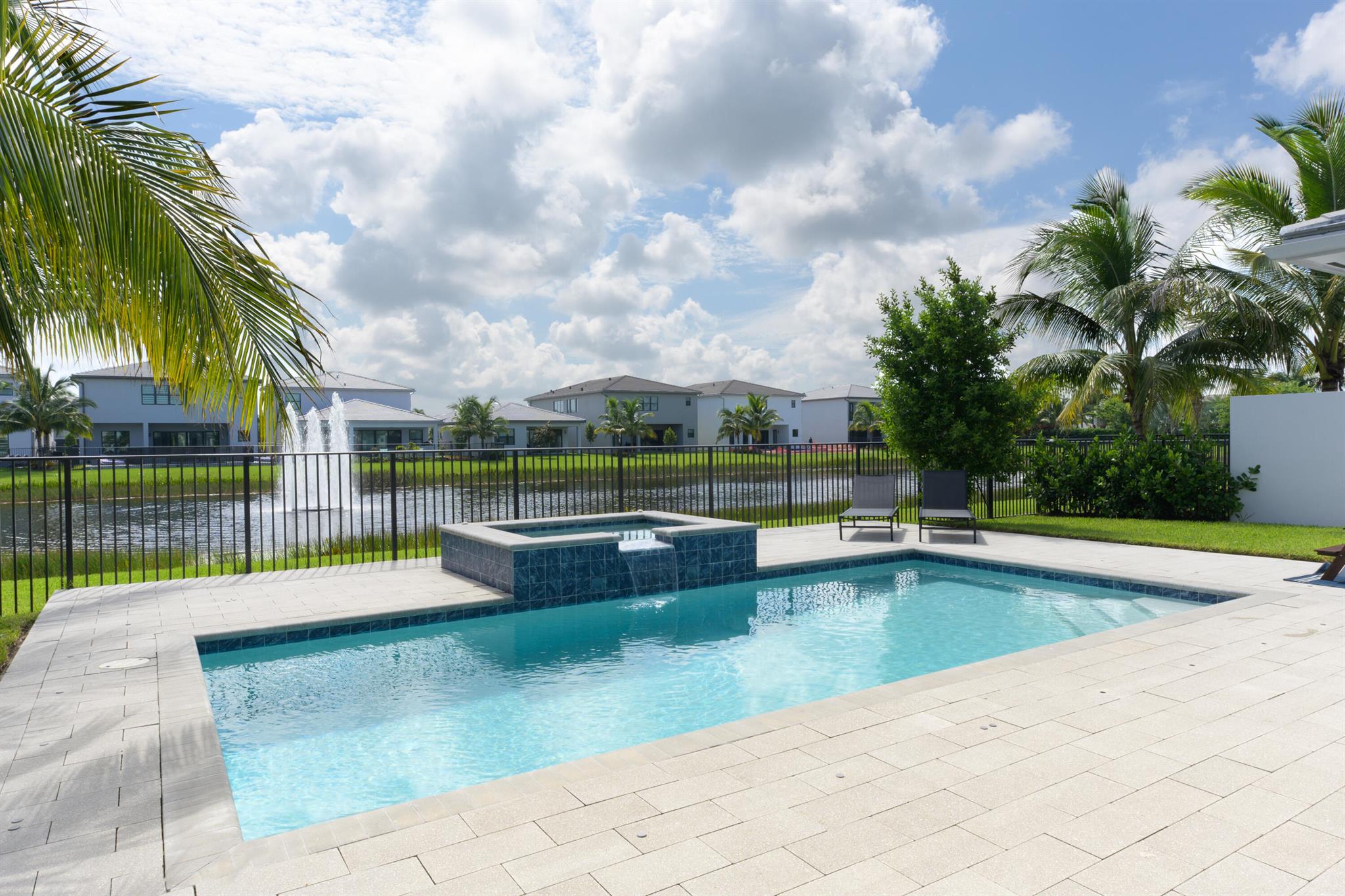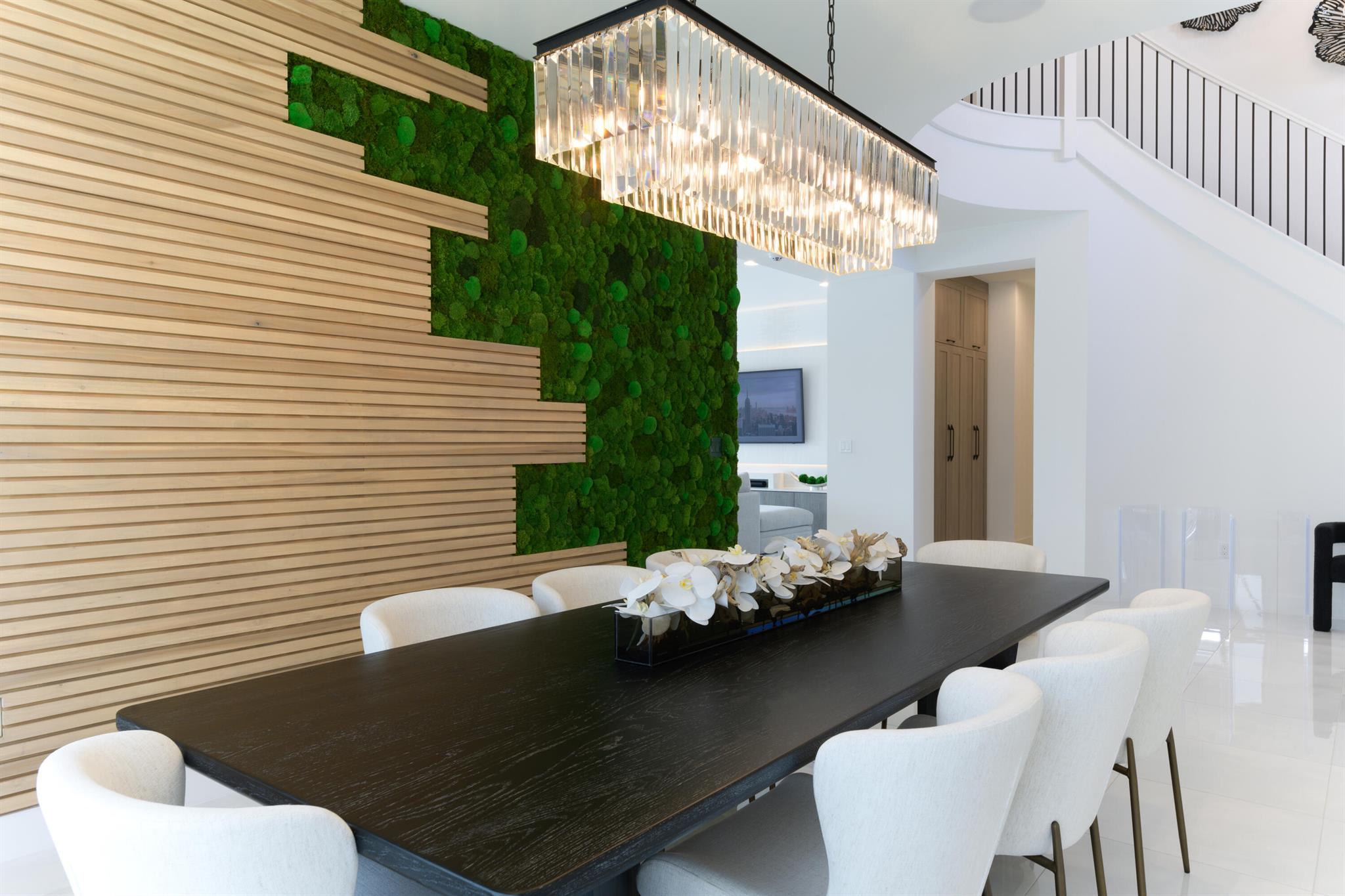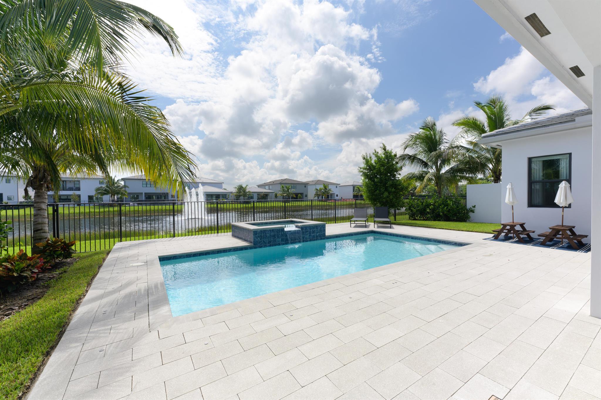 This stunning 5-bedroom, 5.1-bathroom home offers an impressive array of features, including a spacious clubroom, loft, media room, and a 3-car garage. Its contemporary design blends glamour with comfort, providing the perfect space for modern living. Enjoy breathtaking east-facing views of the pool, lake, and fountains, adding a serene touch to your daily life. The home is filled with upscale finishes, including exquisite built-ins and a striking ''living wall'' in the dining room. The chef's kitchen boasts a top-of-the-line 48'' Sub-Zero refrigerator and premium countertops. Hunter Douglas electric shades provide privacy and light control in the great room, primary suite, and media room.
