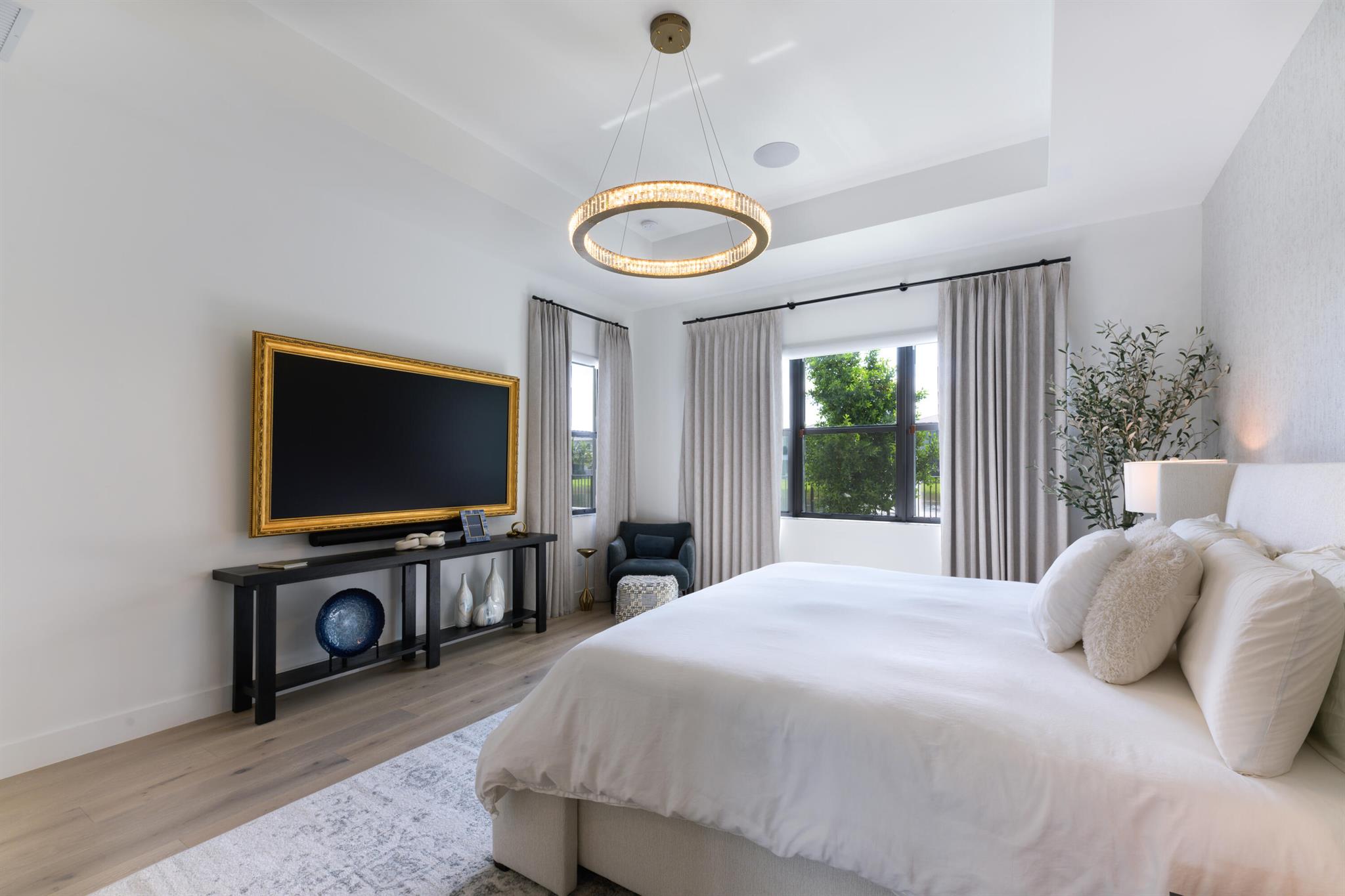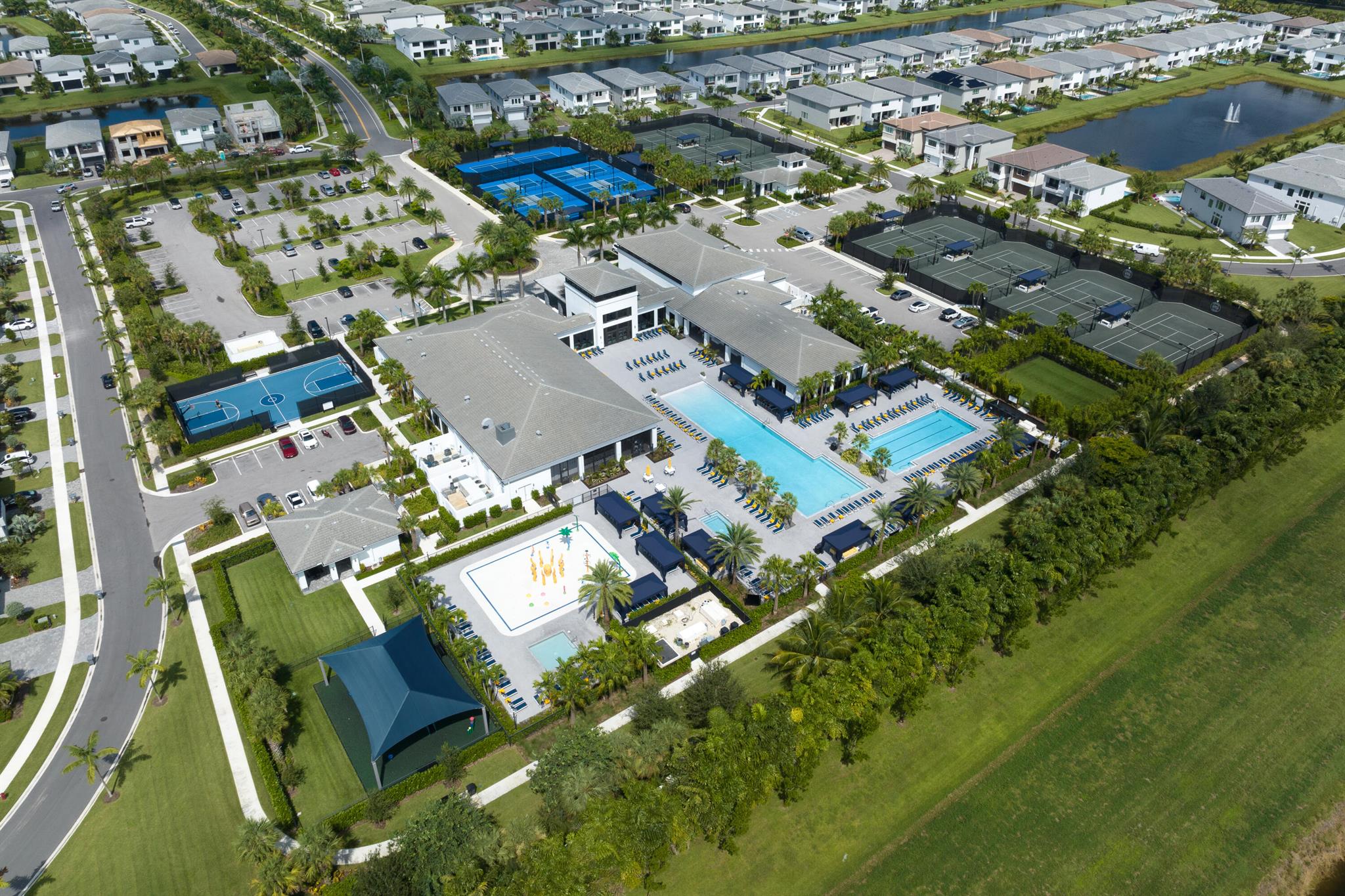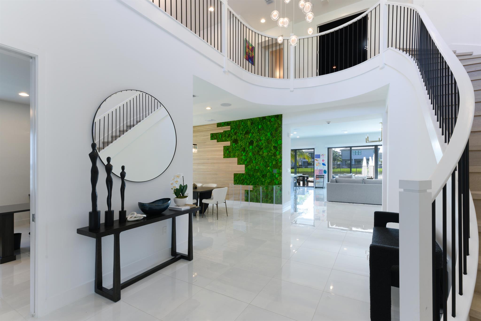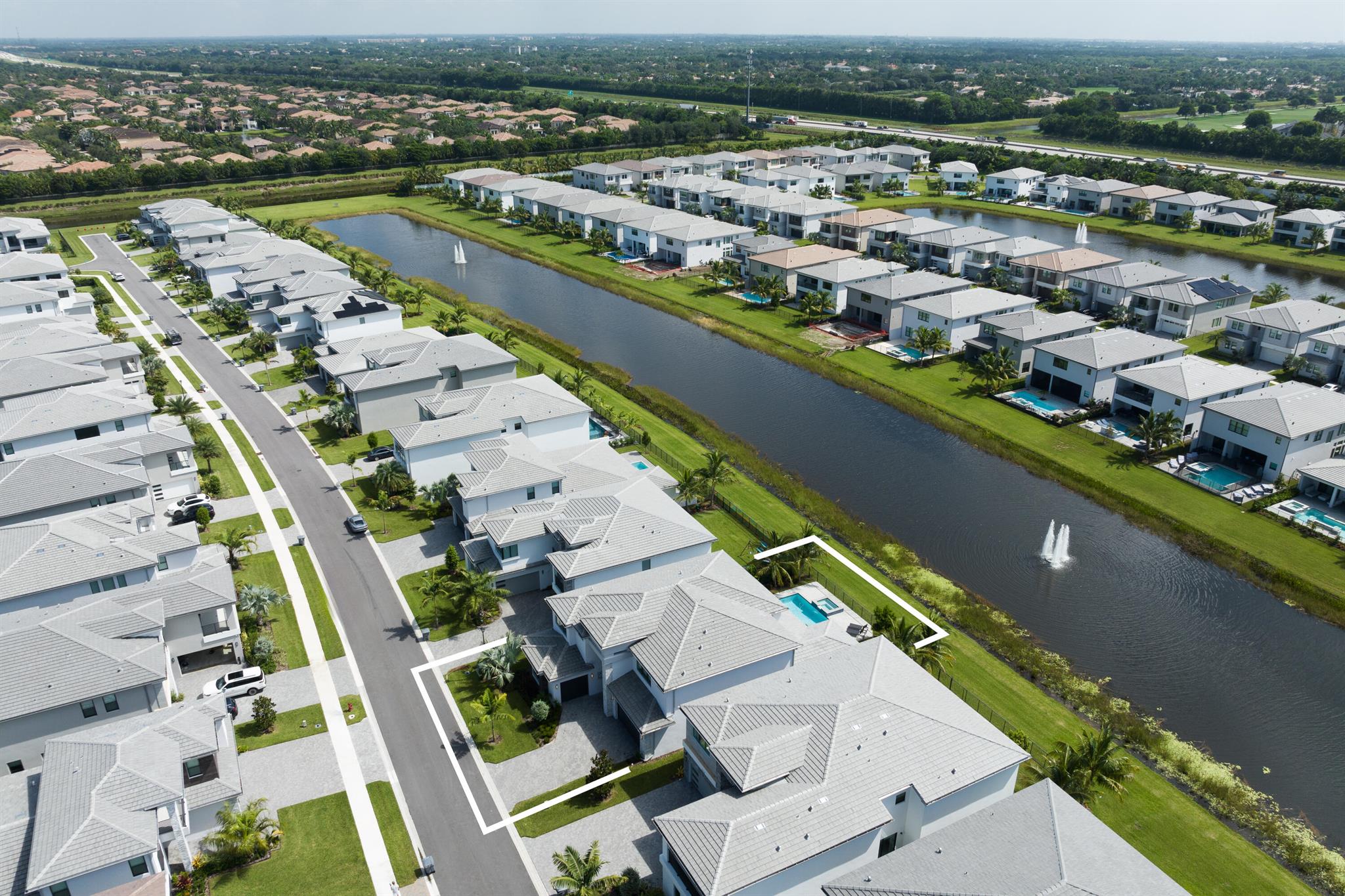 This stunning 5-bedroom, 5.1-bathroom home offers an impressive array of features, including a spacious clubroom, loft, media room, and a 3-car garage. Its contemporary design blends glamour with comfort, providing the perfect space for modern living. Enjoy breathtaking east-facing views of the pool, lake, and fountains, adding a serene touch to your daily life. The home is filled with upscale finishes, including exquisite built-ins and a striking ''living wall'' in the dining room. The chef's kitchen boasts a top-of-the-line 48'' Sub-Zero refrigerator and premium countertops. Hunter Douglas electric shades provide privacy and light control in the great room, primary suite, and media room.