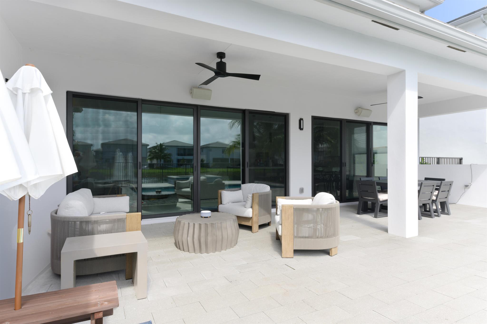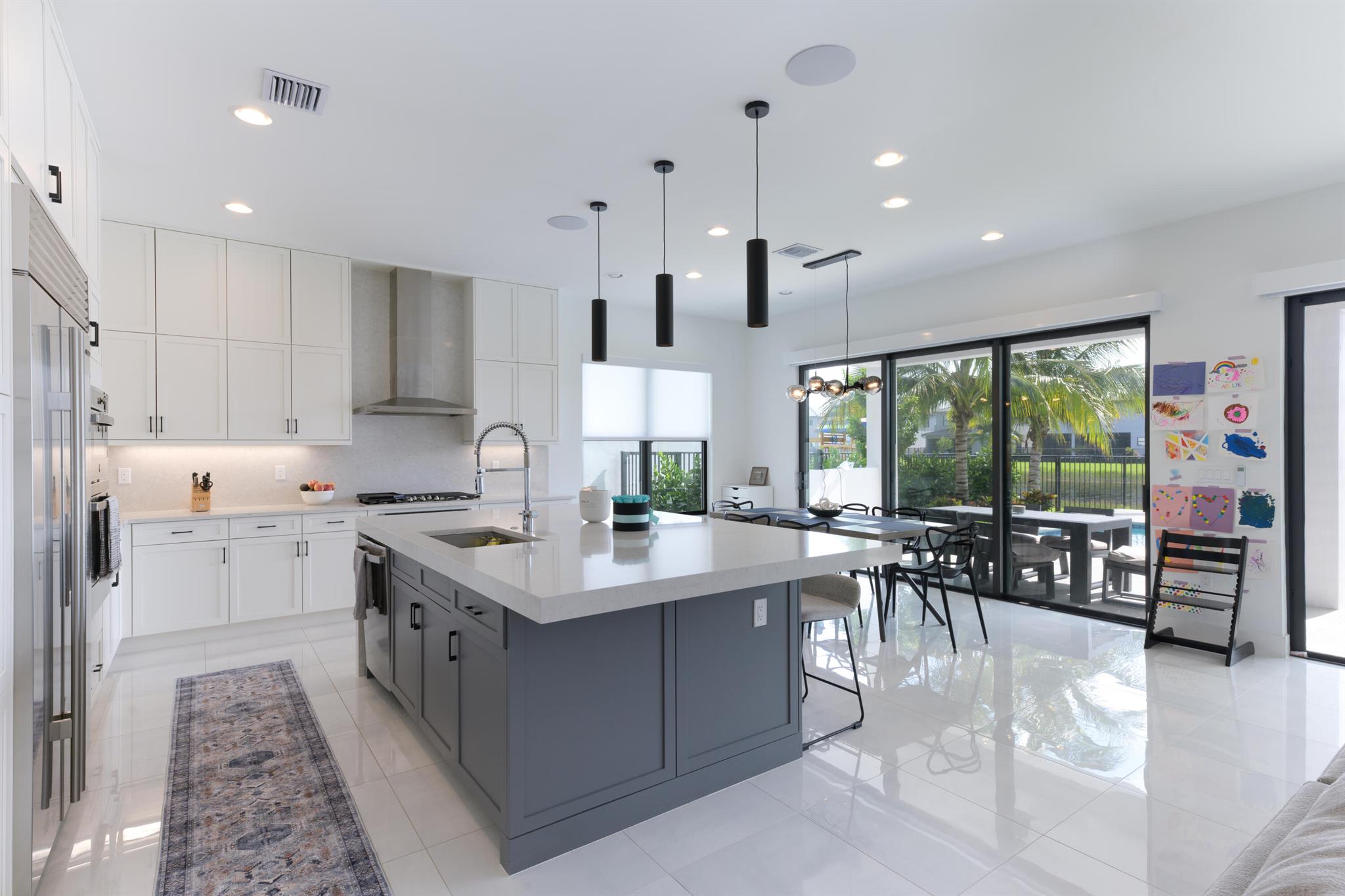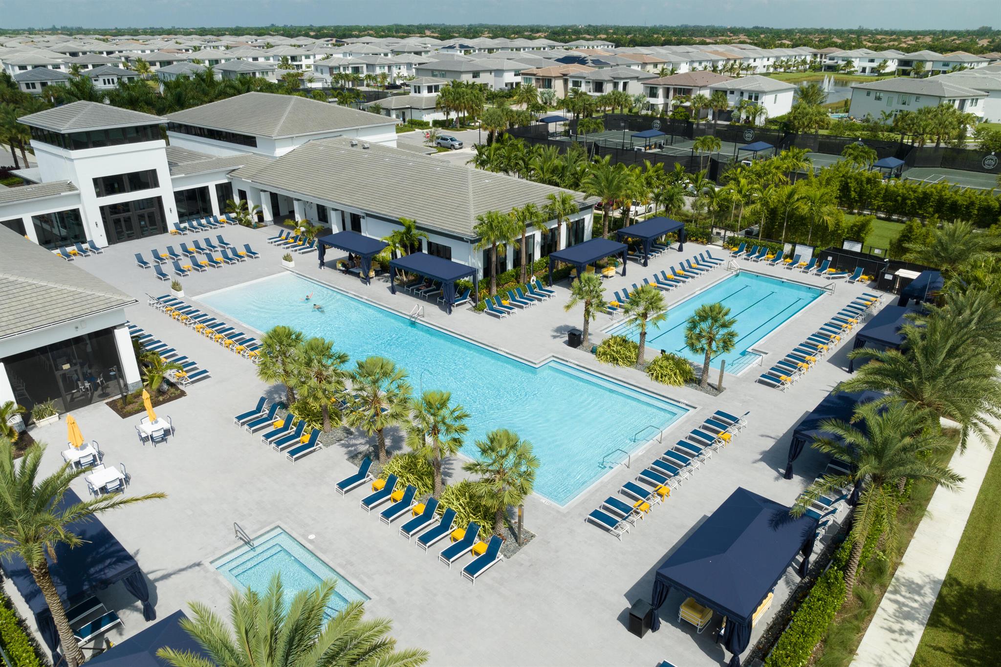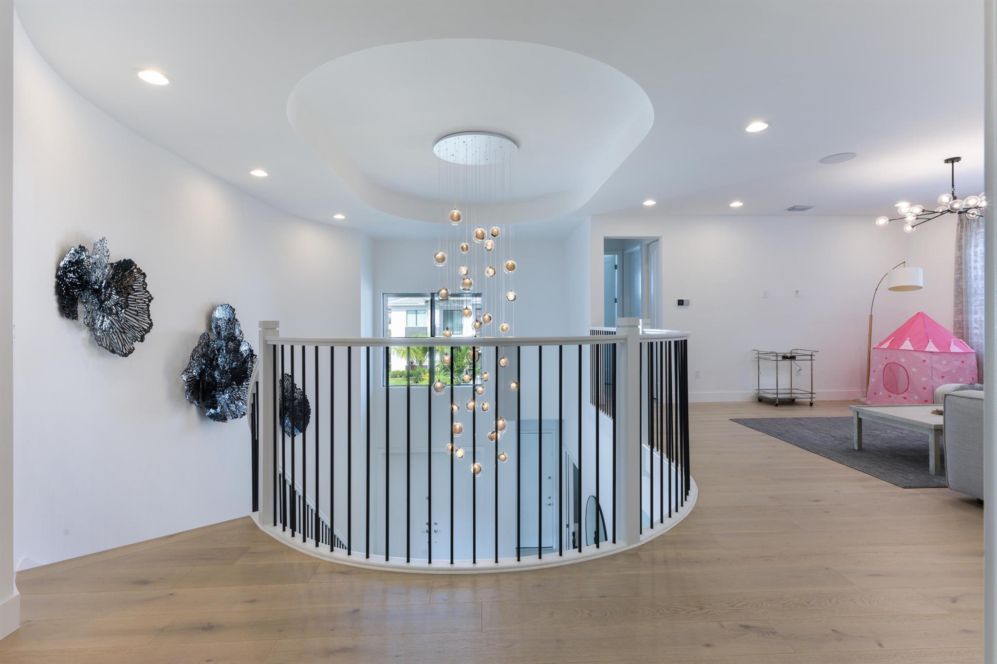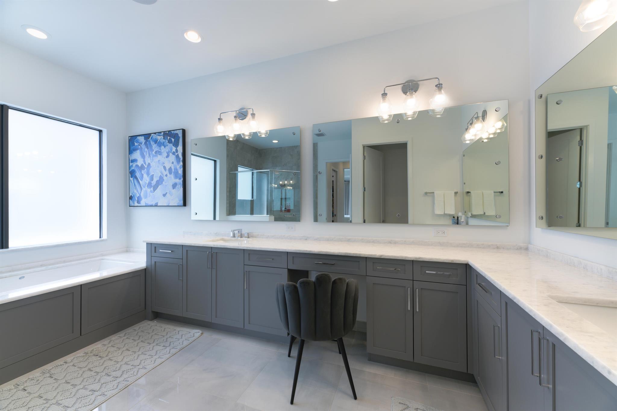 This stunning 5-bedroom, 5.1-bathroom home offers an impressive array of features, including a spacious clubroom, loft, media room, and a 3-car garage. Its contemporary design blends glamour with comfort, providing the perfect space for modern living. Enjoy breathtaking east-facing views of the pool, lake, and fountains, adding a serene touch to your daily life. The home is filled with upscale finishes, including exquisite built-ins and a striking ''living wall'' in the dining room. The chef's kitchen boasts a top-of-the-line 48'' Sub-Zero refrigerator and premium countertops. Hunter Douglas electric shades provide privacy and light control in the great room, primary suite, and media room.