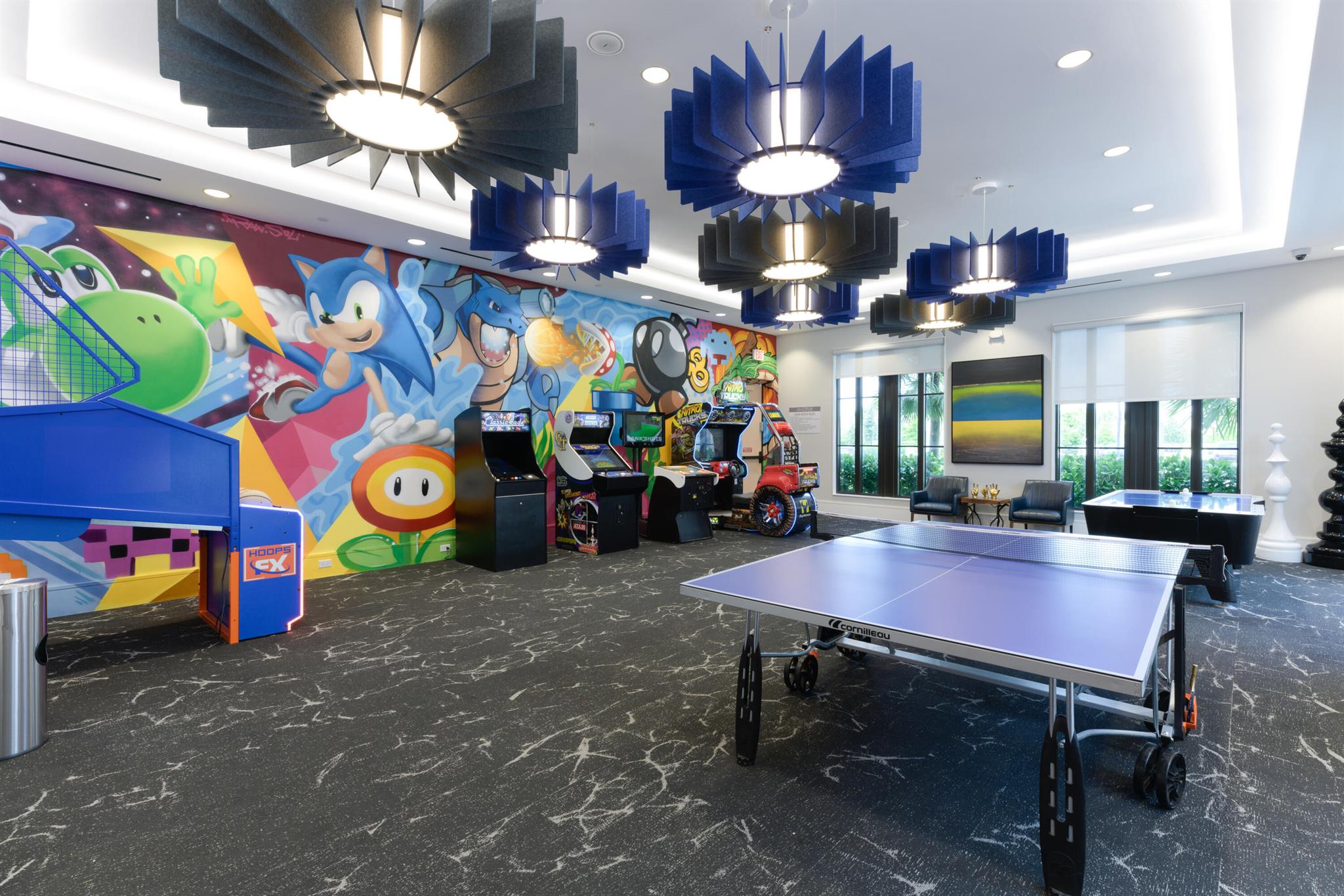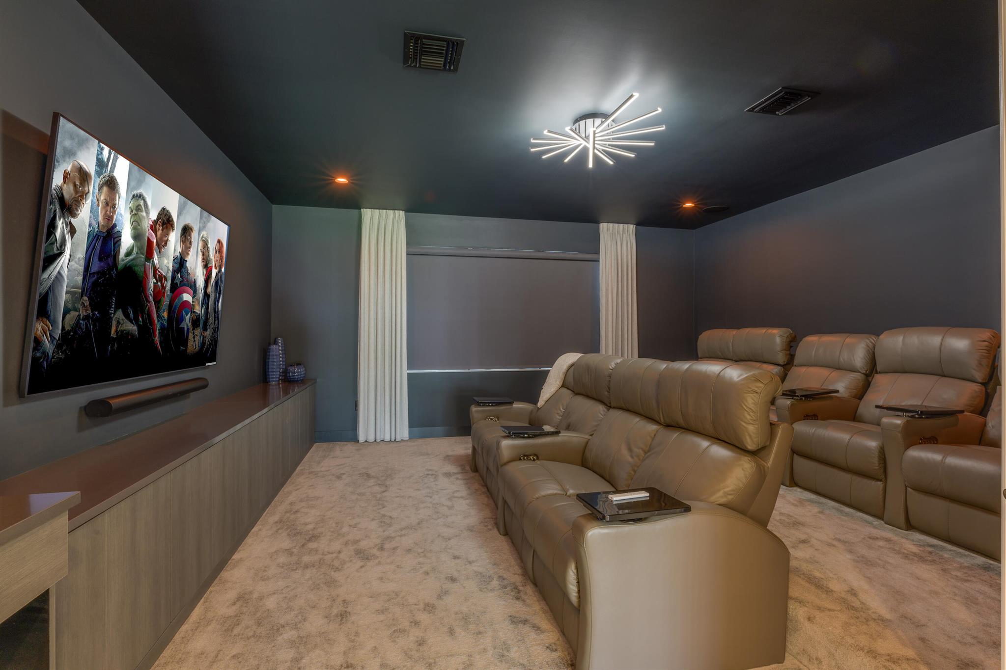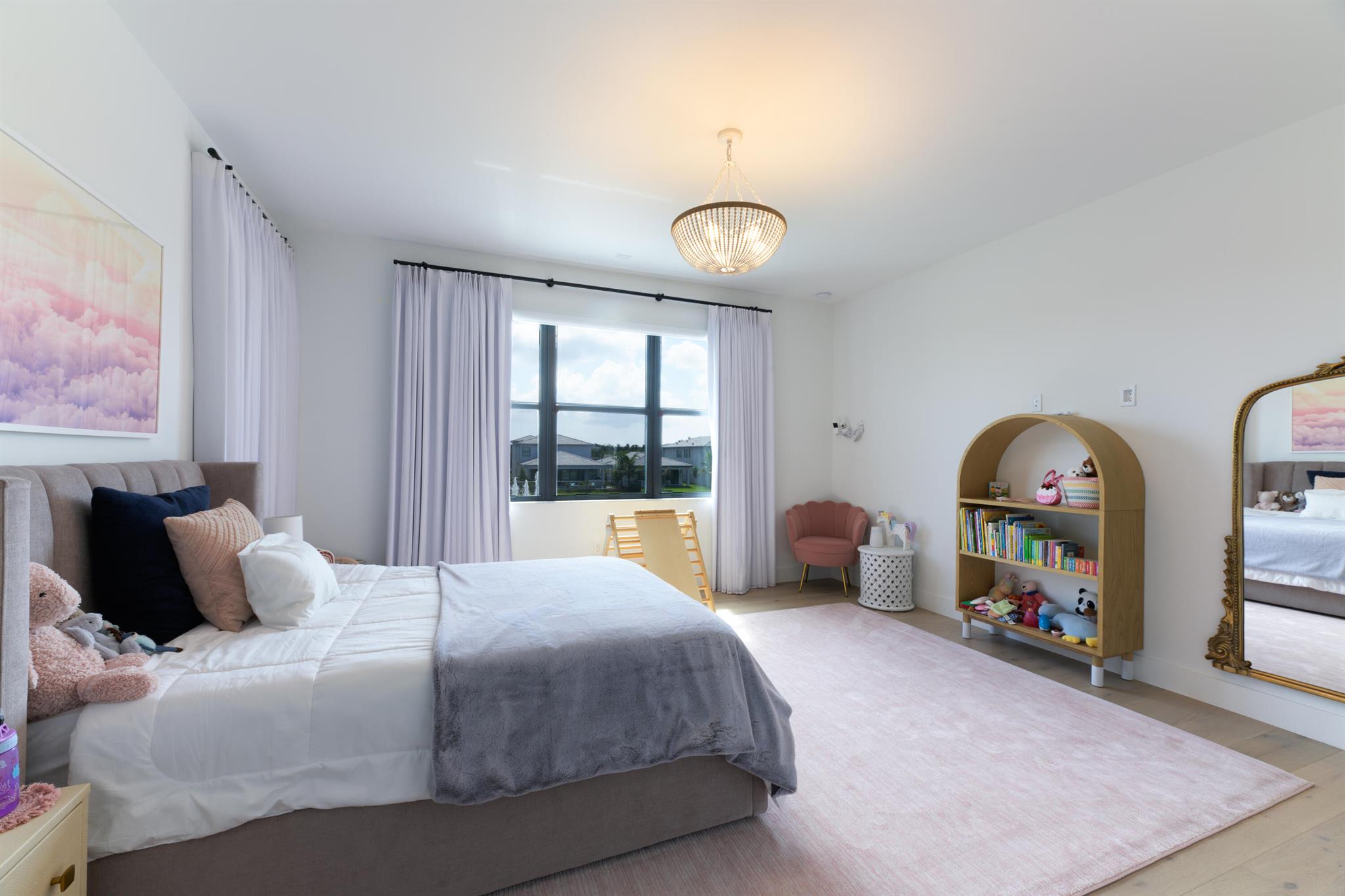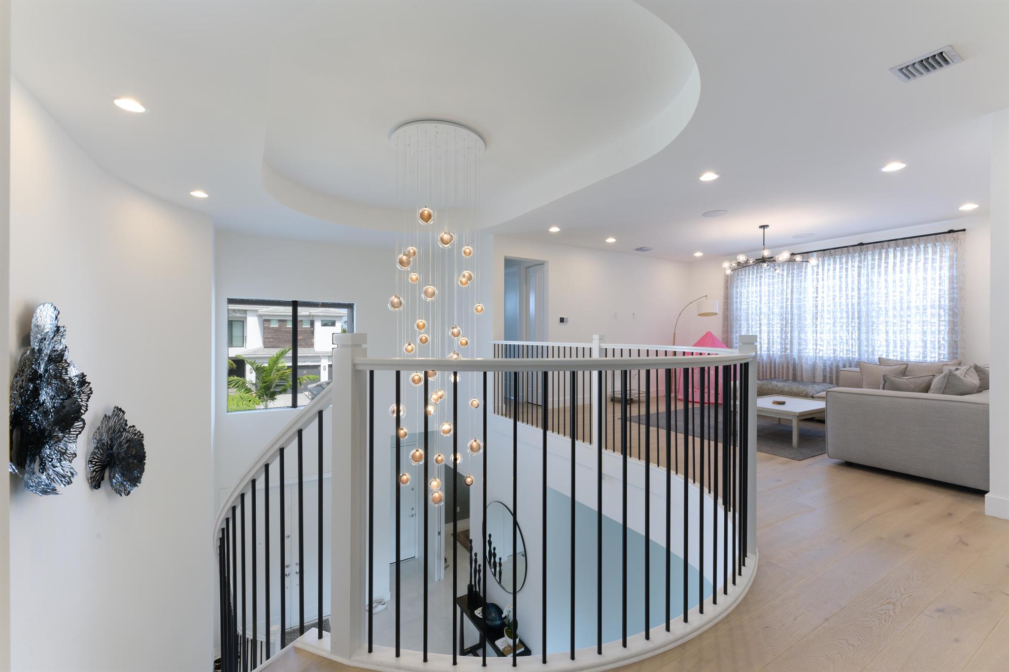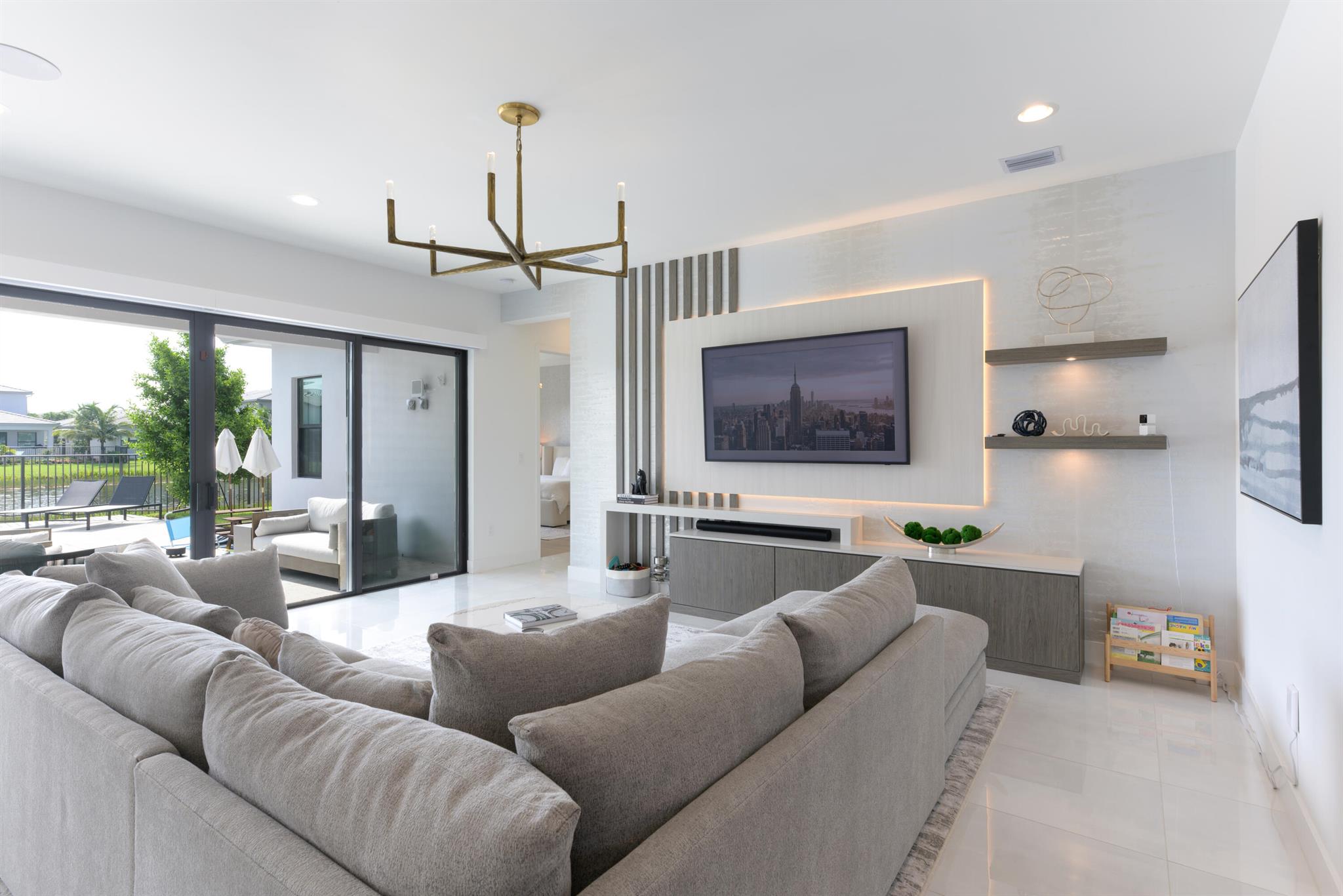 This stunning 5-bedroom, 5.1-bathroom home offers an impressive array of features, including a spacious clubroom, loft, media room, and a 3-car garage. Its contemporary design blends glamour with comfort, providing the perfect space for modern living. Enjoy breathtaking east-facing views of the pool, lake, and fountains, adding a serene touch to your daily life. The home is filled with upscale finishes, including exquisite built-ins and a striking ''living wall'' in the dining room. The chef's kitchen boasts a top-of-the-line 48'' Sub-Zero refrigerator and premium countertops. Hunter Douglas electric shades provide privacy and light control in the great room, primary suite, and media room.