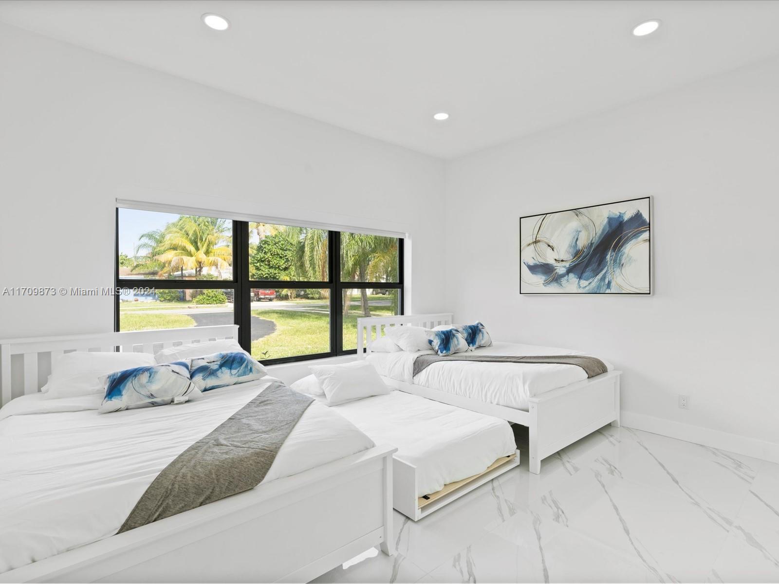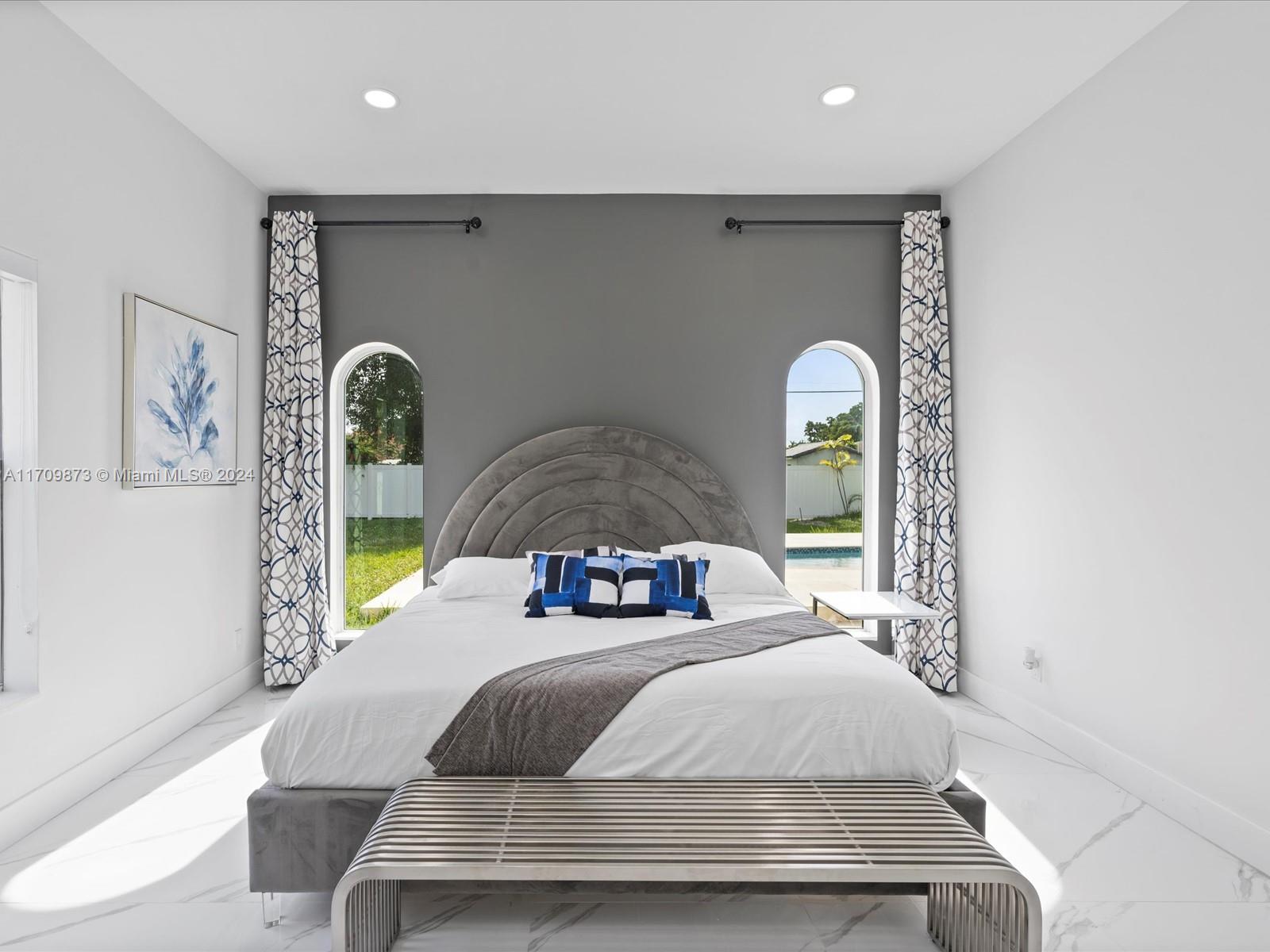 Experience luxury in this fully remodeled 4BR/3BA home, 2757 sqft, on a 20,060 sqft double lot. Features include a custom kitchen with Monogram appliances, Calcutta porcelain Italian floors, LED lighting, and custom arch impact windows in the master bedroom. Enjoy 14' high ceilings, a heated self-chlorinated pool, jacuzzi, covered patio, wood-burning fireplace, tankless water heater, laundry room, and impact windows throughout. Conveniently located near i95, Turnpike, and Hollywood Young Circle. This property offers top-of-the-line amenities, ideal for discerning buyers seeking elegance and comfort.