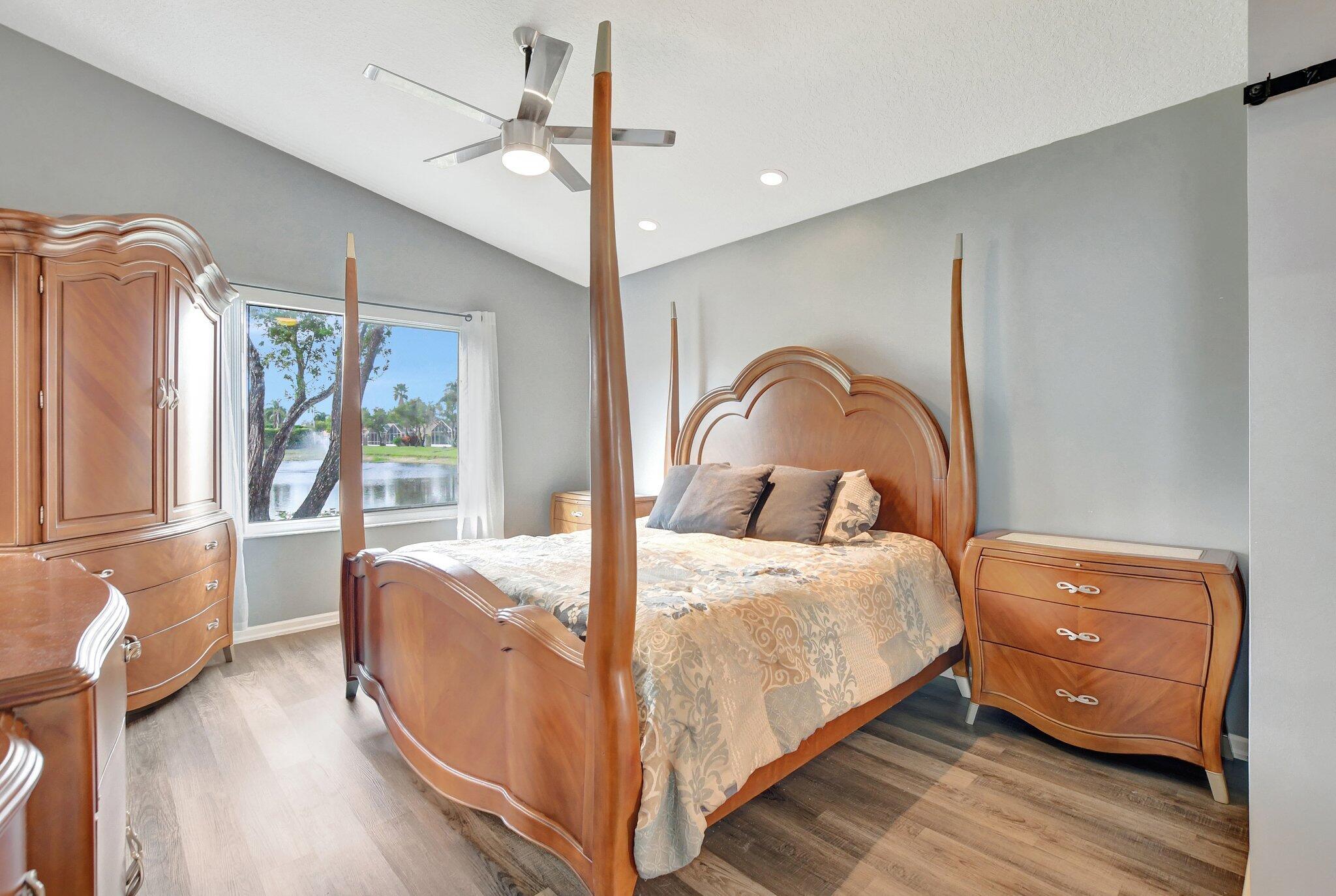 Seller Reduced $75000 for quick sale. LOW HOA FEES! PRICED TO SELL! Beautiful Lakefront home offers Partial Hurricane Impact Windows & Re-roof 2009. Solar Panels for heating, AC, ot water heater, appliances & Lights-low electric bills! Chef's kitchen offers all the bells & whistles including, Stainless Steel LG appliances, Bosch dishwasher, built-in pantry, filtered water, pull-outs, Granite countertops w/full backsplash. 2021 hot water heater. The back patio is an enclosed lanai w/sun-shades & tiled floor overlooking long lake views! Large primary bedroom offers updated flooring & fan plus vaulted ceilings & recessed lighting. New doors on two walk in closets. Primary bathroom offers an updated walk in shower, new flooring, large soaking tub & upgraded lighting. Two Car Attached Garage
