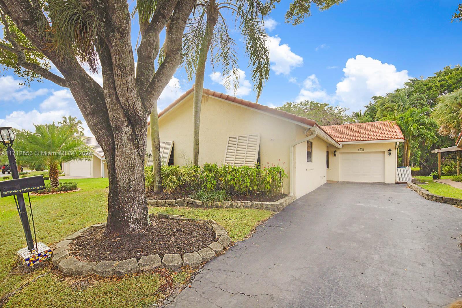 Located in the highly sought after community of Ramblewood Villas. Surrounded by lush landscaping. Located on a spacious waterfront lot. Park on your extended driveway & enter through the front doors & you are immediately greeted by the vaulted ceiling & natural lighting with views out to your screened patio & water view! 3 bedrooms 2 bathrooms and 1 car garage. Upgraded kitchen w/ granite countertops. Primary Bedroom features large walk-in closet and upgraded en-suite bathroom w/ walk in shower and dual vanities. Spacious bedrooms. Over 1,665 total square feet. Full size washer & dryer in the garage. New roof (2022) Hurricane Shutters. Community Pool. All ages community. HOA only $160 a month. Great location & surrounded by parks, shopping, dining and all that Coral Springs has to enjoy!