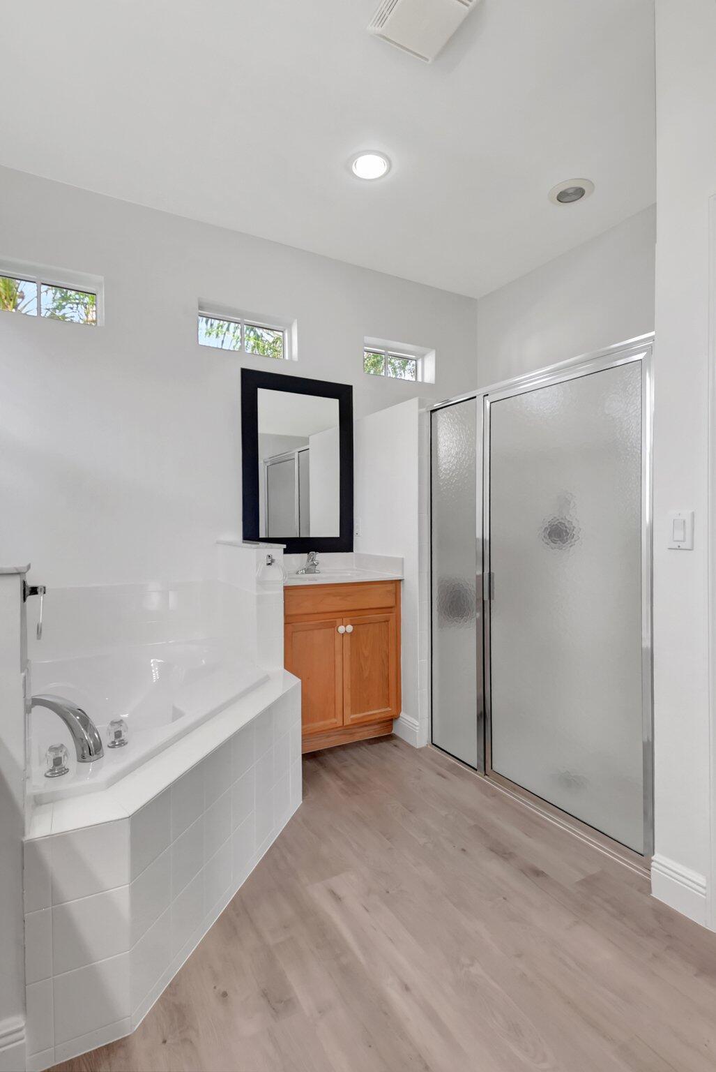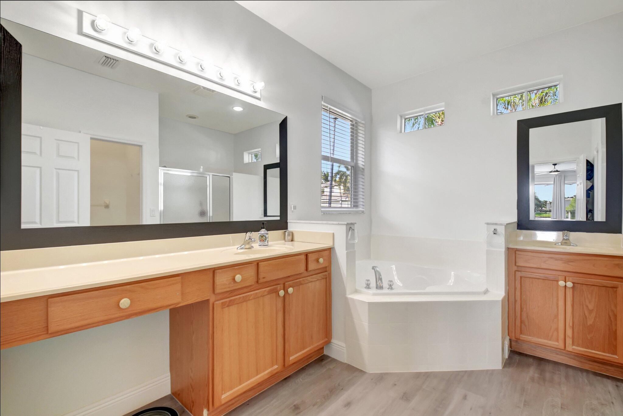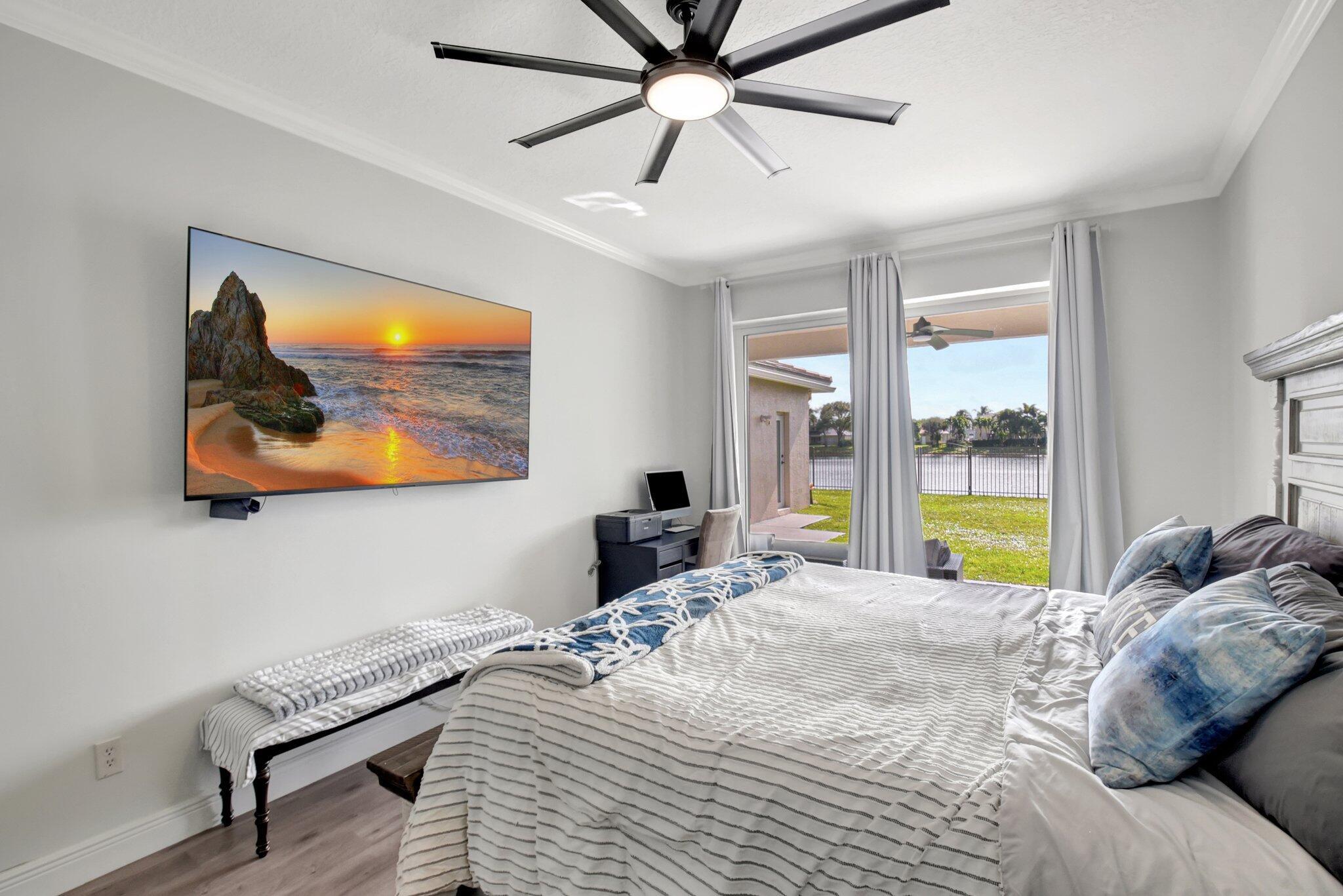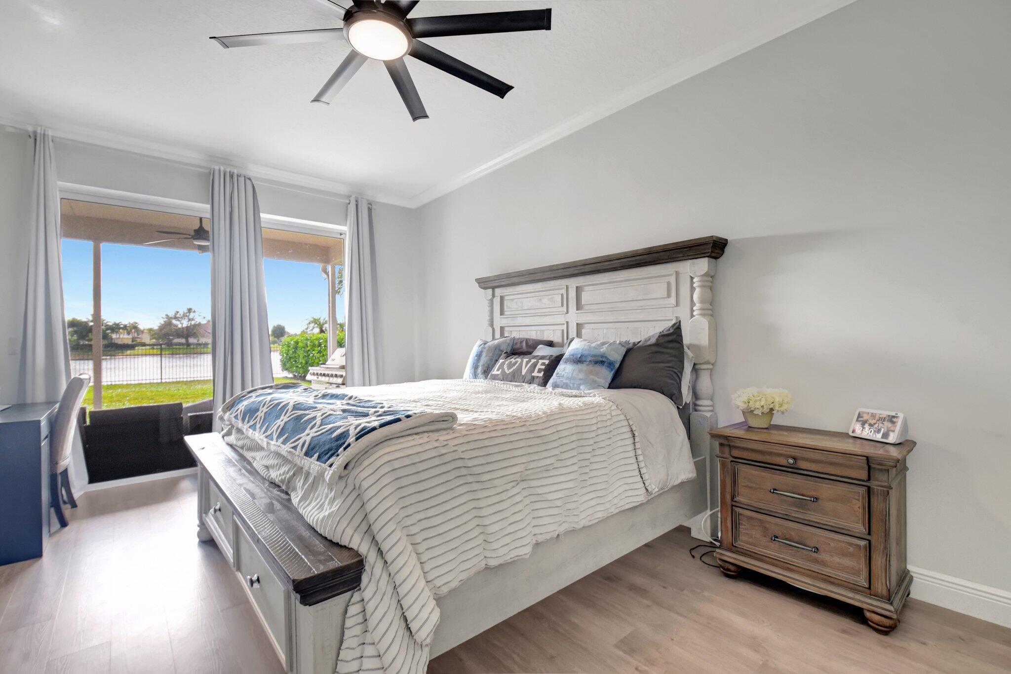 Single story 4/3 with stunning wide lake views! Roof and AC new in 2021, brand new hurricane impact windows and doors, new closet systems, new flooring throughout the entire house, new baseboards, new paint, new washer and dryer, new hot water heater, new designer molding throughout, whole house water softener and central vacuum. From the moment you walk through the front door, you will appreciate this open floor plan w/ 3 way split bedrooms. Light & bright with lake views from most windows & sliders. The kitchen is updated with quartz counter tops, newer appliances and a pantry with custom built-ins. Stonehaven boasts a beautiful pool, fitness center, clubhouse, tennis and pickleball courts (on the way!) Convenient to restaurants, shops, tennis center PBI is just a short drive away