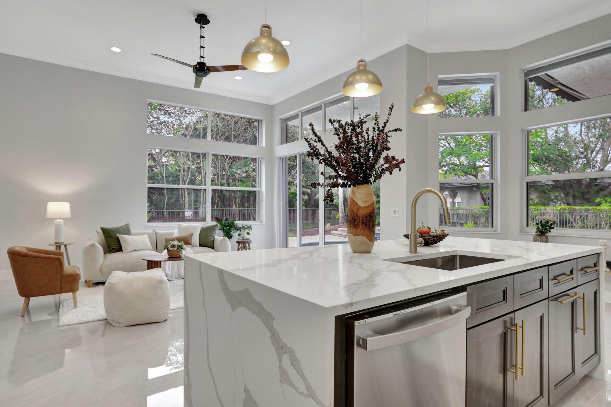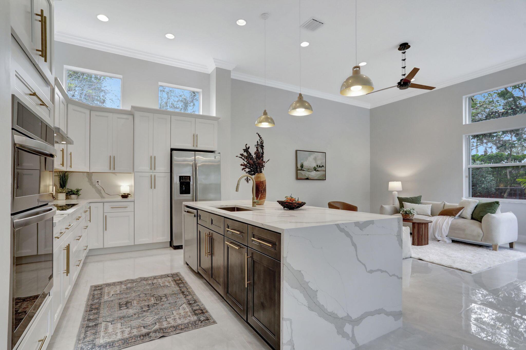 Fully renovated 5 BE,3 BA Pool Home, with a 3-Car Garage. This home is located in a prestigious gated community, situated on an oversized cul-de-sac lot, offering one of the best lot sizes in all of Fox Ridge! Step into a world of elegance with this breathtaking residence that boasts 14-foot ceilings, creating an expansive & airy ambiance throughout. The kitchen features Calacatta quartz countertops & brand-new SS appliances, including a double oven air fryer/microwave combo. Large format porcelain tile floors throughout & fully renovated bathrooms. Each bedroom has built-in closets. Freshly painted inside and out.AC units 2023 & 2019. New water heater. Diamond-bright pool 2023 w/solar pool heater. Accordion shutters throughout, professionally designed landscaping.A-rated schools. Low HOA