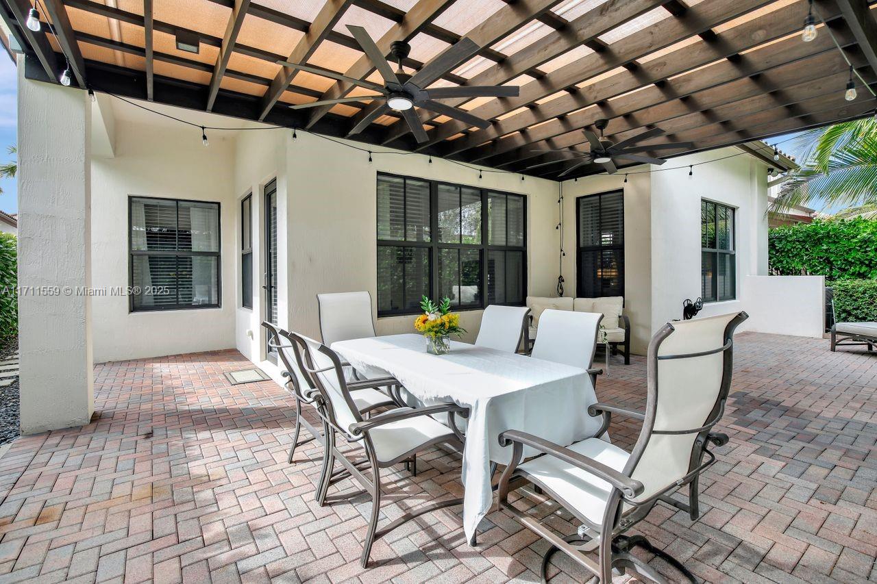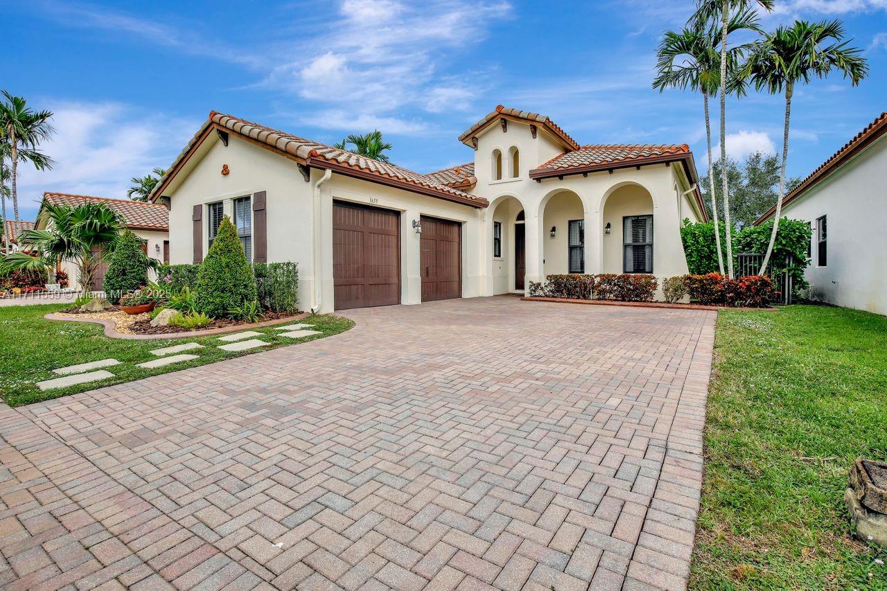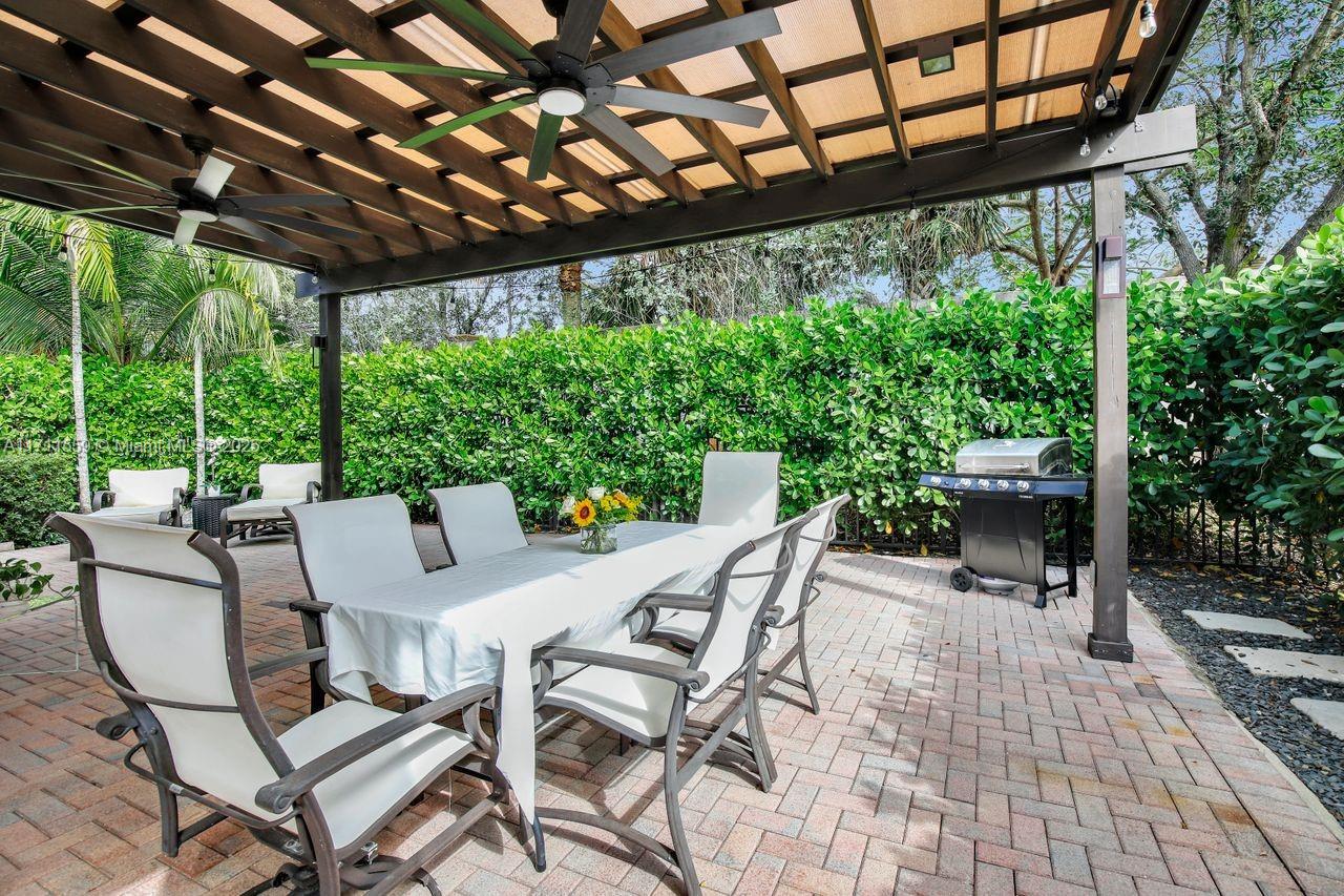 Welcome to Monterra, Cooper City's most sought after gated community. This resort-style neighborhood offers top-tier security, a clubhouse with state-of-the-art fitness center, pool, waterpark, tennis, basketball courts, walking trains & 3 playgrounds. Four-bedroom, three-bathroom home that blends elegance with comfort. The kitchen features 42” wood cabinetry, upgraded stainless steel appliances, complemented by an expansive pantry & a sunlit breakfast nook. Impact windows throughout. Soaring 12+ ft ceilings. Home warranty available. Custom closets throughout. New A/C (2 Years) The newly added pergola and private fully-fenced backyard are perfect for outdoor entertaining or enjoying peaceful evenings at home, surrounded by lush trees. A+ Rated schools, minutes from airport.
