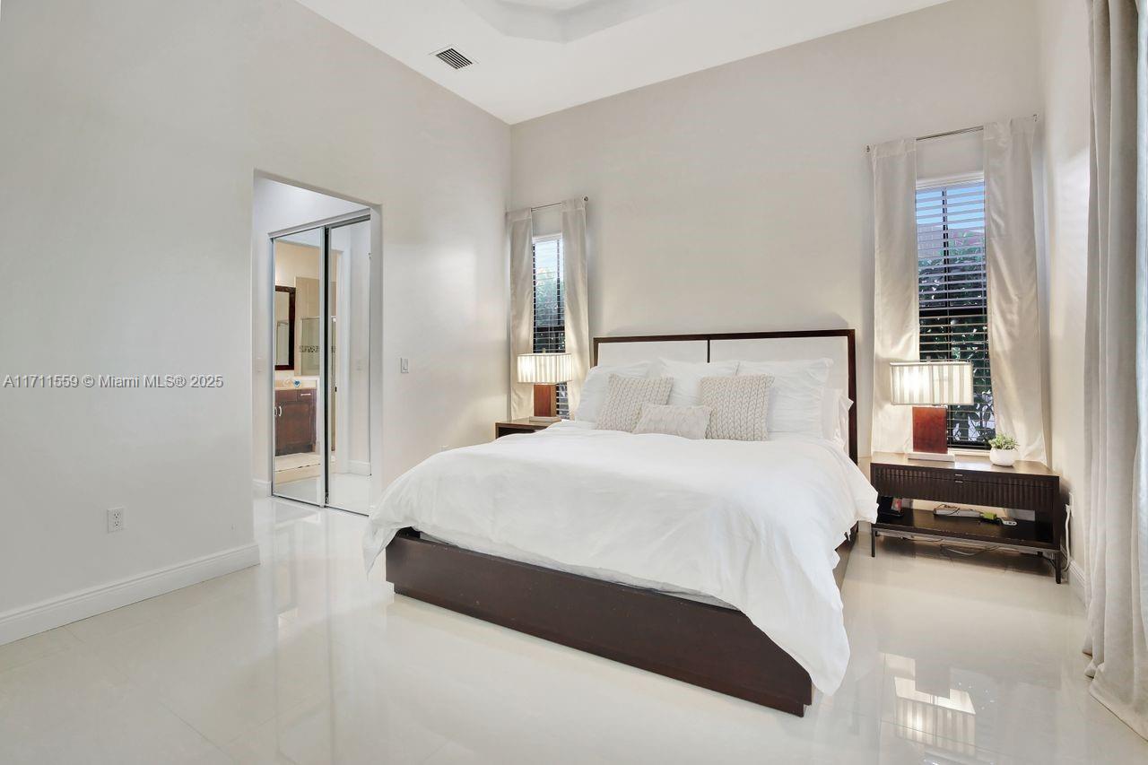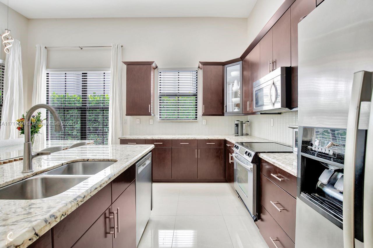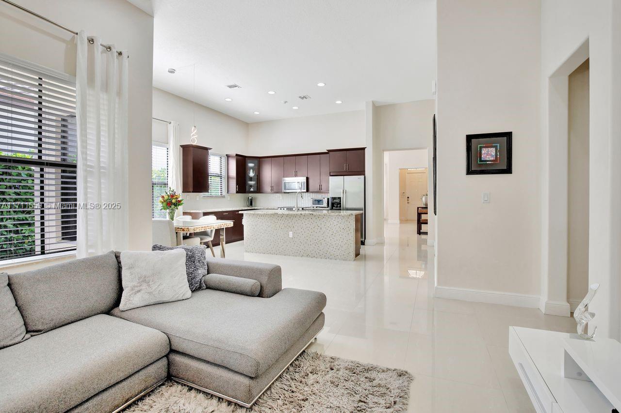 Welcome to Monterra, Cooper City's most sought after gated community. This resort-style neighborhood offers top-tier security, a clubhouse with state-of-the-art fitness center, pool, waterpark, tennis, basketball courts, walking trains & 3 playgrounds. Four-bedroom, three-bathroom home that blends elegance with comfort. The kitchen features 42” wood cabinetry, upgraded stainless steel appliances, complemented by an expansive pantry & a sunlit breakfast nook. Impact windows throughout. Soaring 12+ ft ceilings. Home warranty available. Custom closets throughout. New A/C (2 Years) The newly added pergola and private fully-fenced backyard are perfect for outdoor entertaining or enjoying peaceful evenings at home, surrounded by lush trees. A+ Rated schools, minutes from airport.