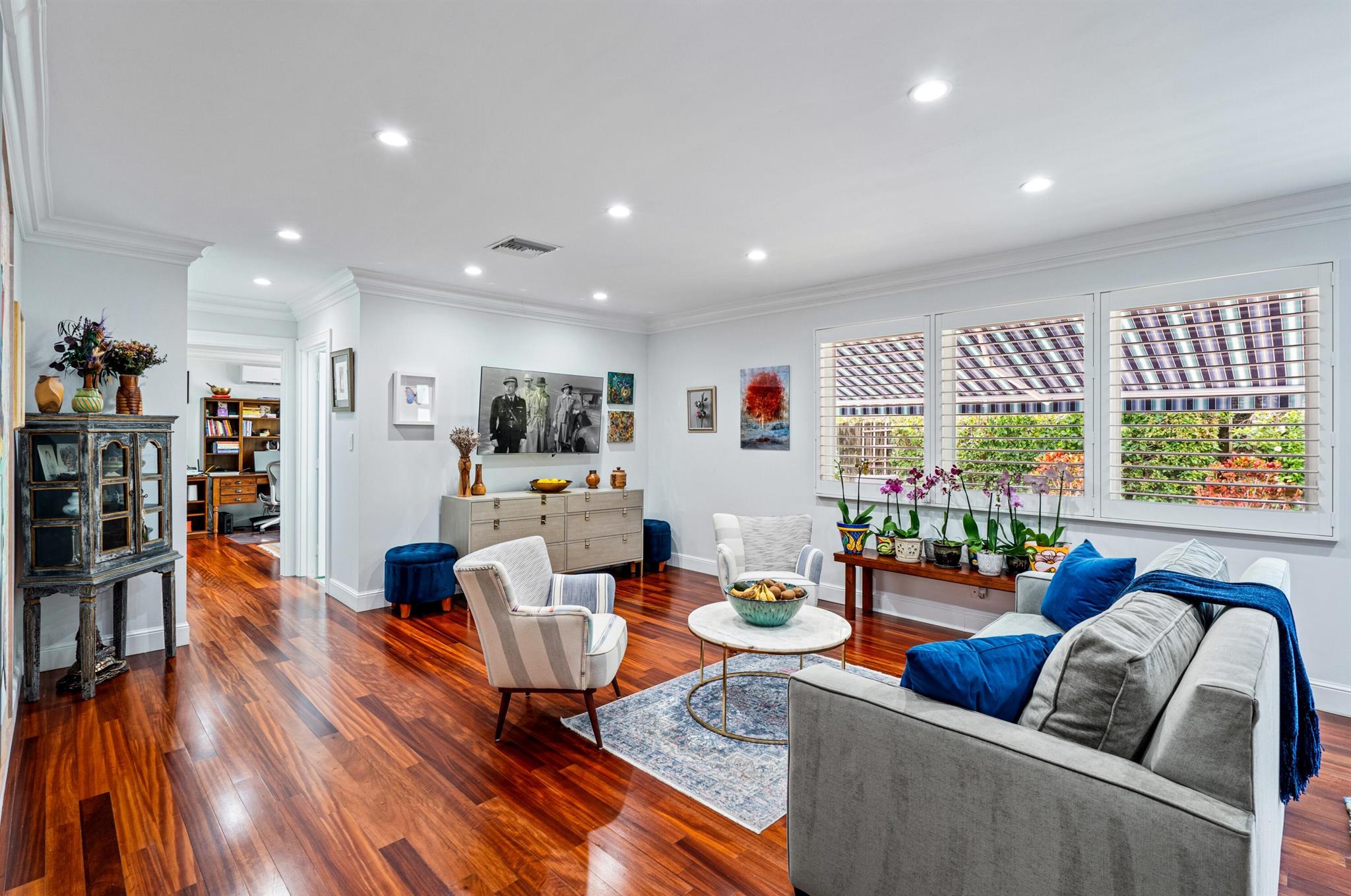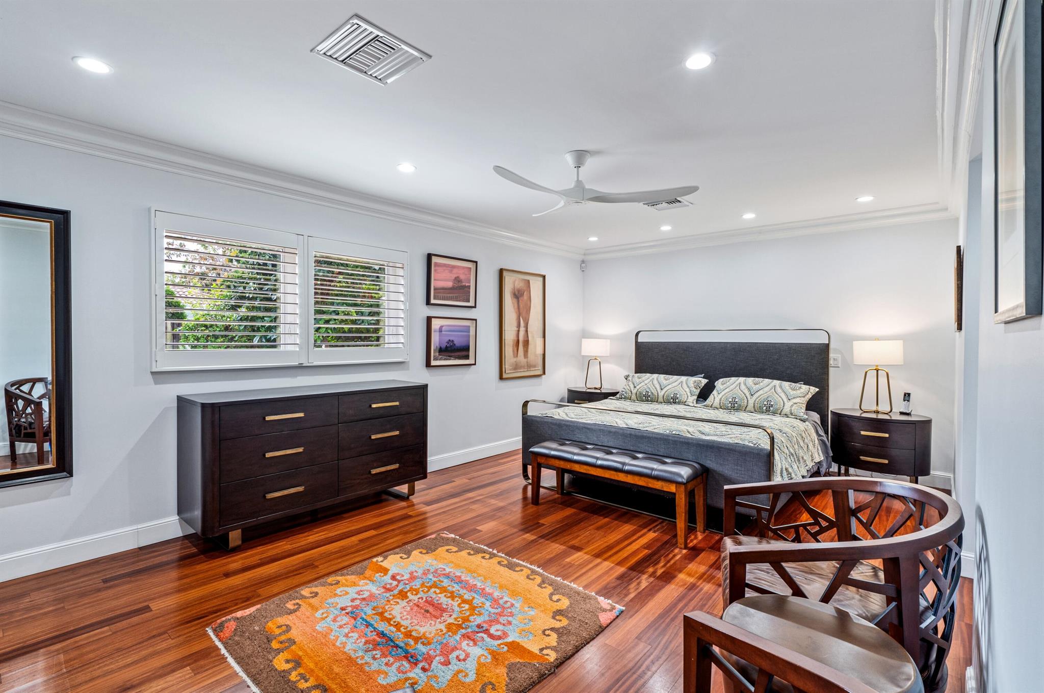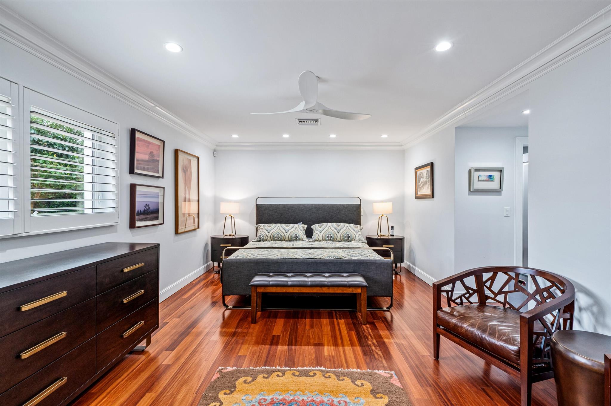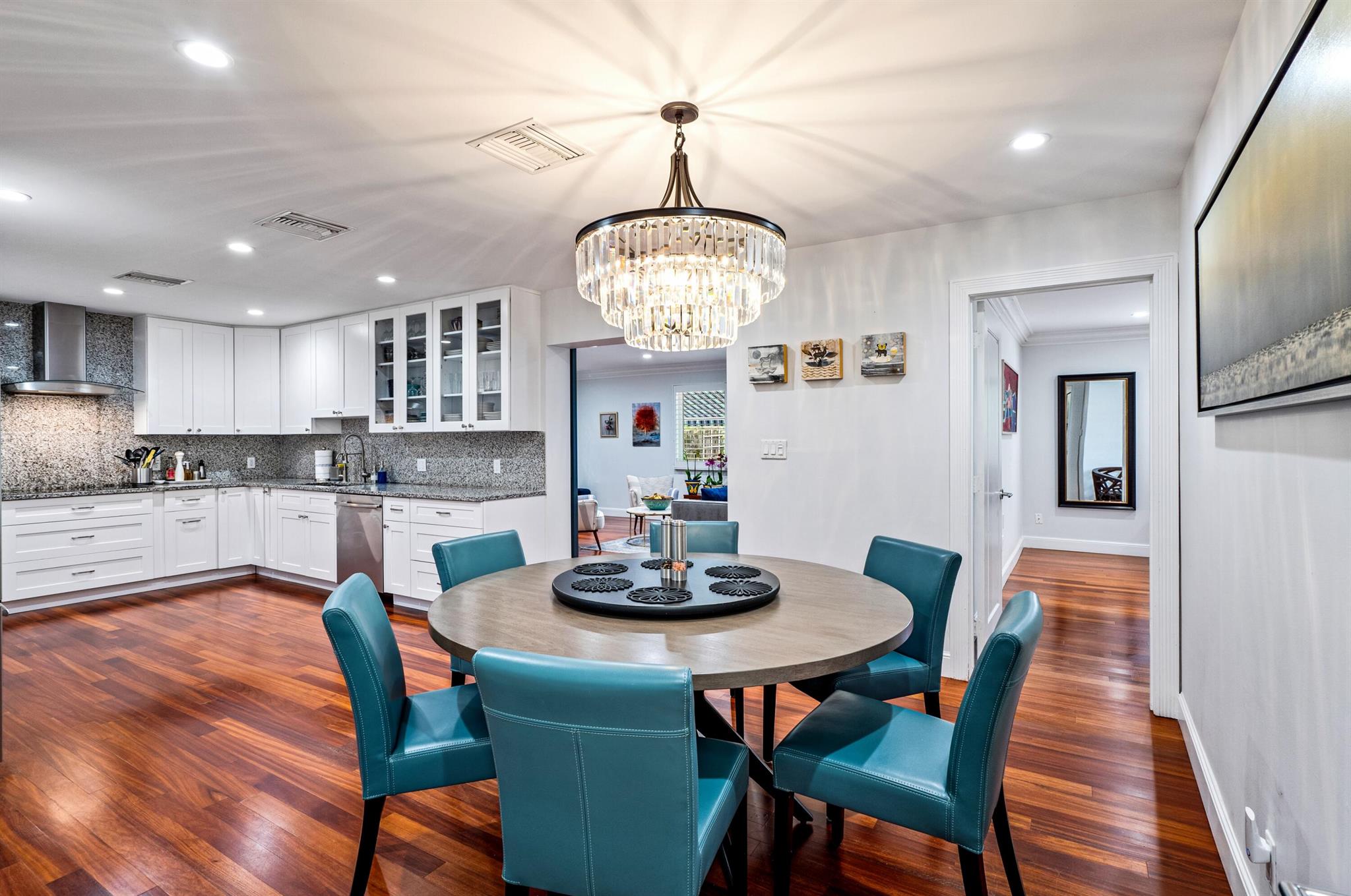 In prestigious Lake Floresta Park, this charming, completely reimagined residence is a must see in a well-established neighborhood close to East Boca Raton pristine beaches, high-end shops and restaurants. With four bedrooms and boasting 2,416 +/- square feet, enhancements throughout include rich hardwood floors, impact-glass windows and doors, and handsome moldings. A double-door entry introduces the living room, with the dining room adjacent. The gourmet kitchen, finished with top-of-line stainless steel appliances and stone counters, features updated white cabinetry. The expansive primary suite comprises two custom fitted closets and a spa-like bathroom is fitted with dual sinks, a soaking tub, glass-enclosed walk-in shower, and new subway tile finishes.