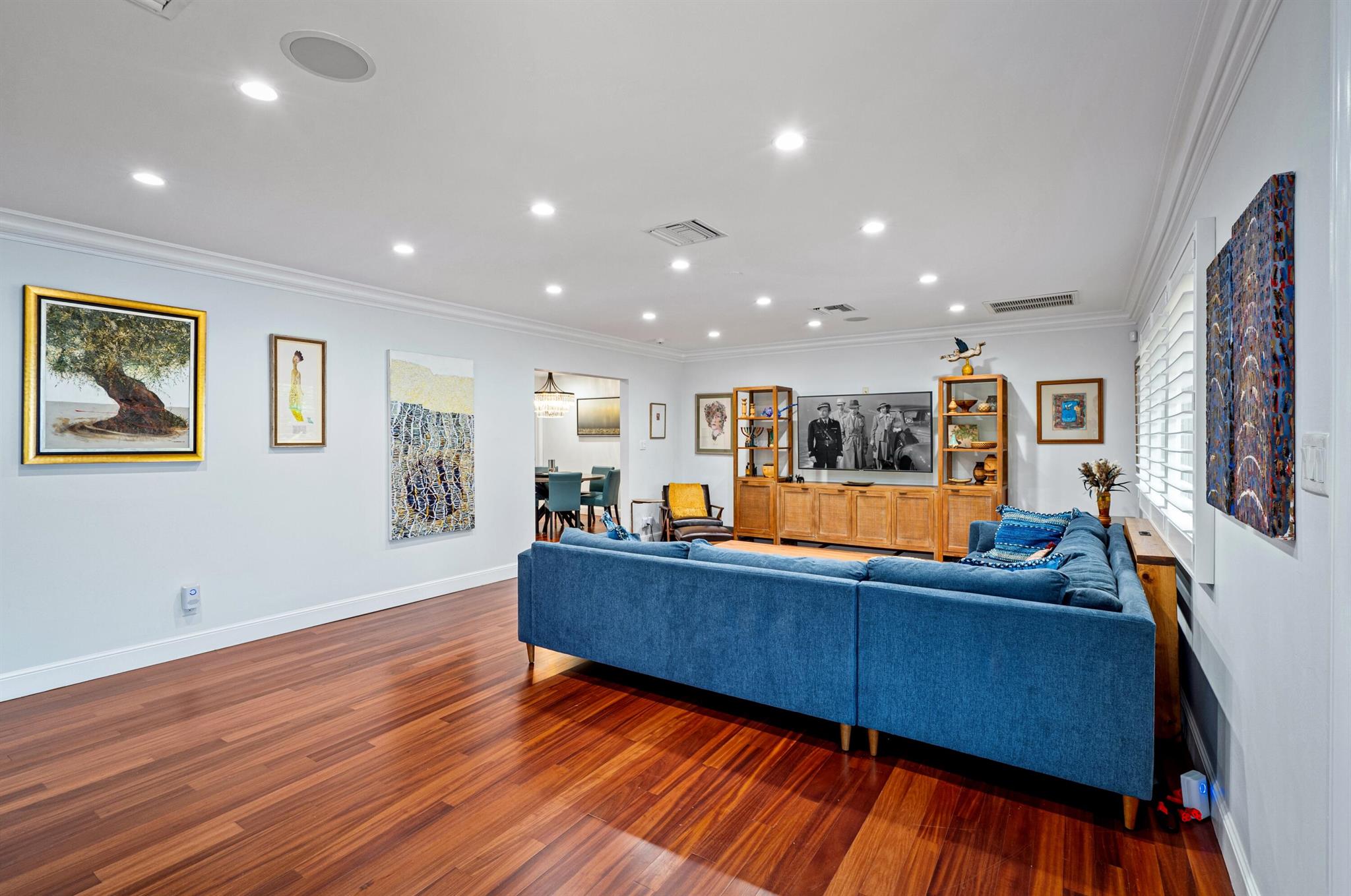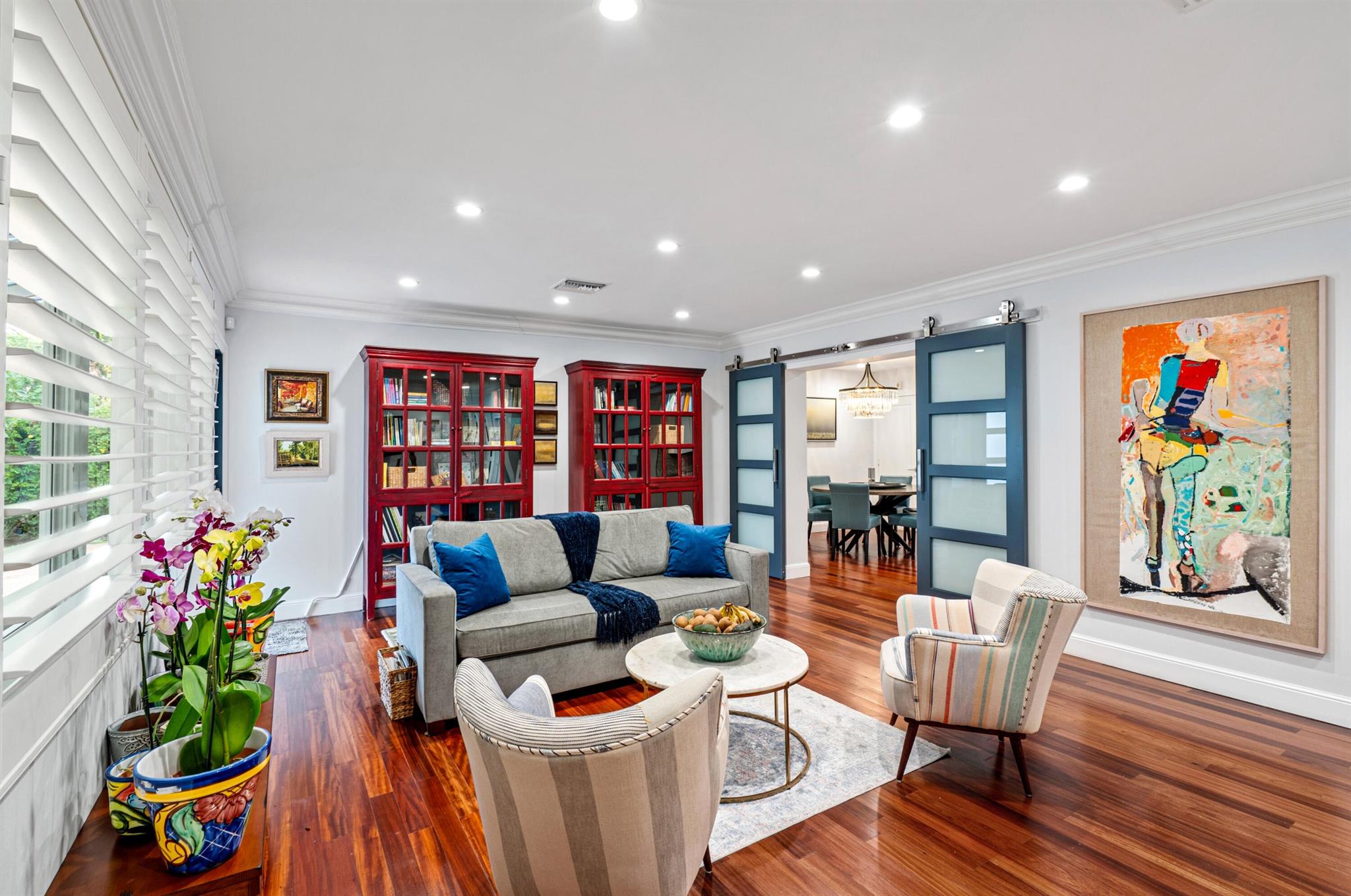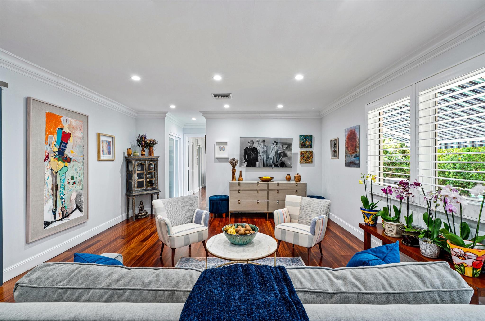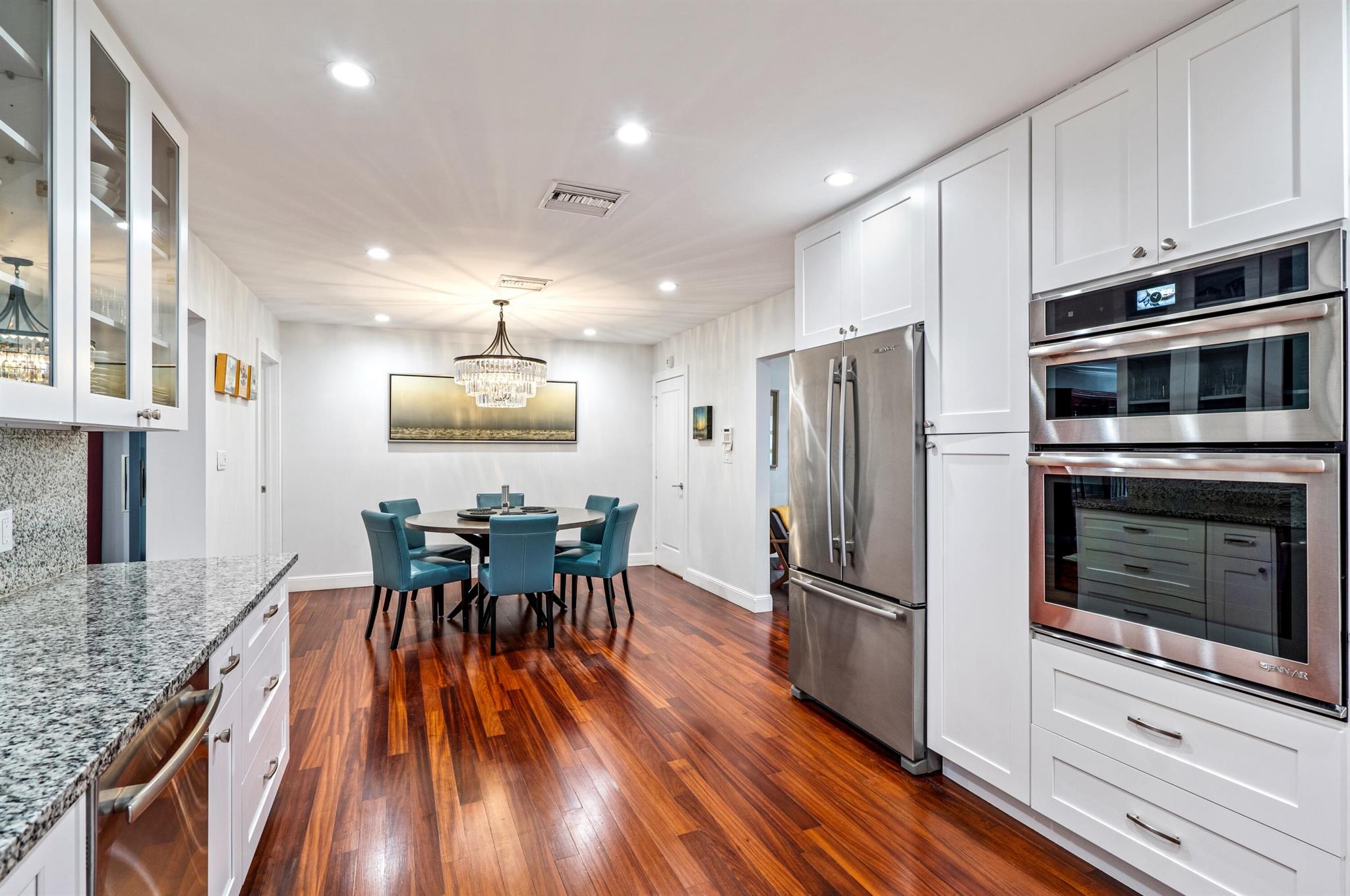 In prestigious Lake Floresta Park, this charming, completely reimagined residence is a must see in a well-established neighborhood close to East Boca Raton pristine beaches, high-end shops and restaurants. With four bedrooms and boasting 2,416 +/- square feet, enhancements throughout include rich hardwood floors, impact-glass windows and doors, and handsome moldings. A double-door entry introduces the living room, with the dining room adjacent. The gourmet kitchen, finished with top-of-line stainless steel appliances and stone counters, features updated white cabinetry. The expansive primary suite comprises two custom fitted closets and a spa-like bathroom is fitted with dual sinks, a soaking tub, glass-enclosed walk-in shower, and new subway tile finishes.