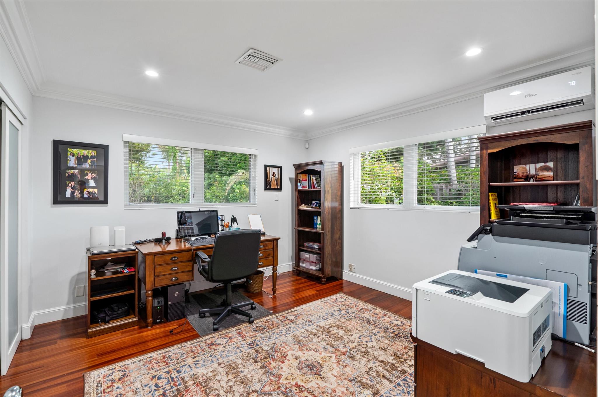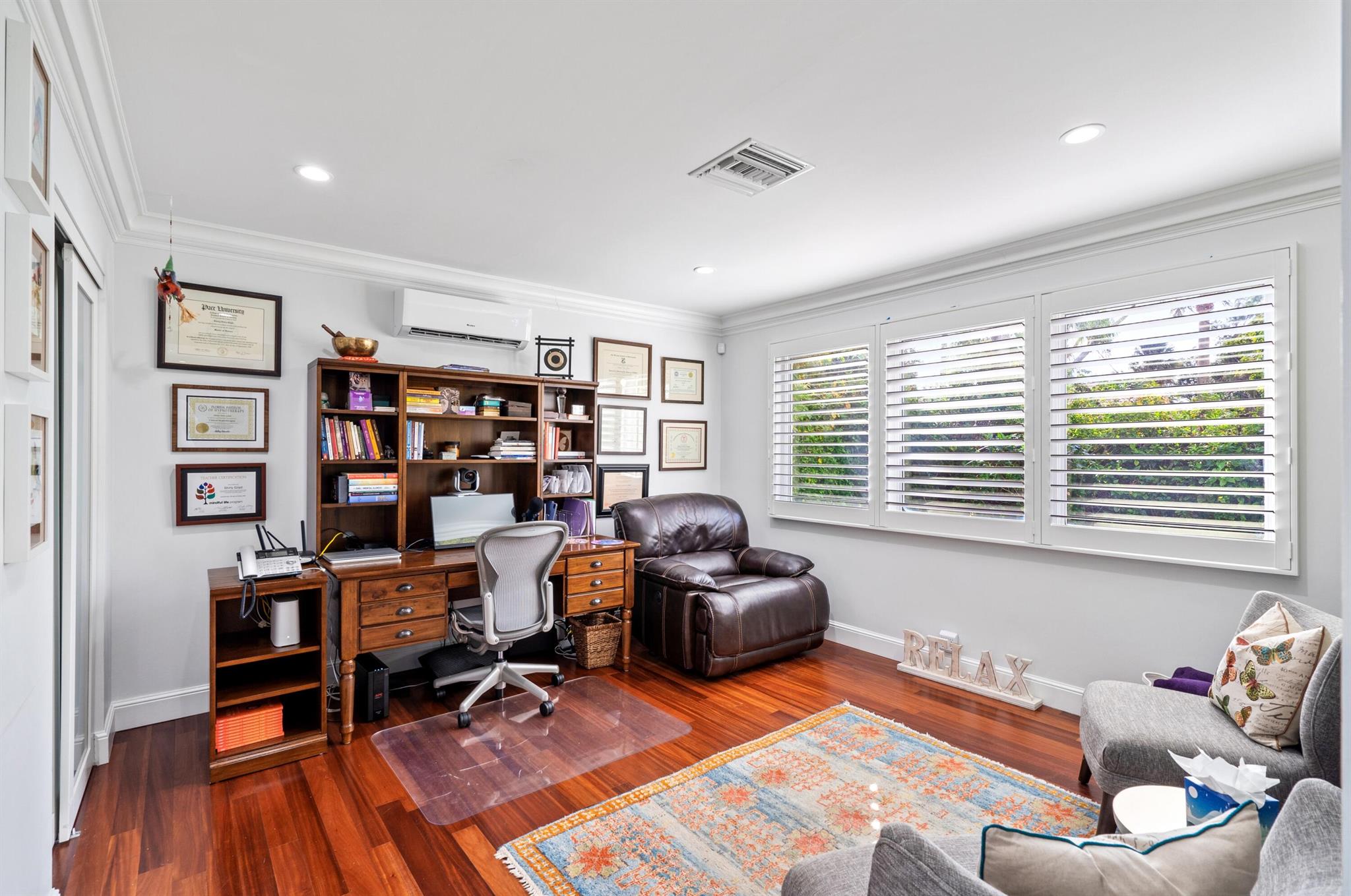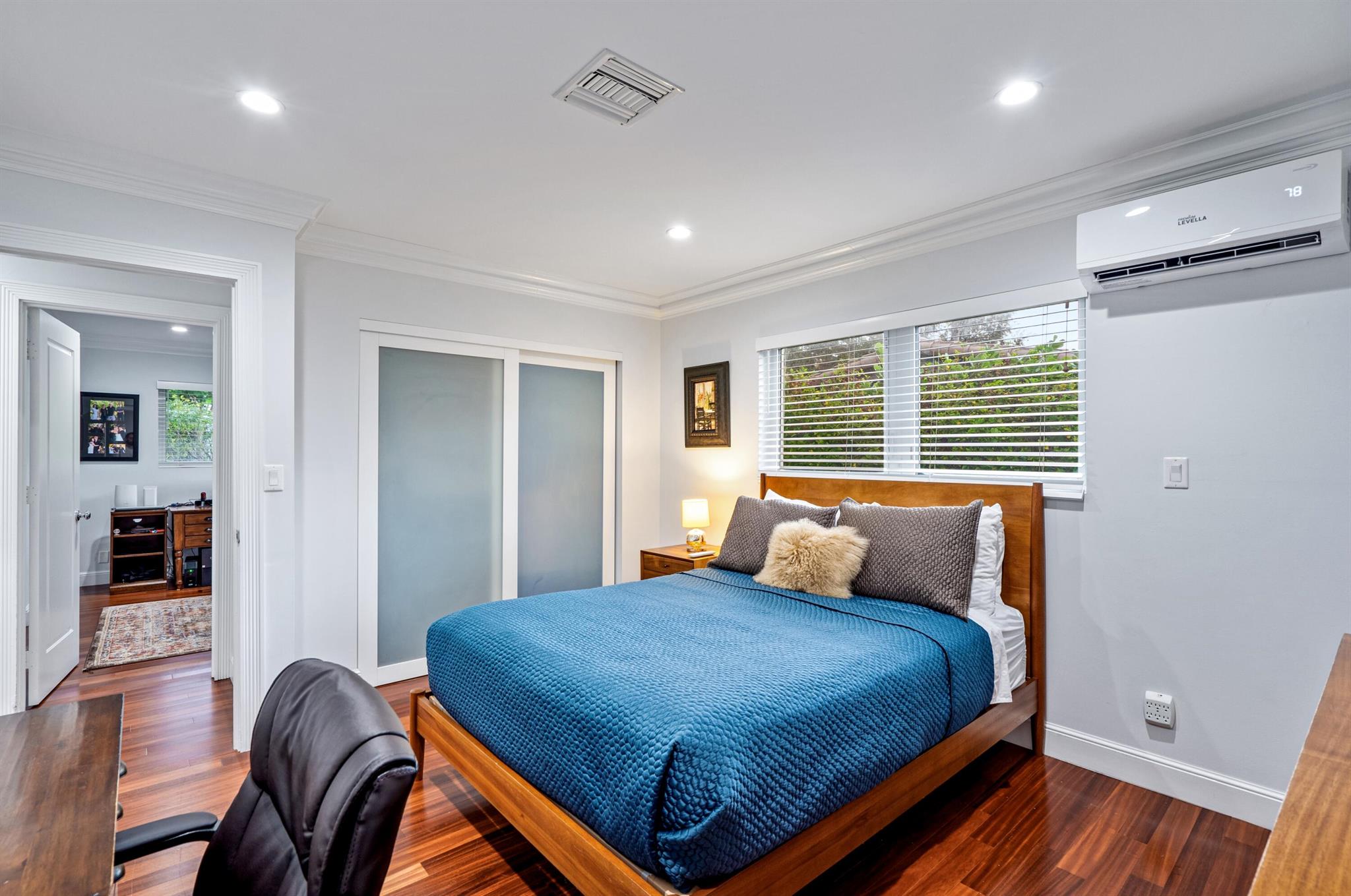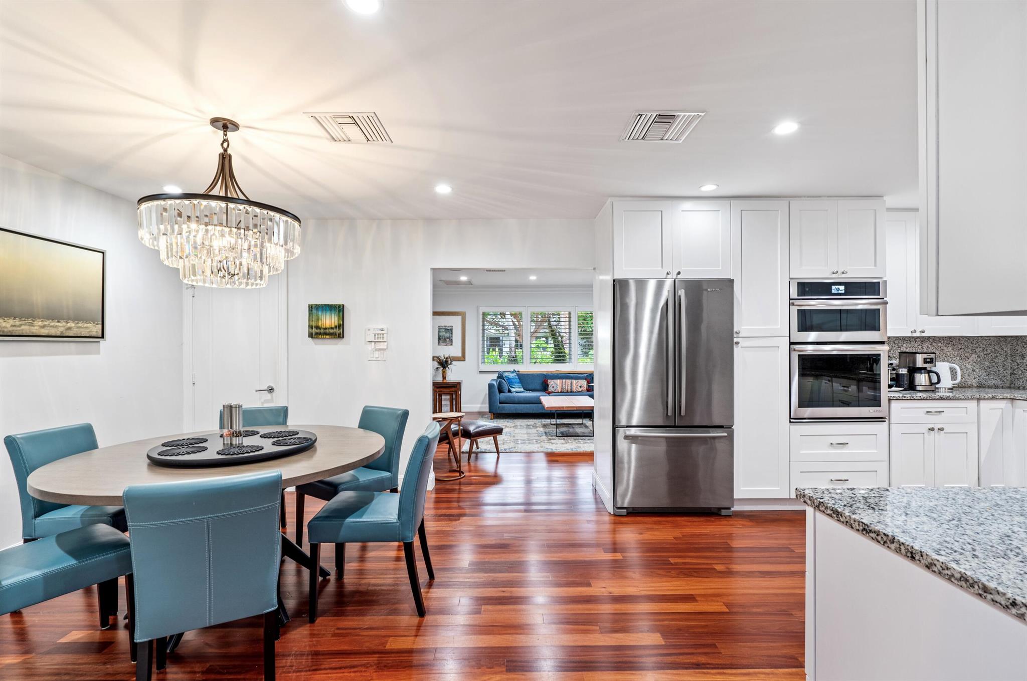 In prestigious Lake Floresta Park, this charming, completely reimagined residence is a must see in a well-established neighborhood close to East Boca Raton pristine beaches, high-end shops and restaurants. With four bedrooms and boasting 2,416 +/- square feet, enhancements throughout include rich hardwood floors, impact-glass windows and doors, and handsome moldings. A double-door entry introduces the living room, with the dining room adjacent. The gourmet kitchen, finished with top-of-line stainless steel appliances and stone counters, features updated white cabinetry. The expansive primary suite comprises two custom fitted closets and a spa-like bathroom is fitted with dual sinks, a soaking tub, glass-enclosed walk-in shower, and new subway tile finishes.