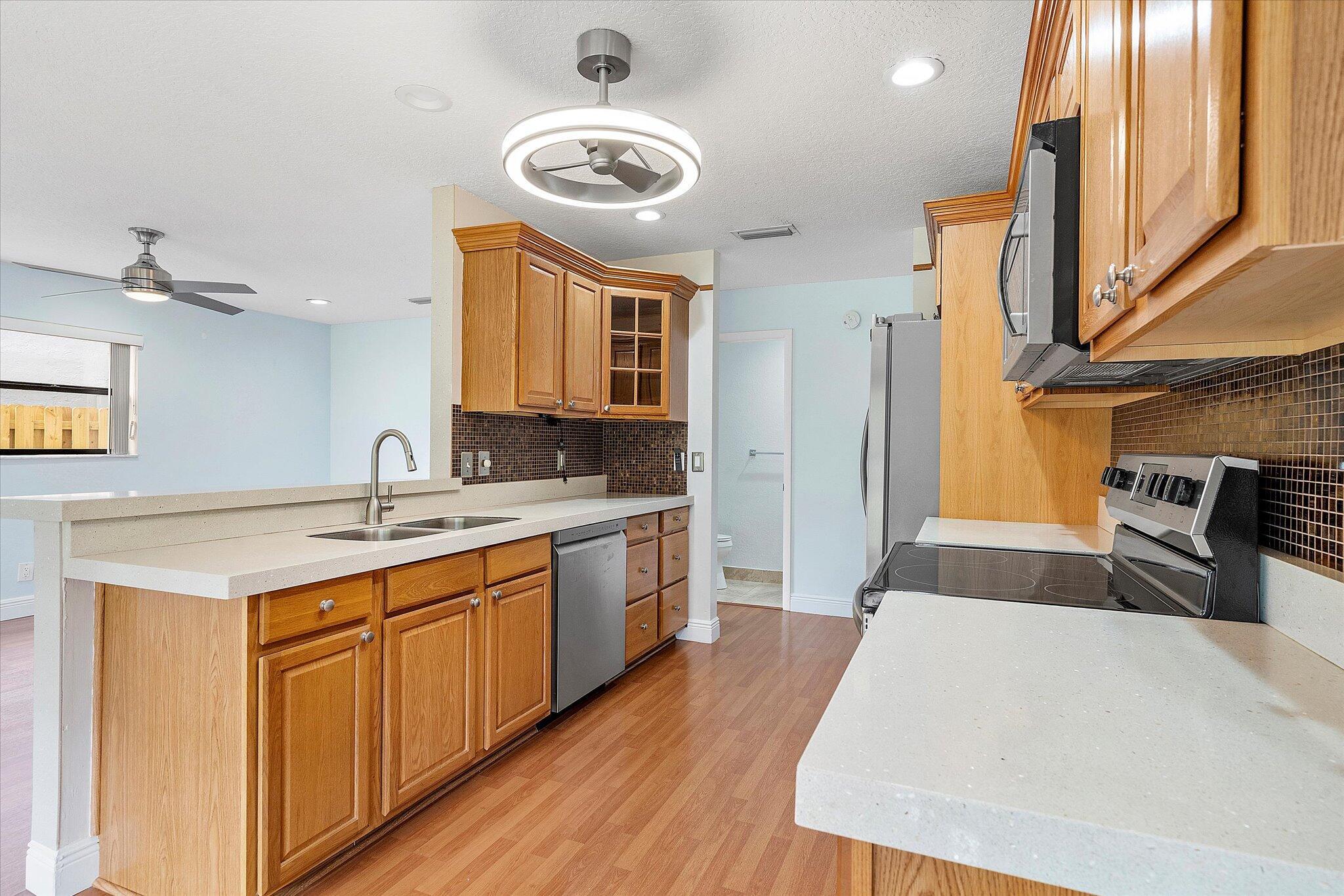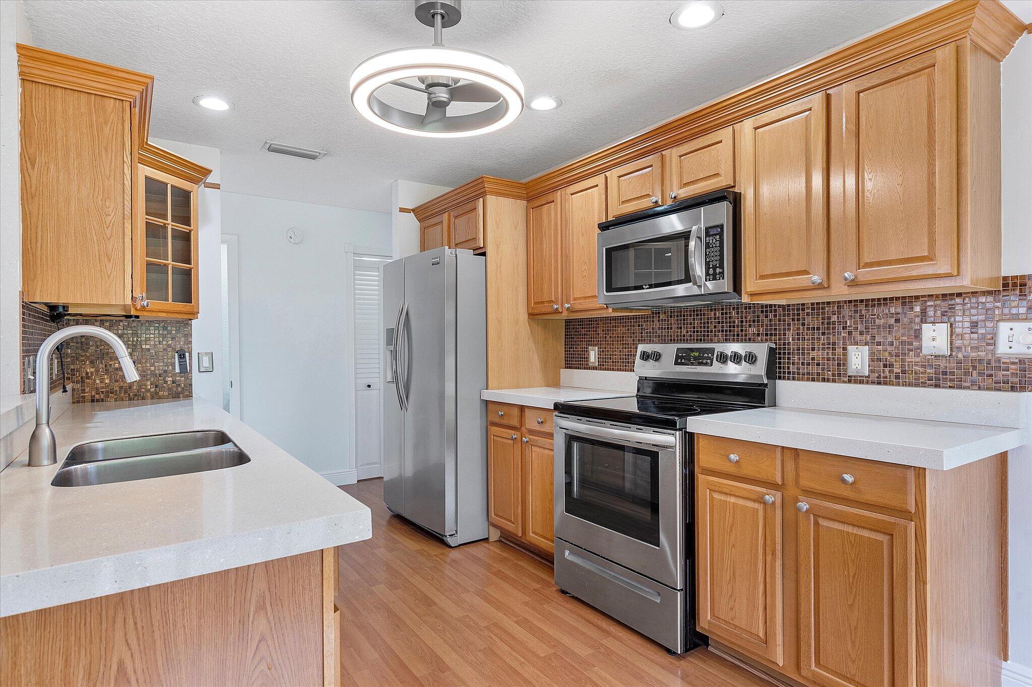 This charming four-bedroom CBS home has been lovingly maintained by the same family for 36 years. Featuring spacious bedrooms, a low HOA, and recent updates including a 2022 A/C system (with a 5 year transferrable maintenance contract) and a 2024 hot water heater, this property is move-in ready. Conveniently located minutes from Welleby Elementary, it boasts a private backyard with serene canal views, a two-car garage, a new stove, hurricane panels, and an enclosed patio--perfect for relaxing or entertaining. Don't miss this opportunity to make it yours!