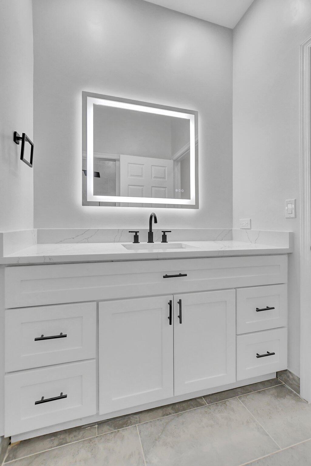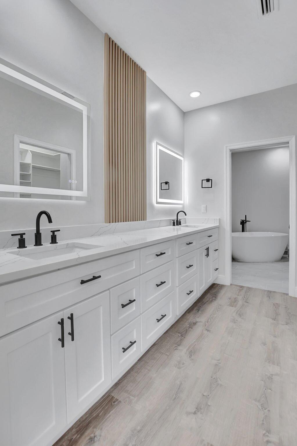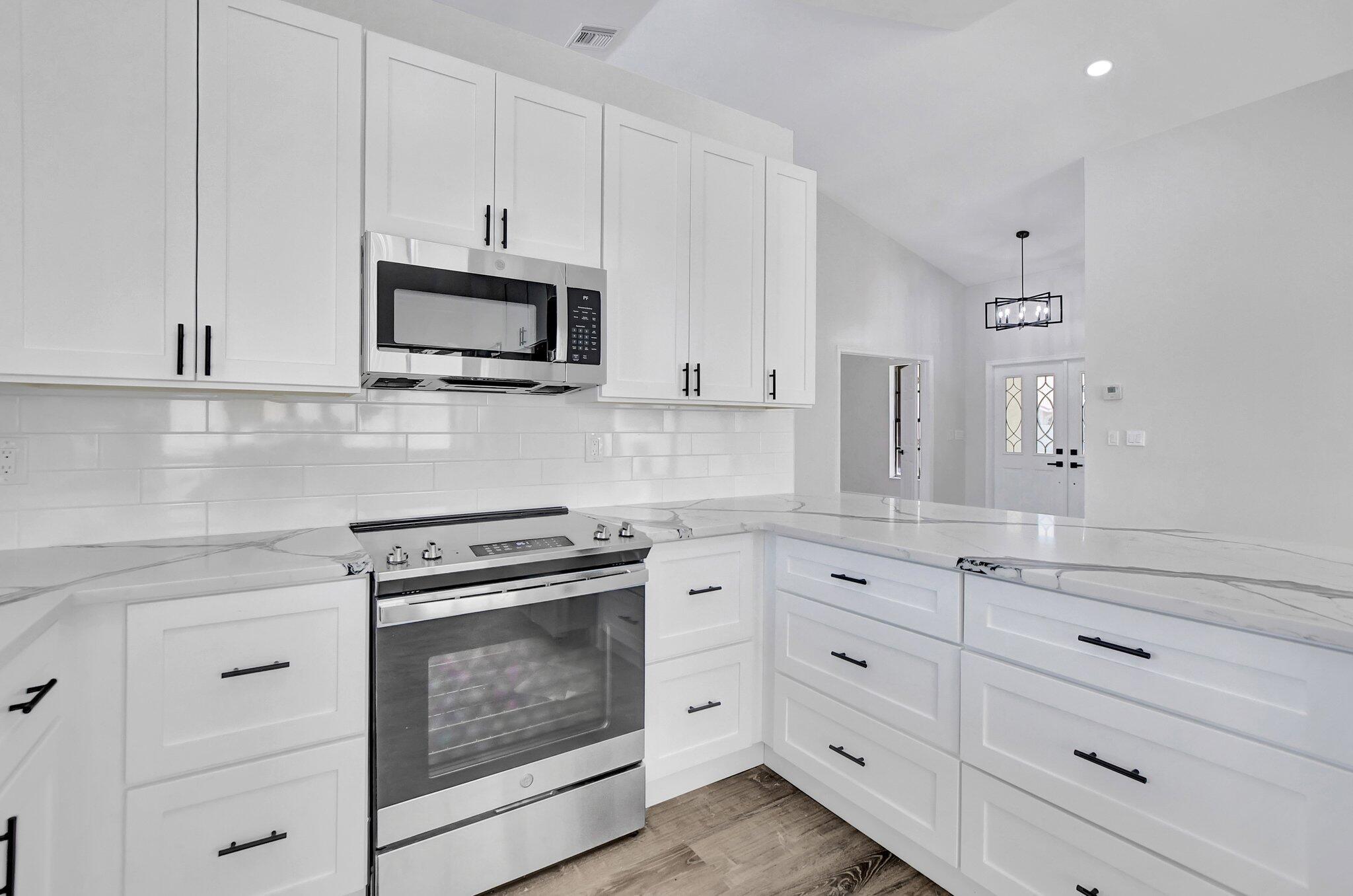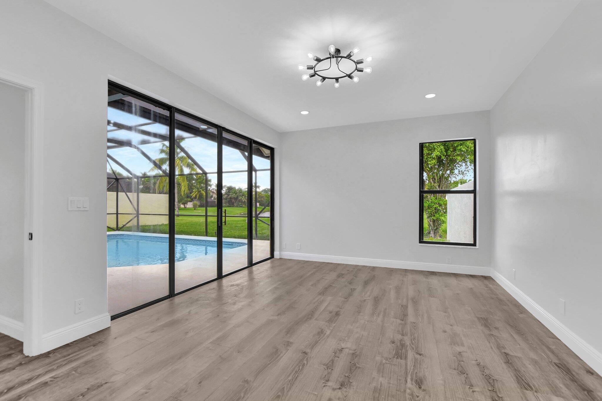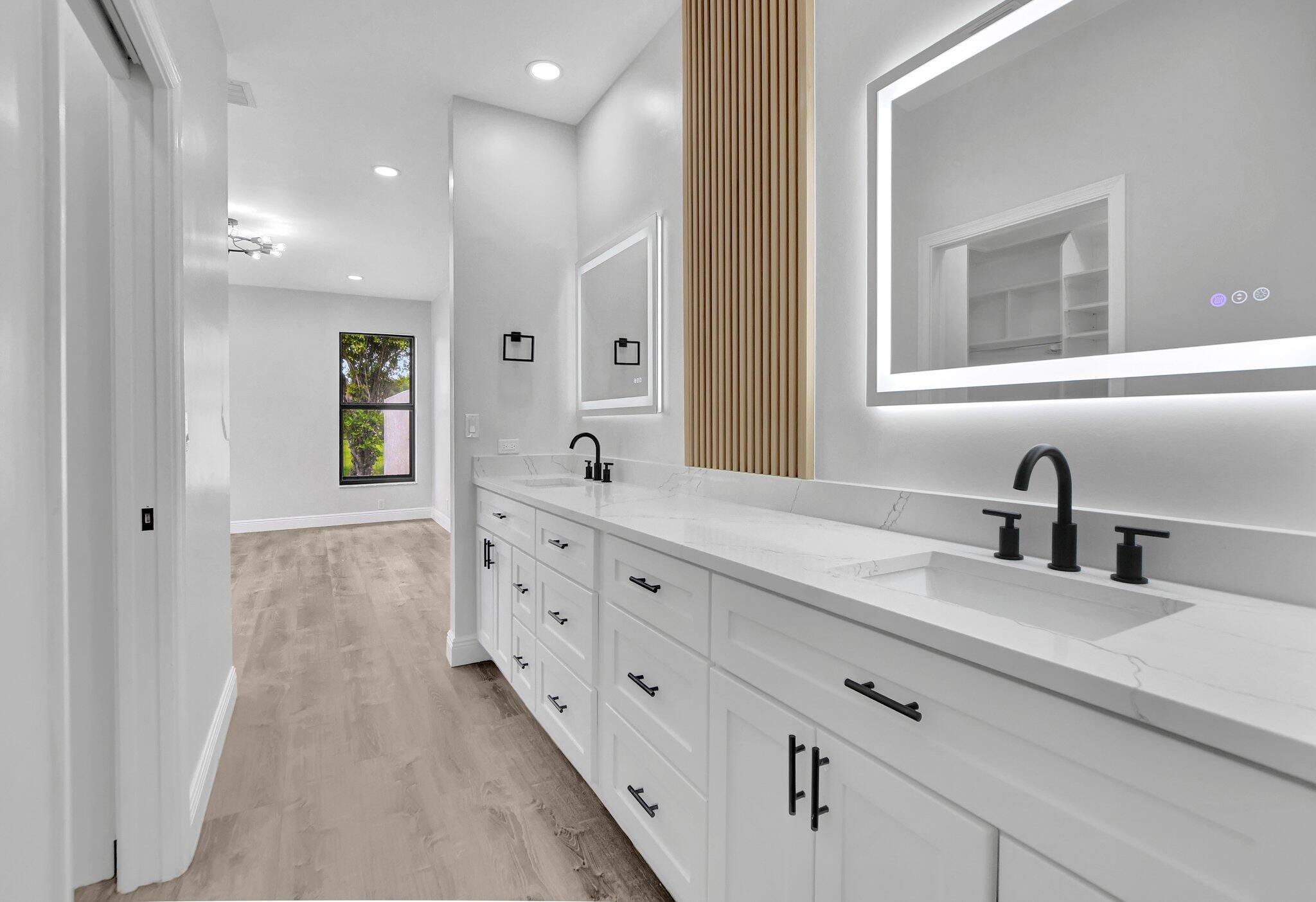 Completely remodeled 3 bedroom 3 bath lake home with 2150sq under air in desirable Boca Greens Golf Club. No membership required, All residents can play. All updated with vinyl flooring throughout, new white shaker cabinets, quartz countertops, subway tile backsplash and new appliances. New recessed lighting, light fixtures and lighted mirrors in bathrooms. Spa like Master bathroom with roman tub, oversized shower with 6 jet shower panel, rainfall shower head that lights up. Screen patio, updated pool with new tile and limestone patio stone. Low HOA fees. Resort-style amenities, tennis courts, championship golf course. Premium cable and ultra fast fiber optic internet is included. A-rated school district too. Close to shopping and restaurants. Don't miss out on this one!