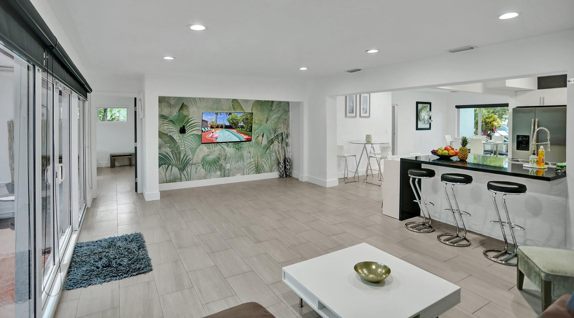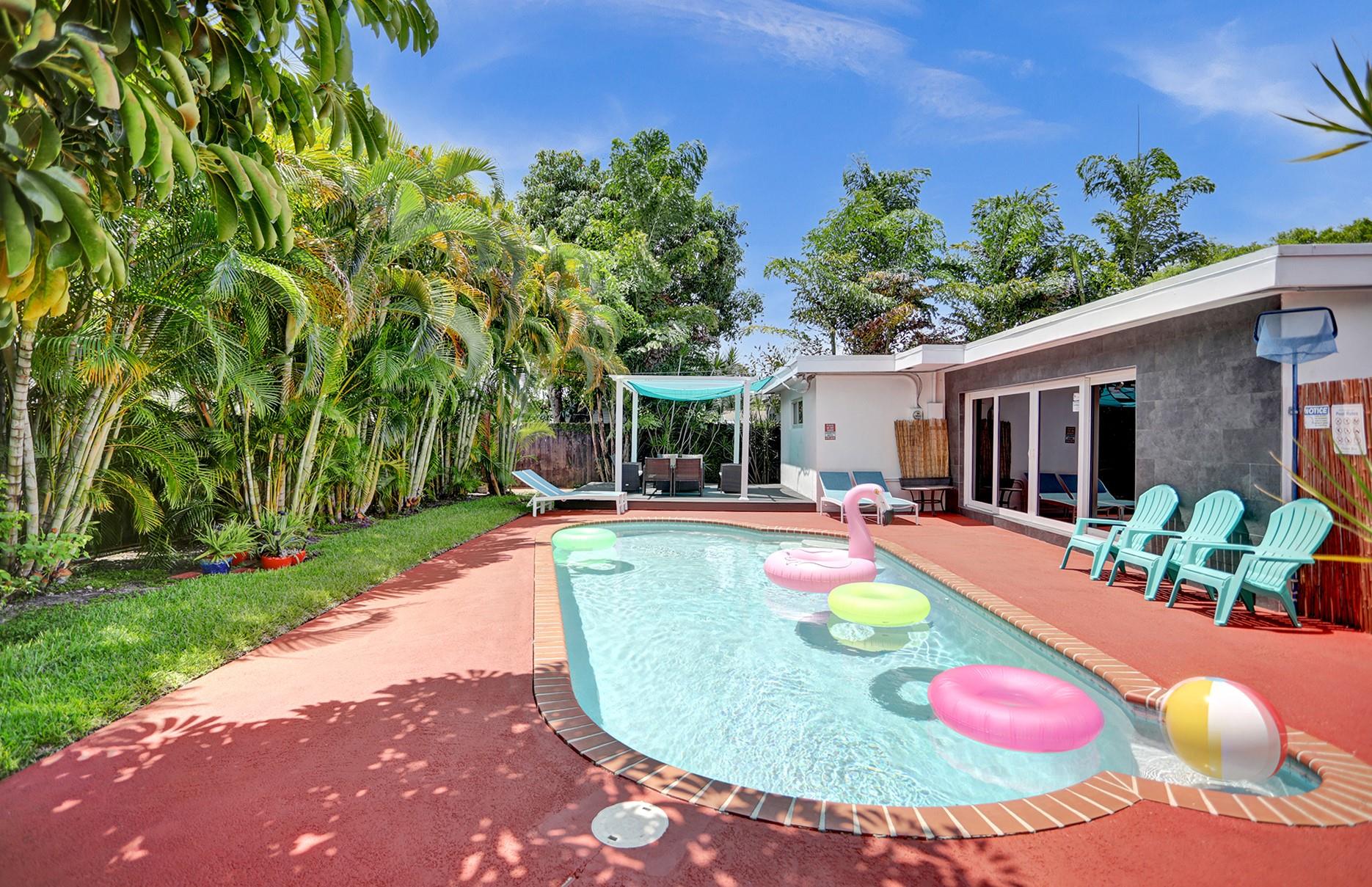Fully remodeled with permits, open concept, salt water pool with new diamond bright surface, excellent location for a vacation rental, 5 minutes from the beach and Young Circle, I-95 quickly and easily accessible, 15 minutes away from Ft Lauderdale Airport, large driveway that fits up to 6 cars, furniture negotiable, beautiful tropical landscaping