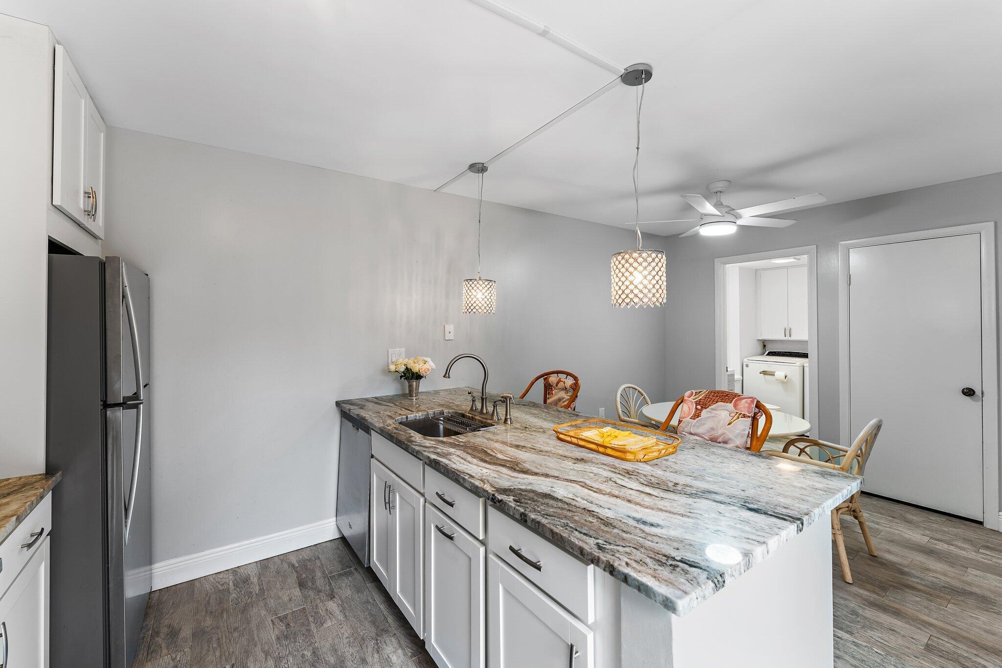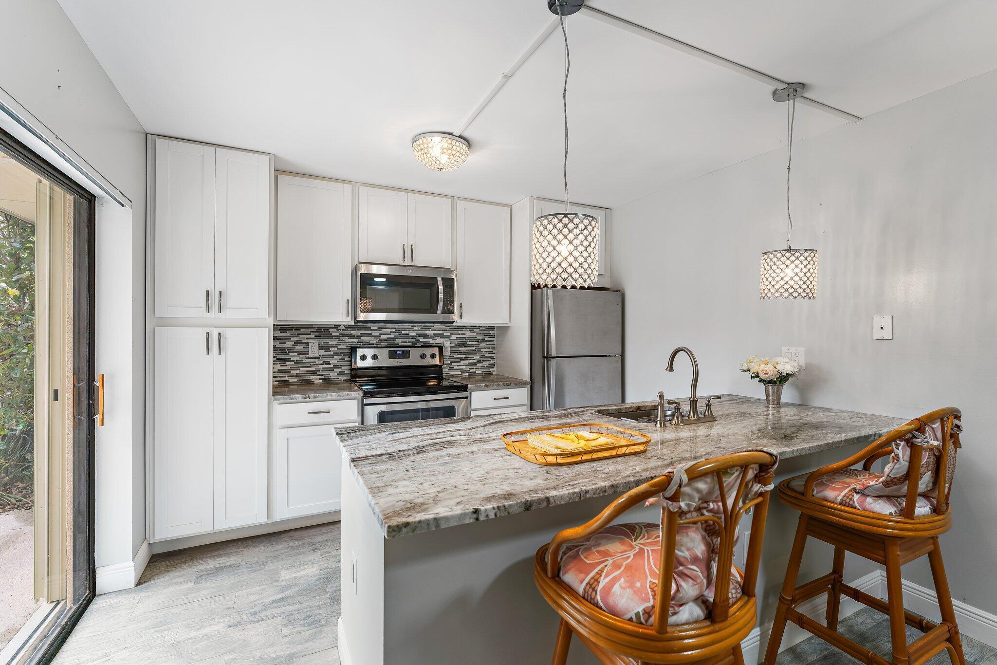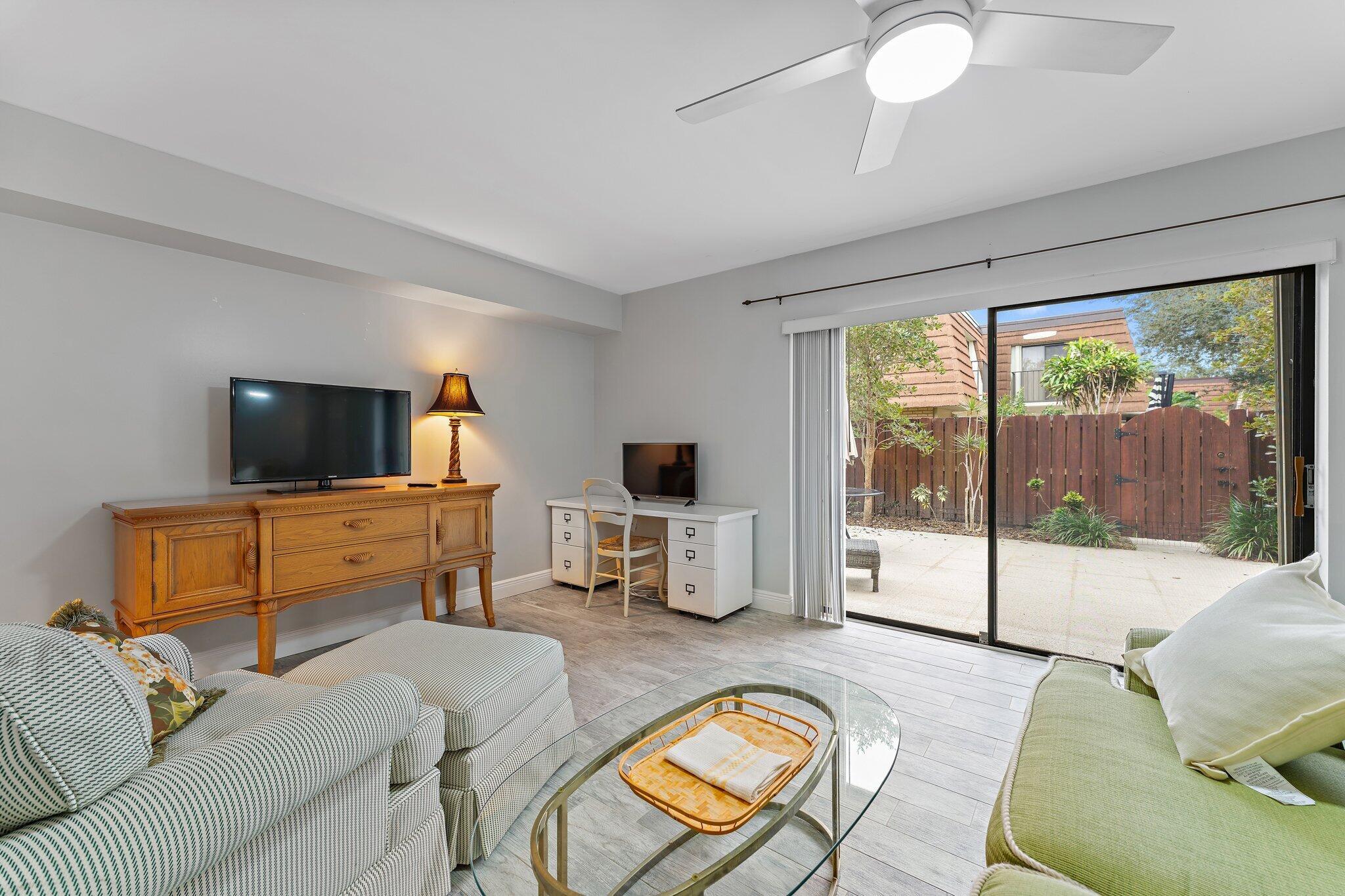 Sunny and serene 2 bedroom, 2 1/2 bath townhome at North River in The Bluffs. Newly renovated open-concept kitchen with stainless steel appliances and granite breakfast counter. Lovely large great room and dining area with an 8-foot slider to a fabulous enclosed private patio. Updated light grey wood tile throughout. Upstairs boasts 2 large master bedrooms with ensuite baths, private balconies, and spacious functional closets. Amenities include: a large Community pool, 6 tennis and pickleball courts, a children's playground, and a dog park. Just minutes to the beach, shopping and restaurants.